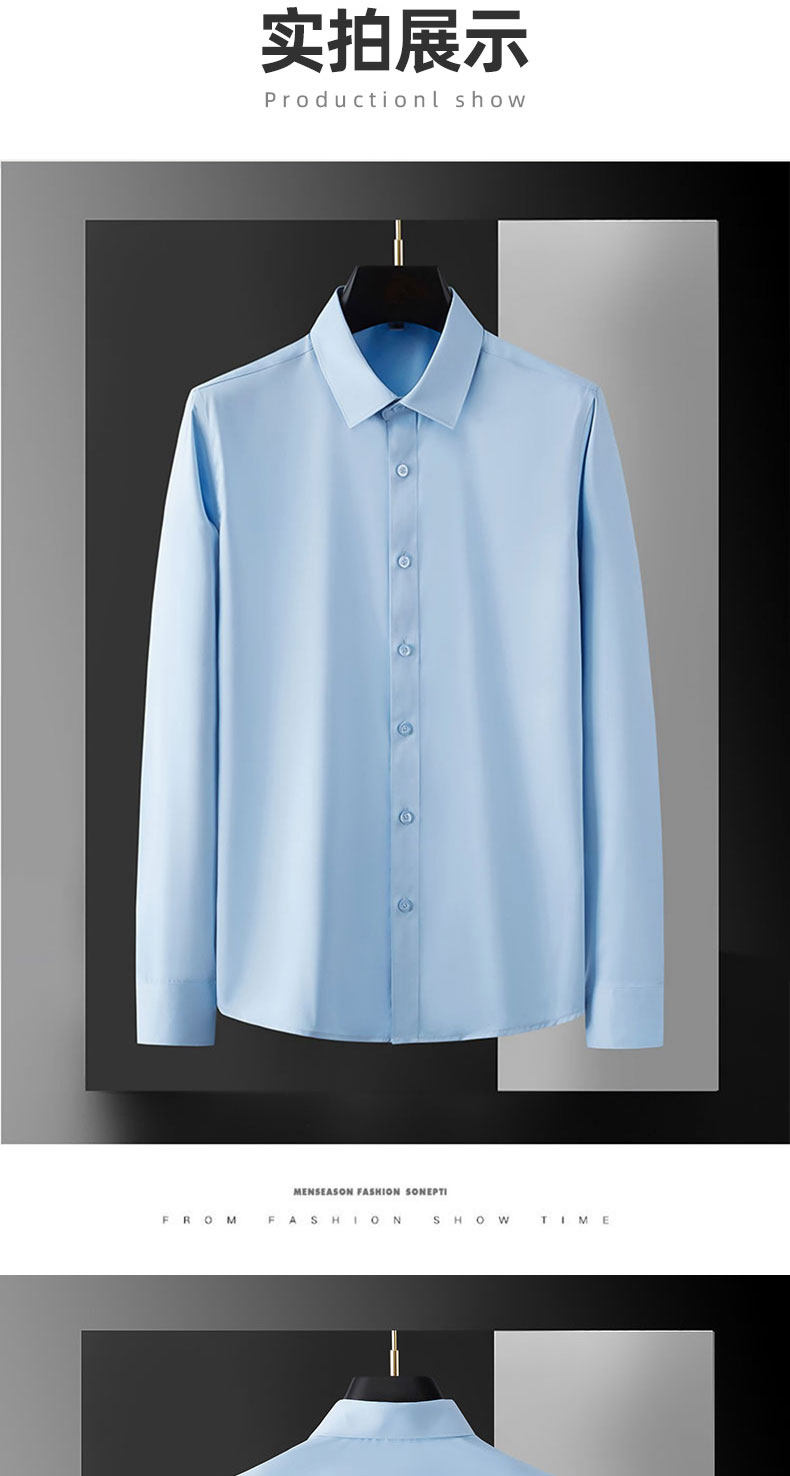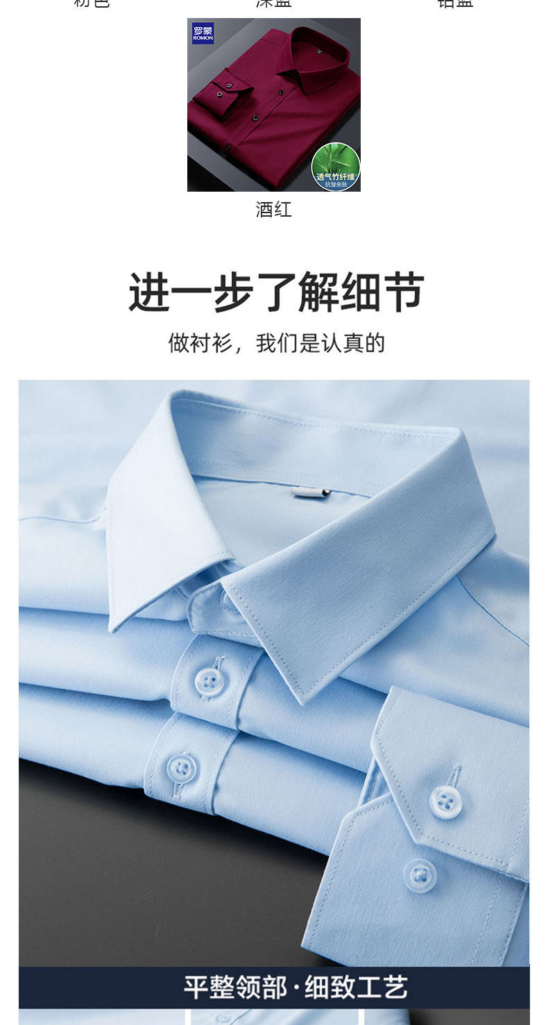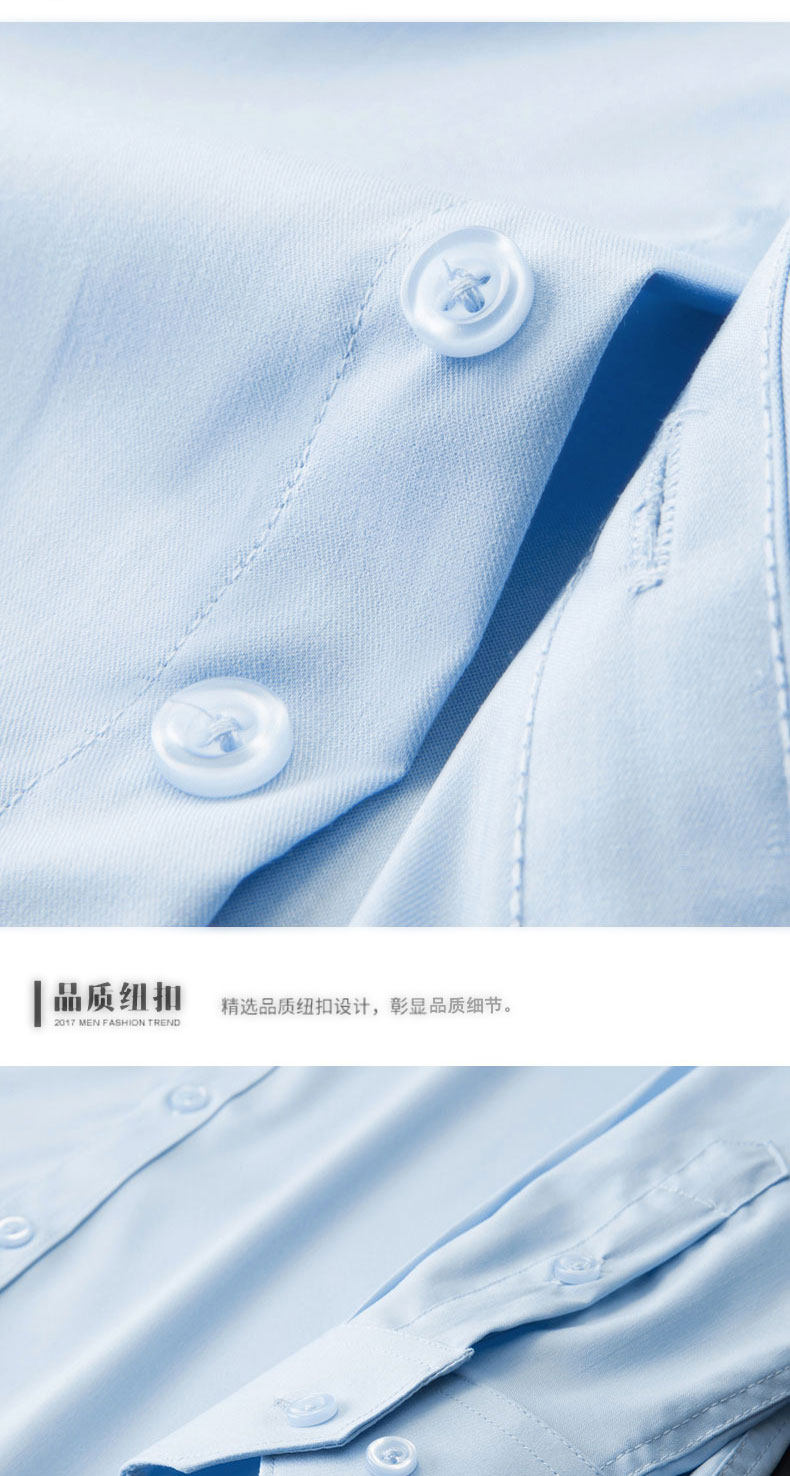 Woodpecker White Long-Sleeved Men's Shirt with Fleece Lining, Thickened, Stretchy, Wrinkle-Resistant, Business Professional Formal Casual Blue and Black Shirt