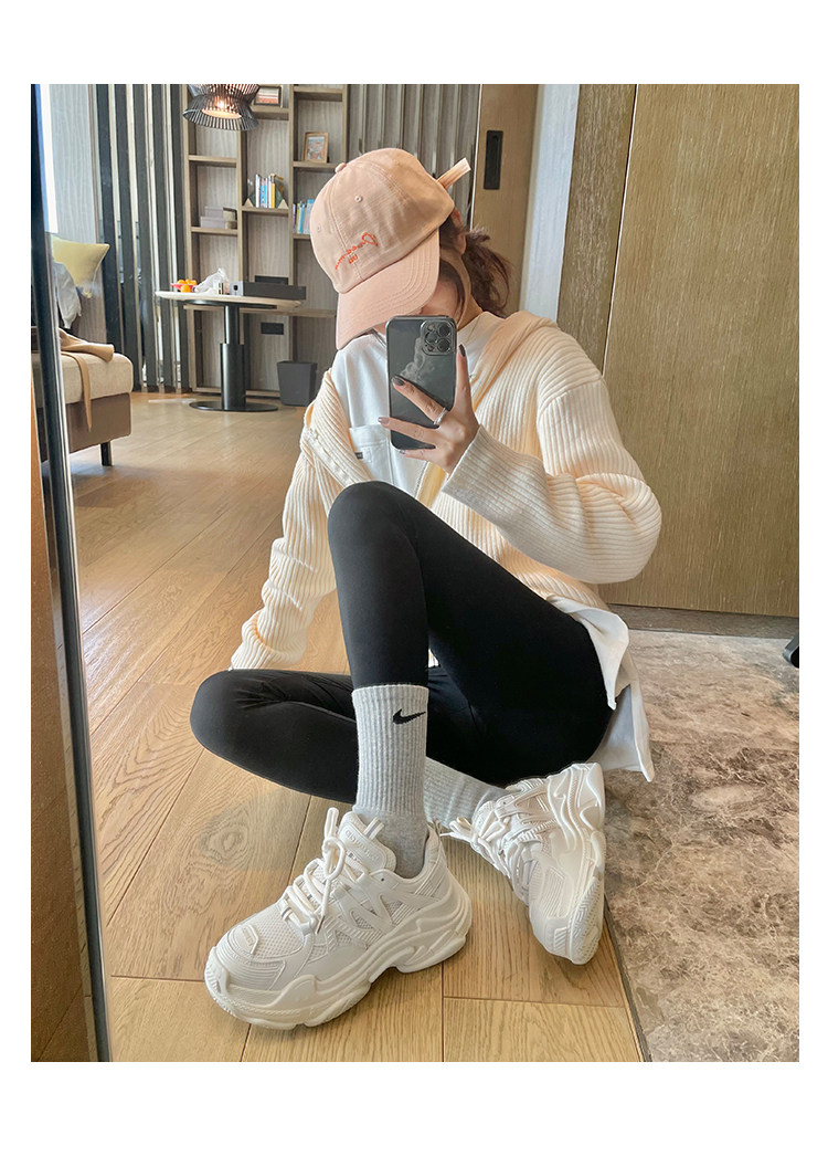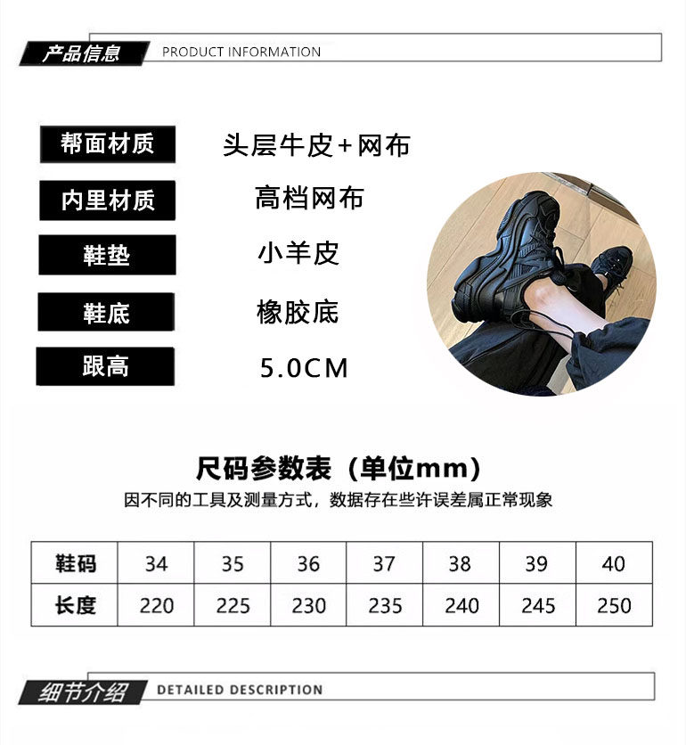 Hong Kong 2025 Spring and Autumn New Women's Genuine Leather Slimming Dad Shoes ins Trendy Korean Style Fashion Thick-Soled Height-Increasing Sneakers