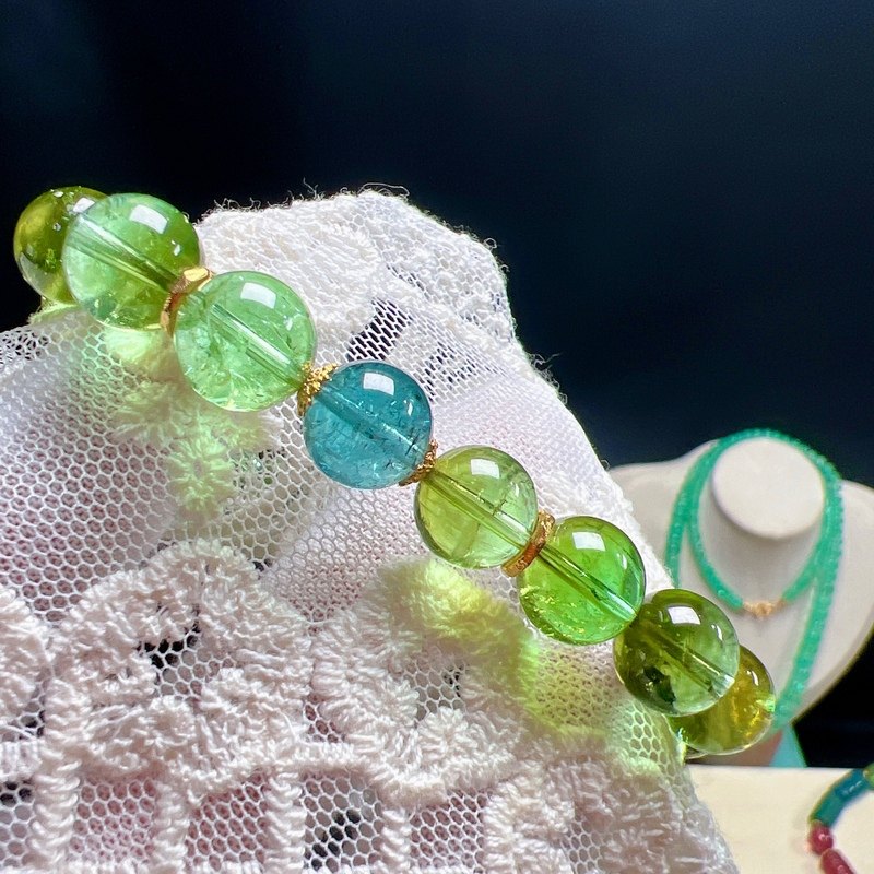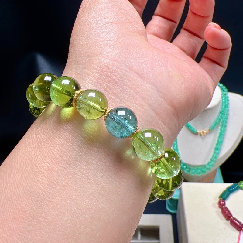 编号:CH-04天然蓝绿碧玺手链(图如下) 价:3980 尺寸:5.6mm 重:9.74g