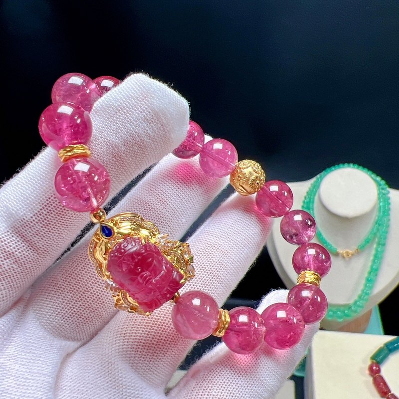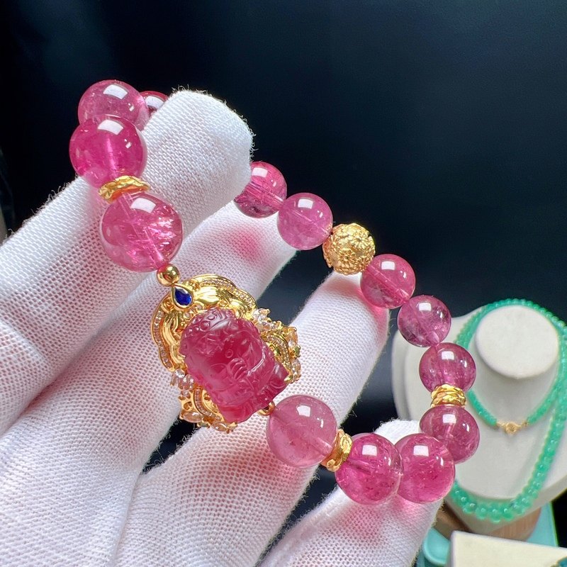 编号:CH21-16鸽血红碧玺手链(图如下) 价:33800 尺寸:8mm 重:18.17g 描述:玻璃体,稀有罕见,顶货,美丽鸽血红,天然红碧玺手链,颗颗极致浓艳。珠子圆润饱满,纯净如水,18k金点缀,颗颗精选,高端品质,上手奢华贵气,值得珍藏。