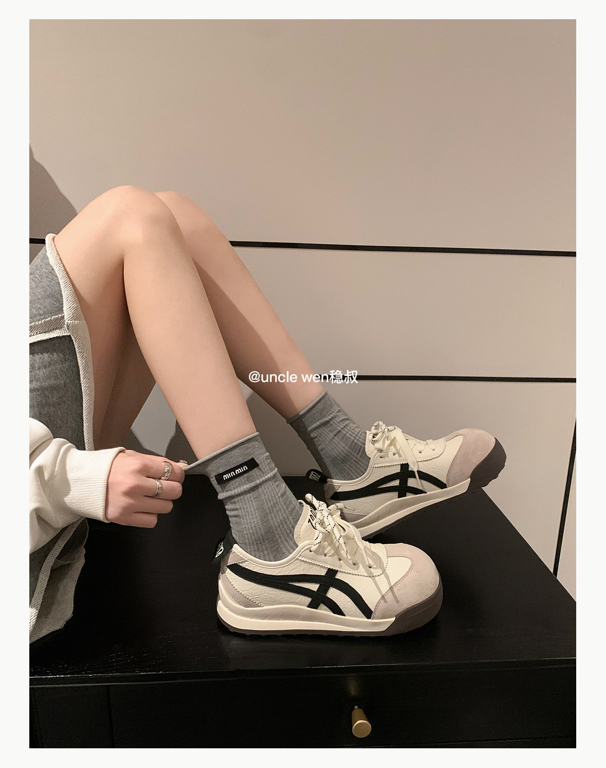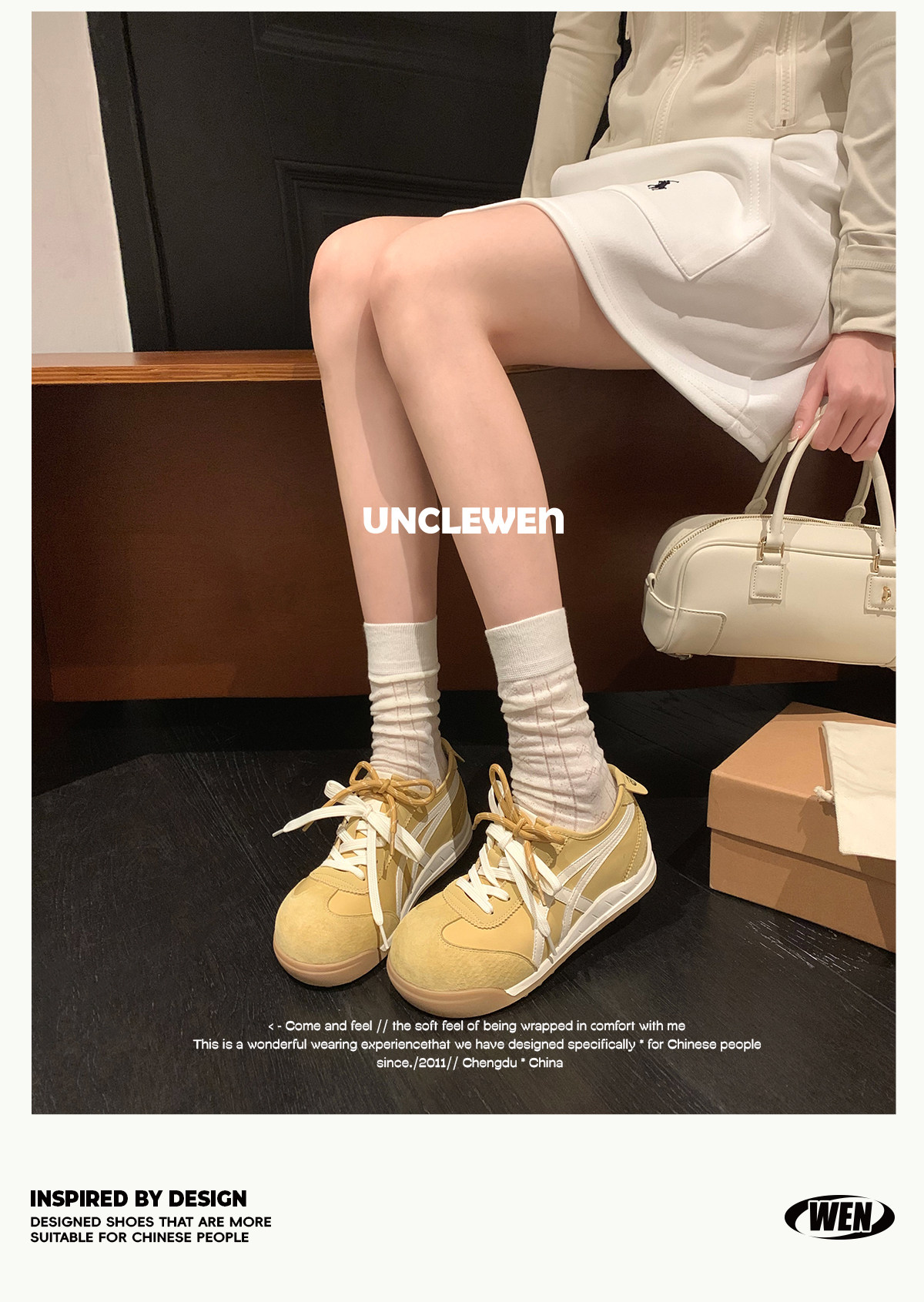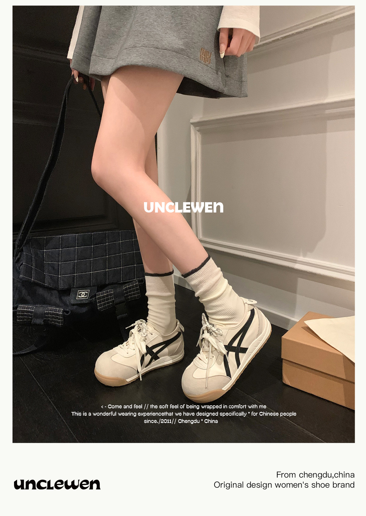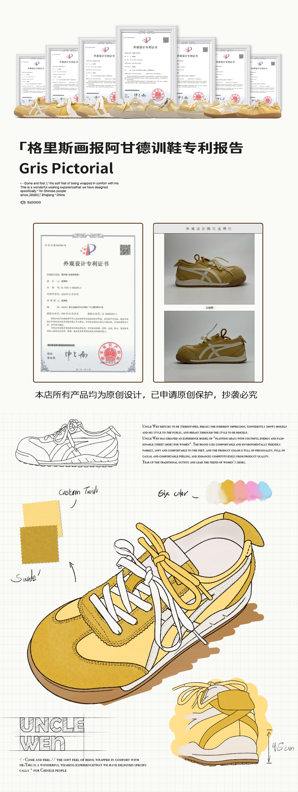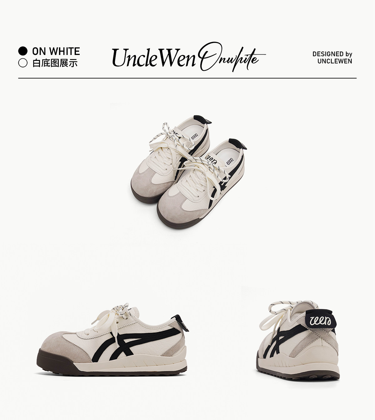 Uncle Wen's Original Greys Painting Style ~ Height-Increasing Thick-Soled Agande Training Shoes, Women's White Casual Sneakers