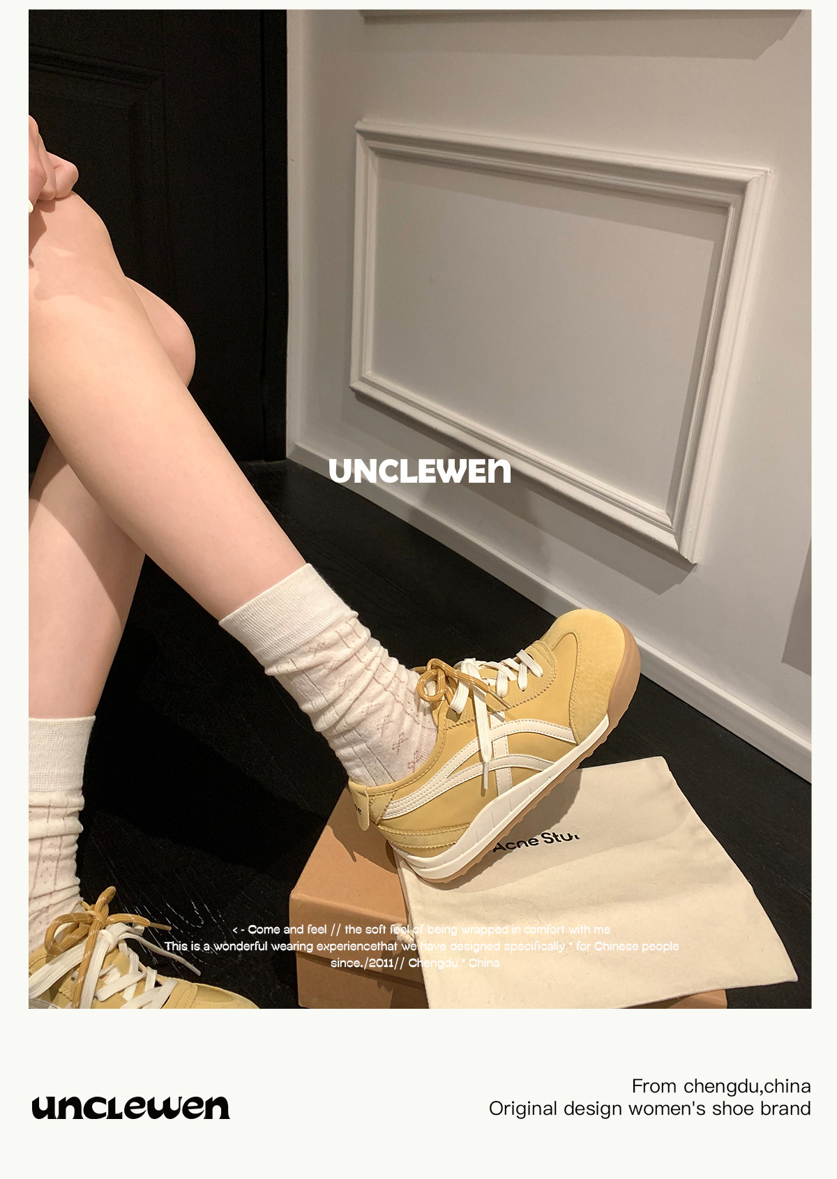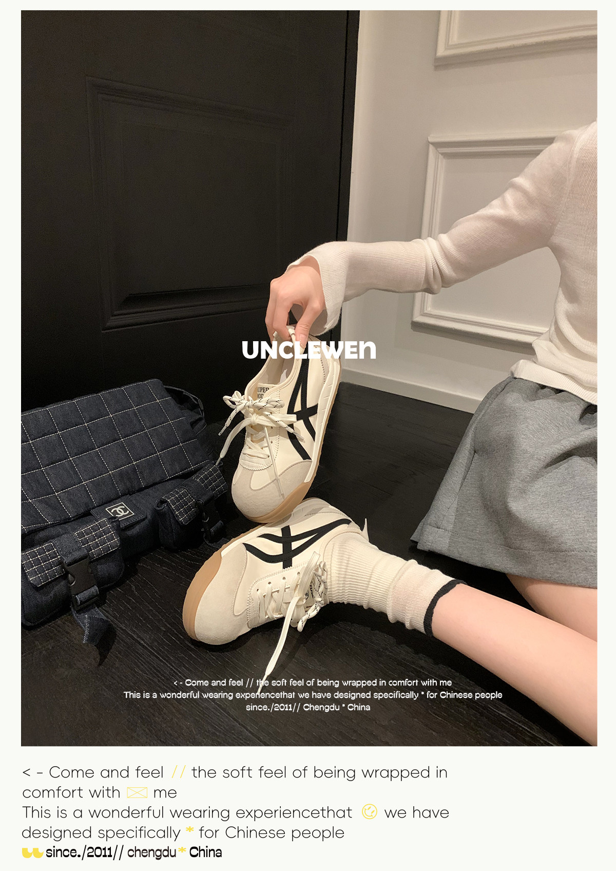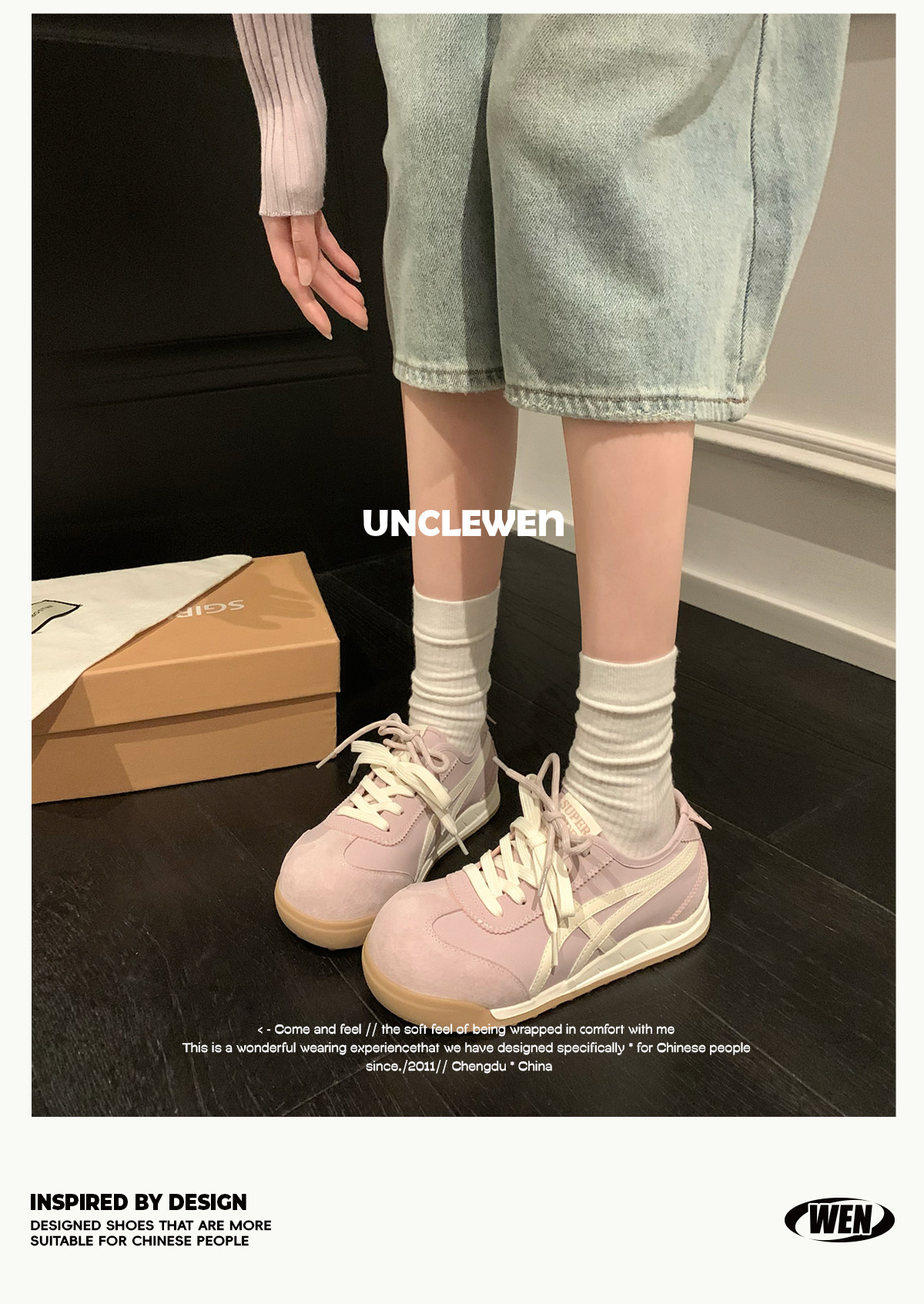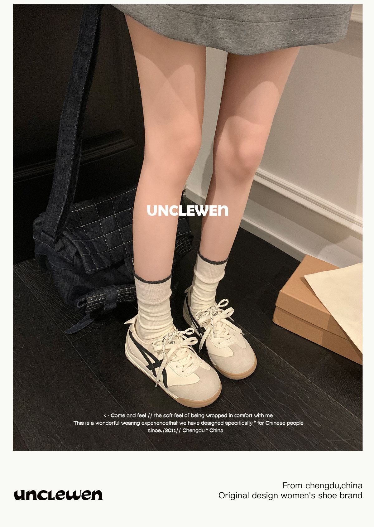 Uncle Wen's Original Greys Painting Style ~ Height-Increasing Thick-Soled Agande Training Shoes, Women's White Casual Sneakers