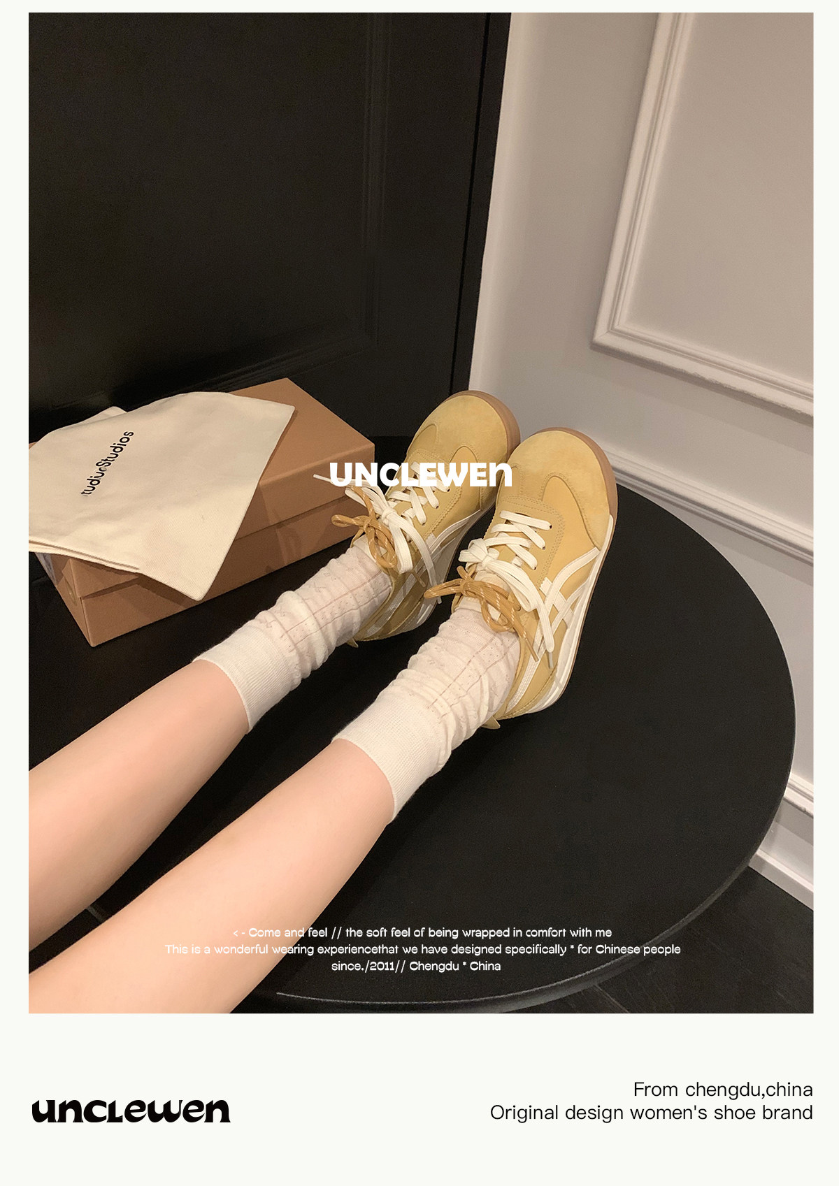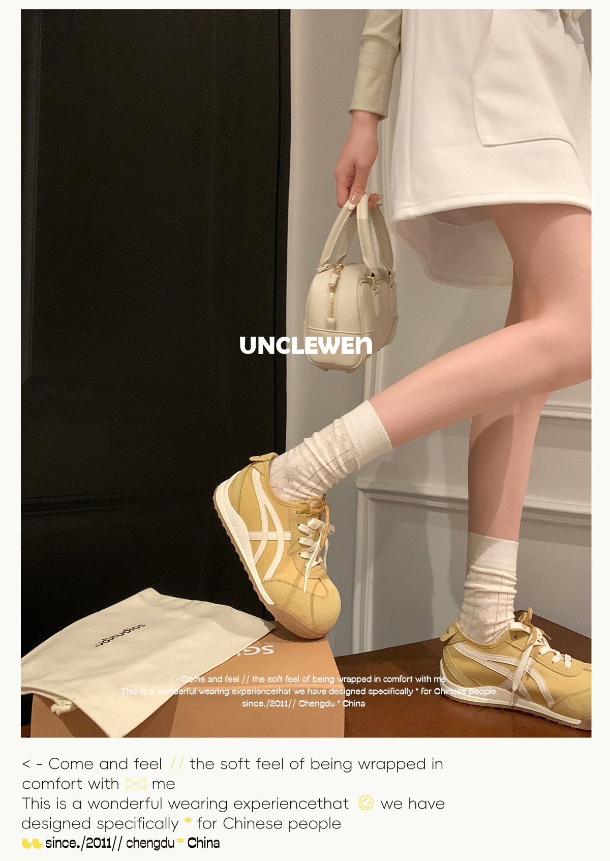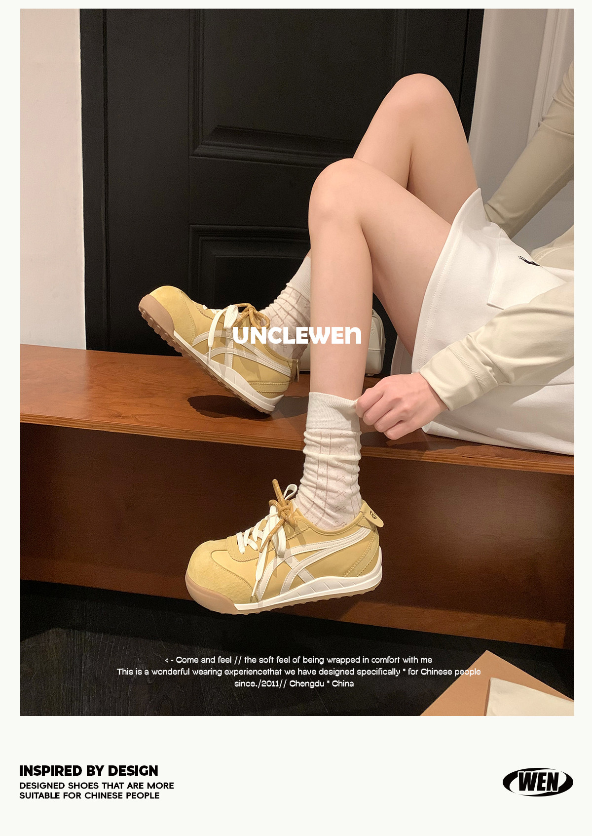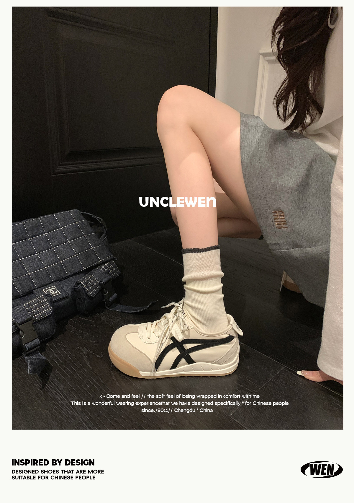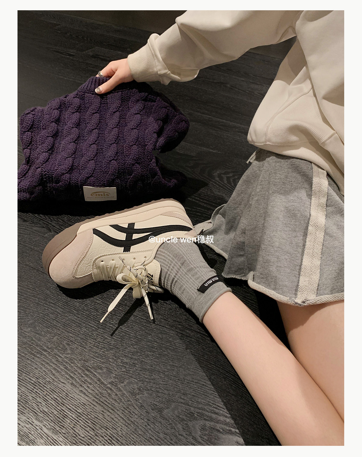 Uncle Wen's Original Greys Painting Style ~ Height-Increasing Thick-Soled Agande Training Shoes, Women's White Casual Sneakers