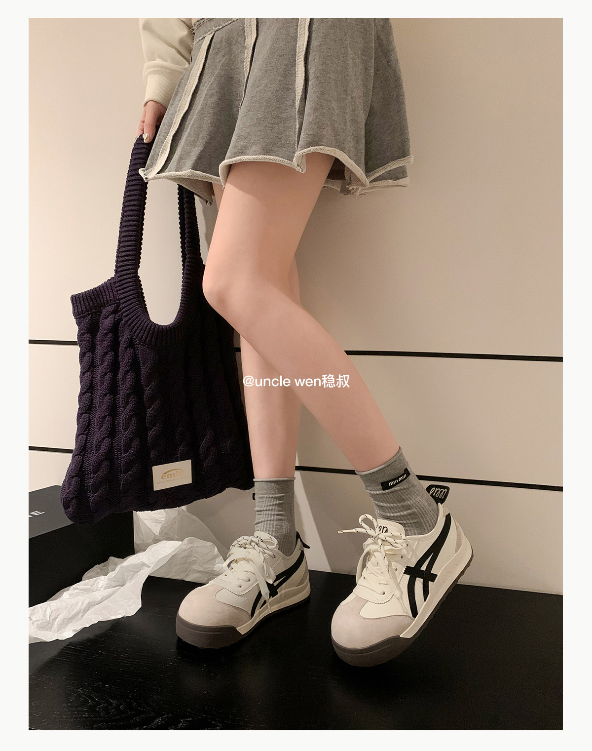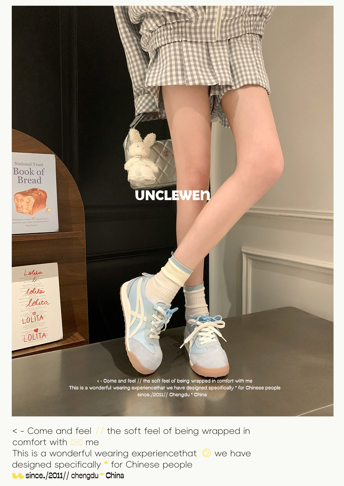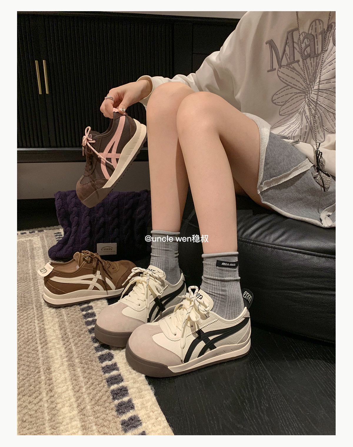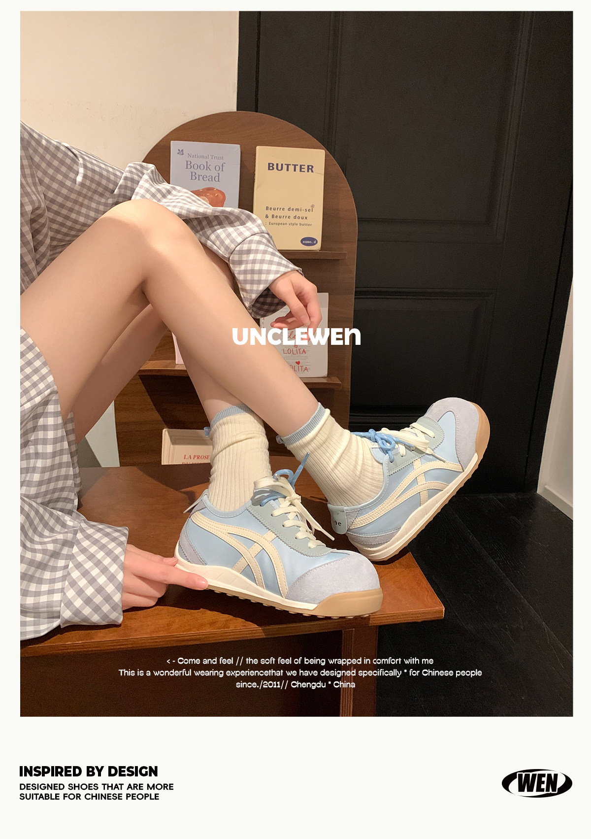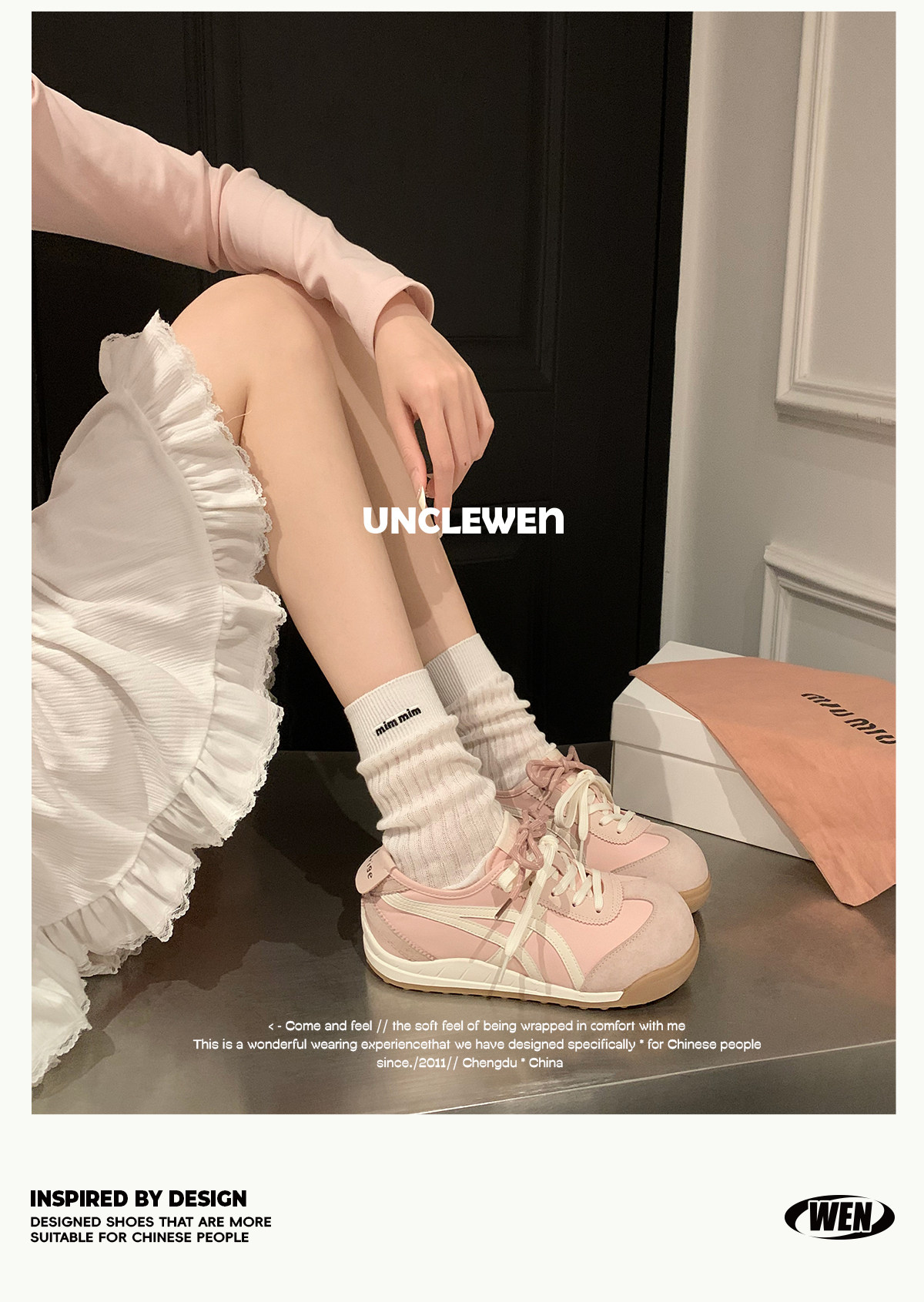 Uncle Wen's Original Greys Painting Style ~ Height-Increasing Thick-Soled Agande Training Shoes, Women's White Casual Sneakers