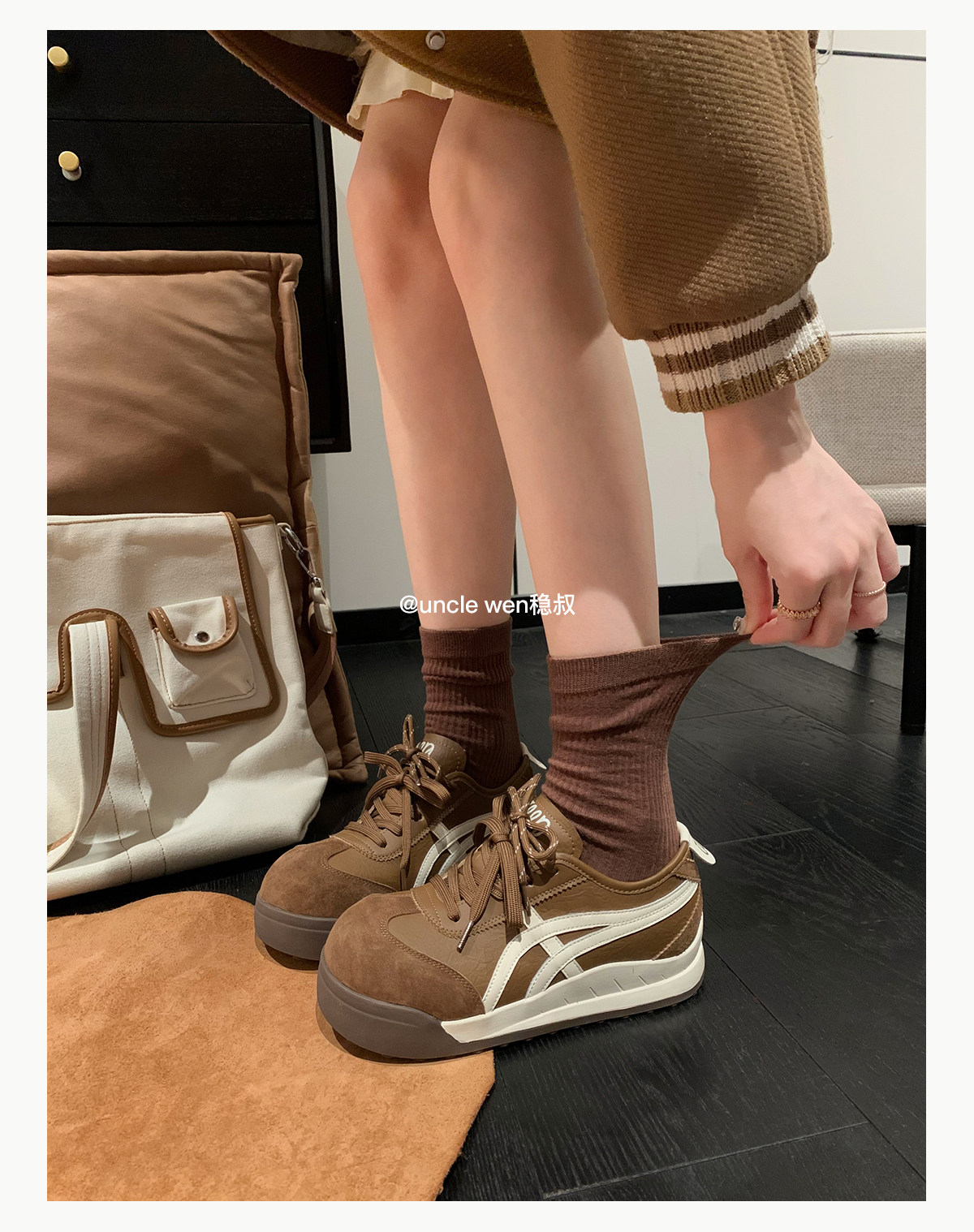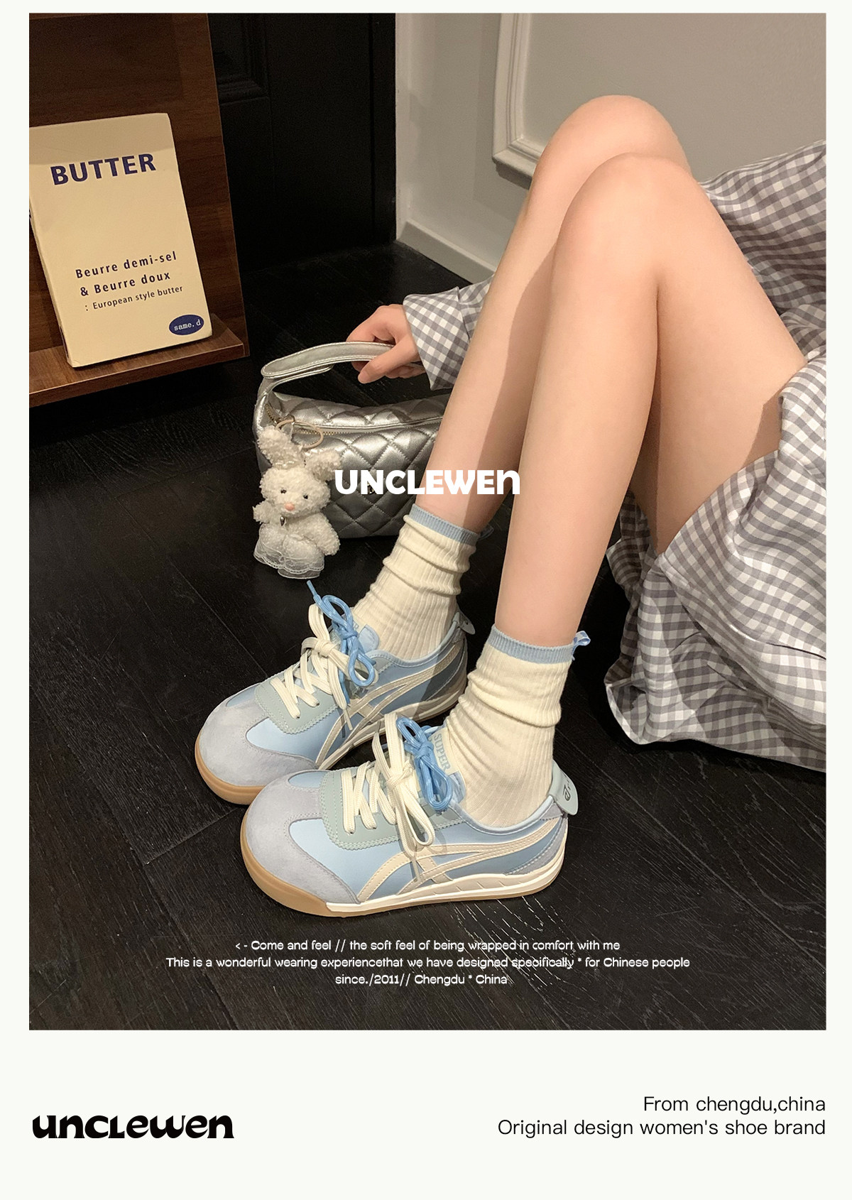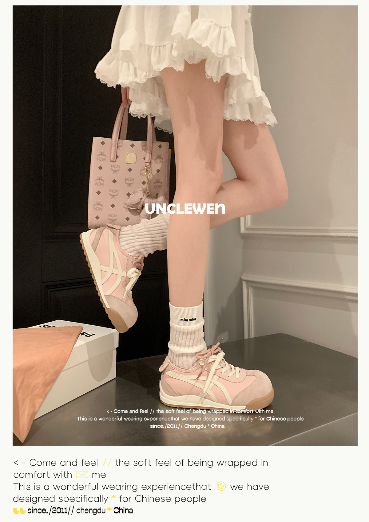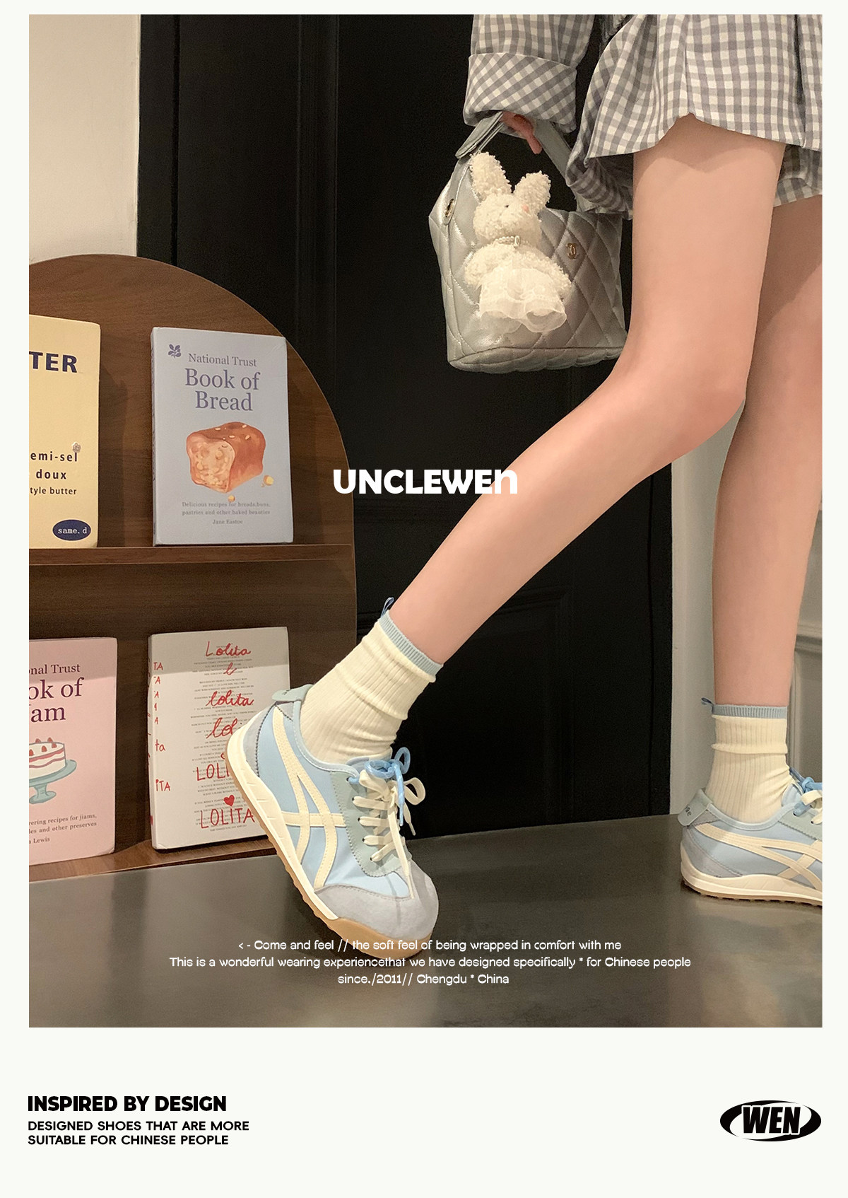 Uncle Wen's Original Greys Painting Style ~ Height-Increasing Thick-Soled Agande Training Shoes, Women's White Casual Sneakers
