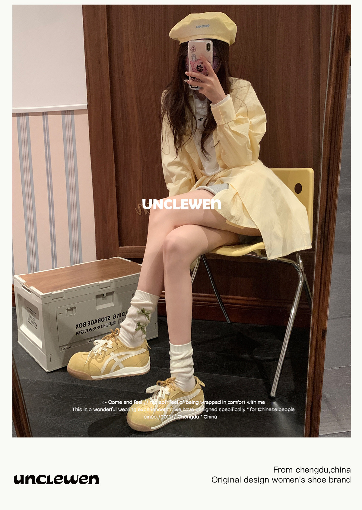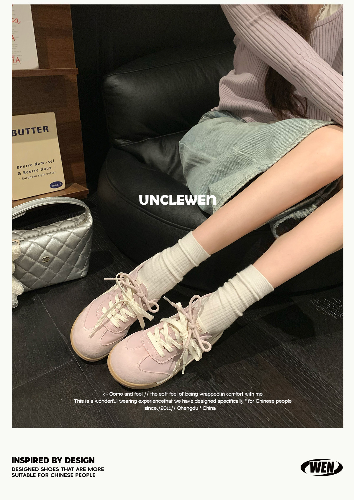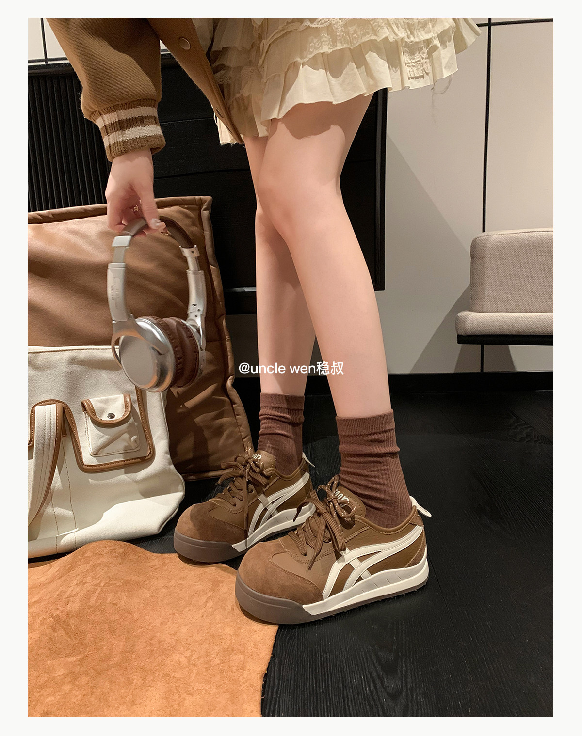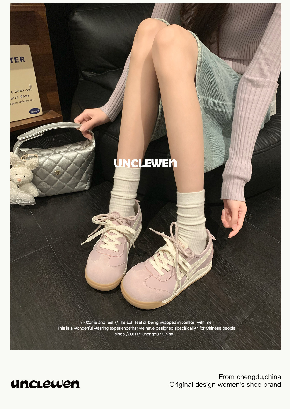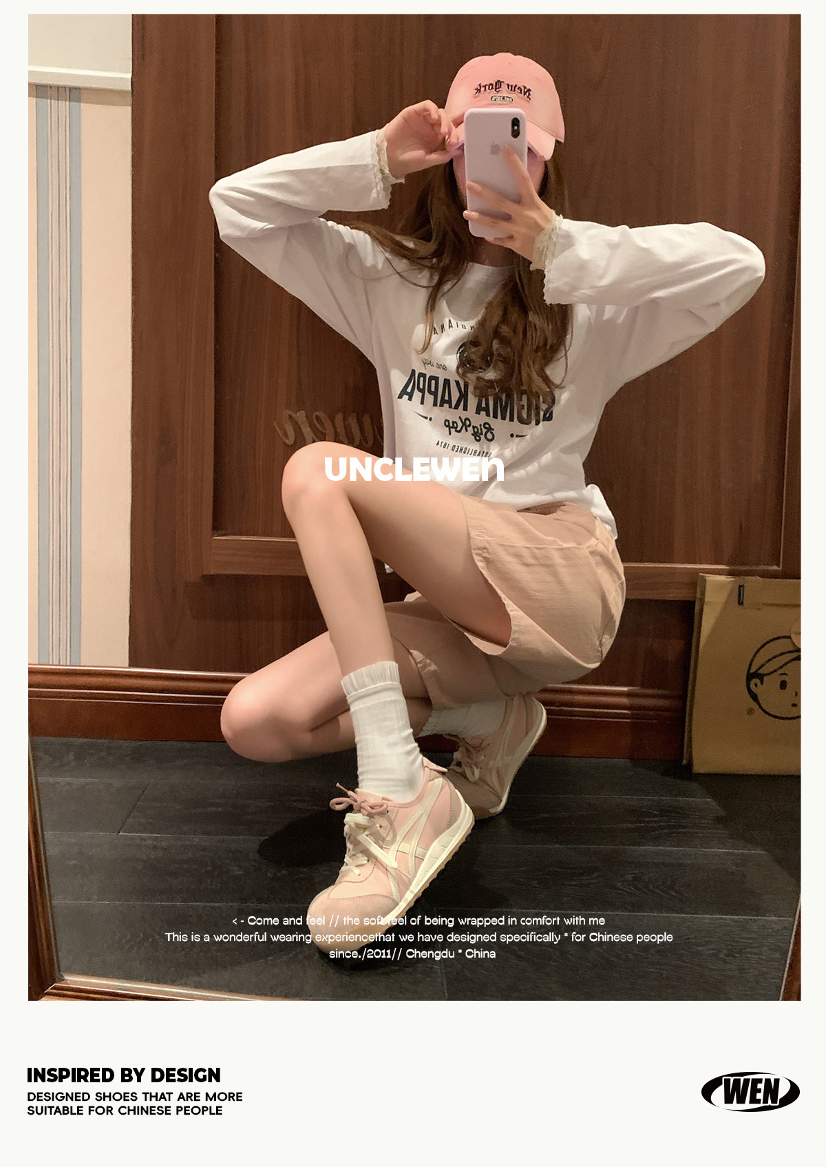 Uncle Wen's Original Greys Painting Style ~ Height-Increasing Thick-Soled Agande Training Shoes, Women's White Casual Sneakers