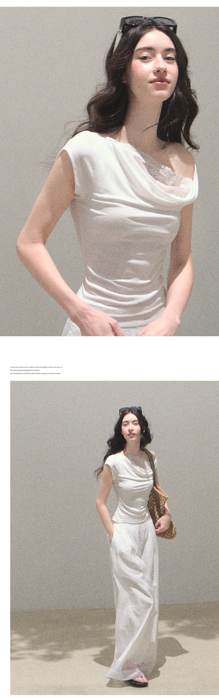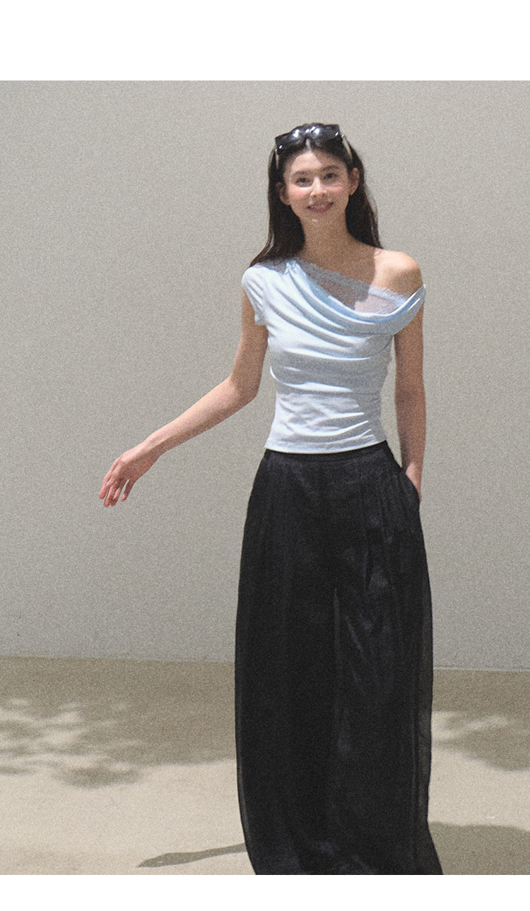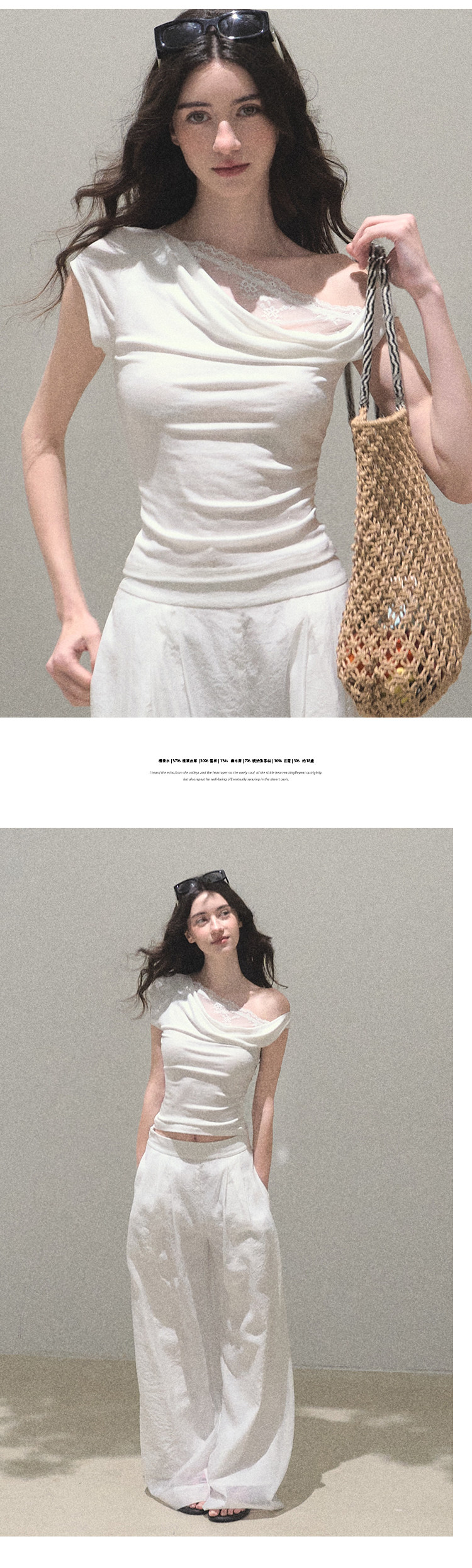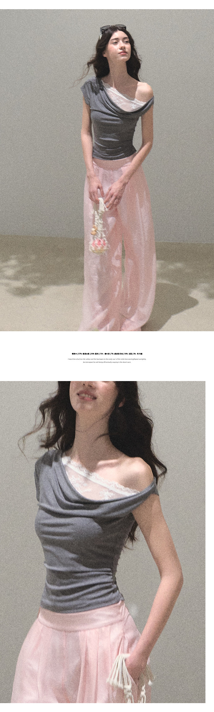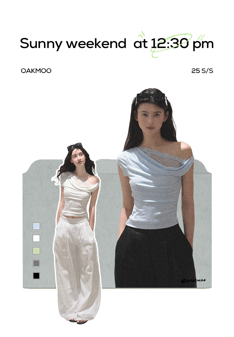 Oakmoo/ "Season of Love" Pure Desire Asymmetrical Shoulder Design Tencel Knit Top T-Shirt
