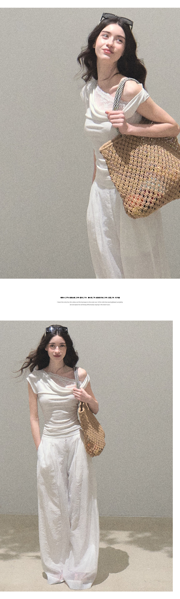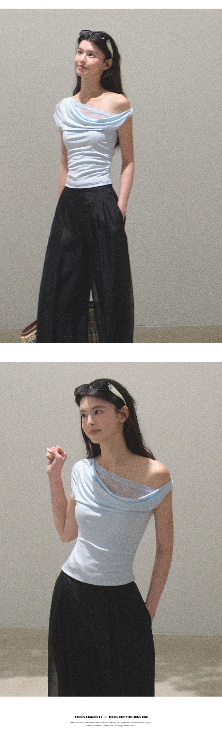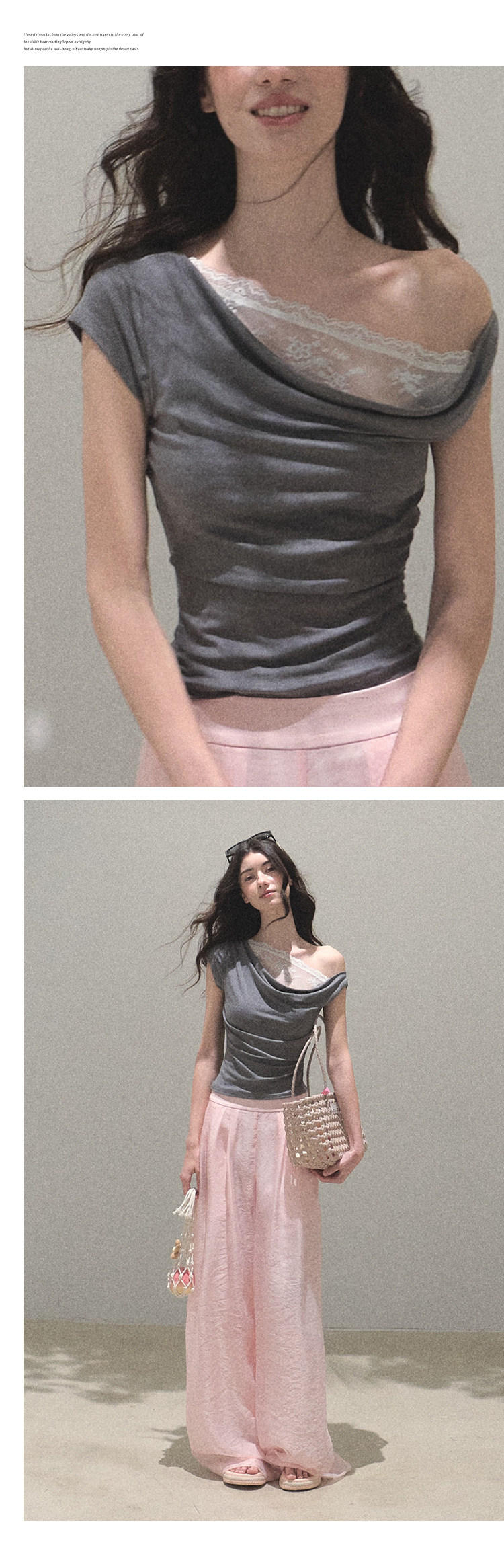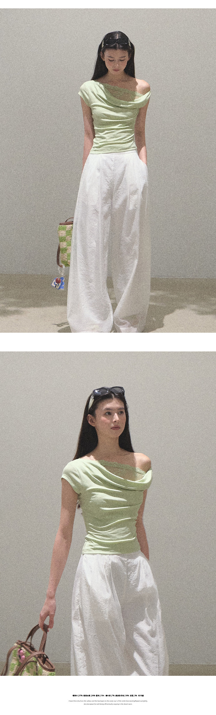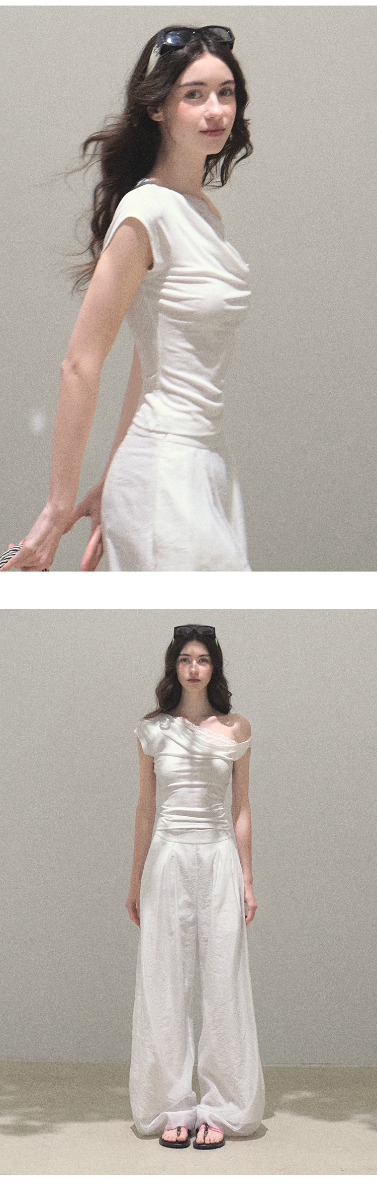 Oakmoo/ "Season of Love" Pure Desire Asymmetrical Shoulder Design Tencel Knit Top T-Shirt