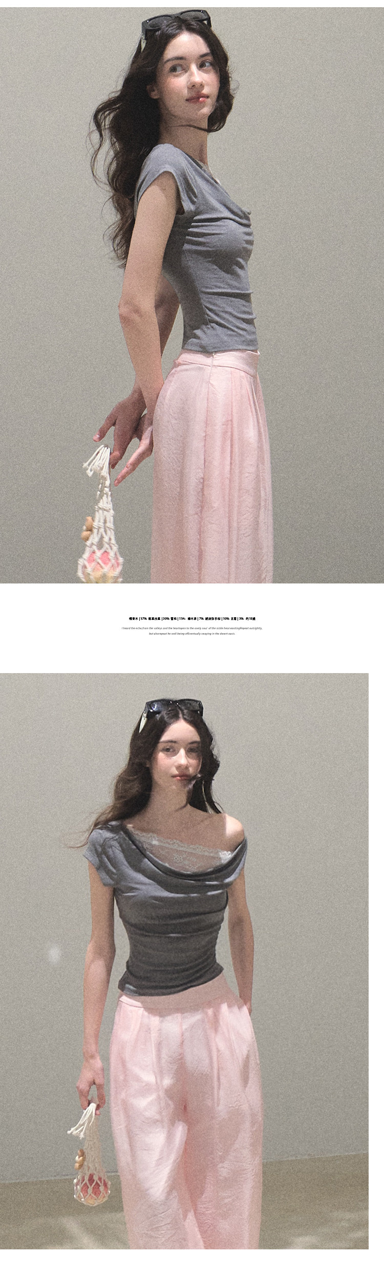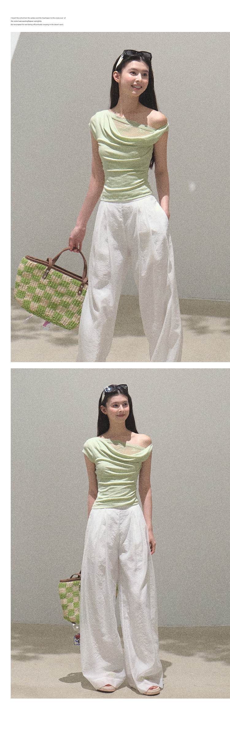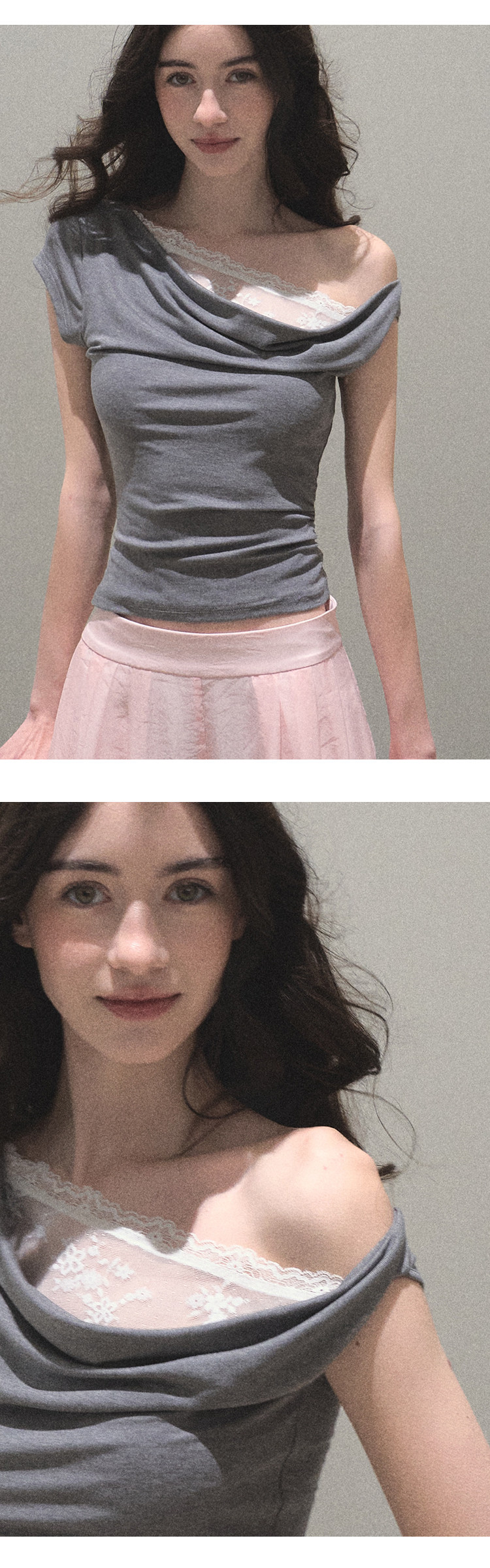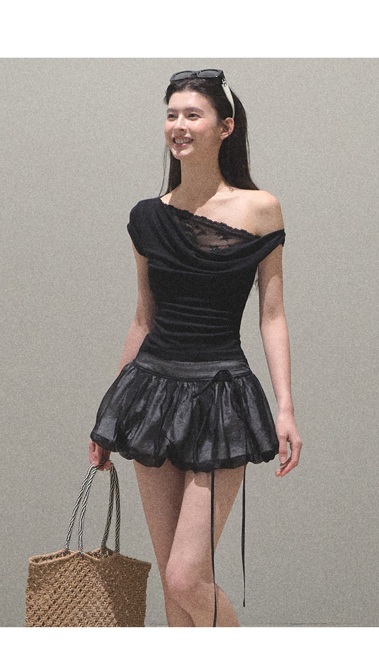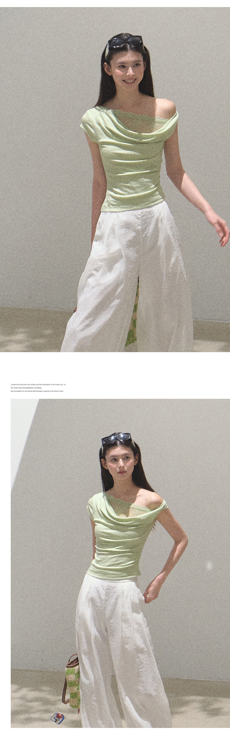 Oakmoo/ "Season of Love" Pure Desire Asymmetrical Shoulder Design Tencel Knit Top T-Shirt