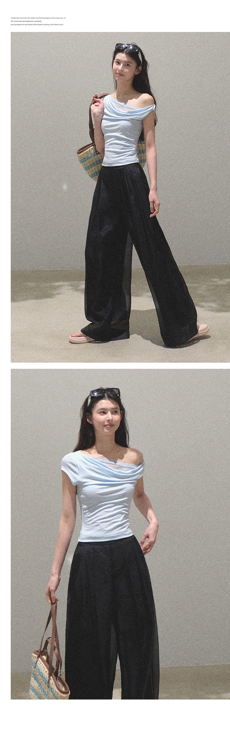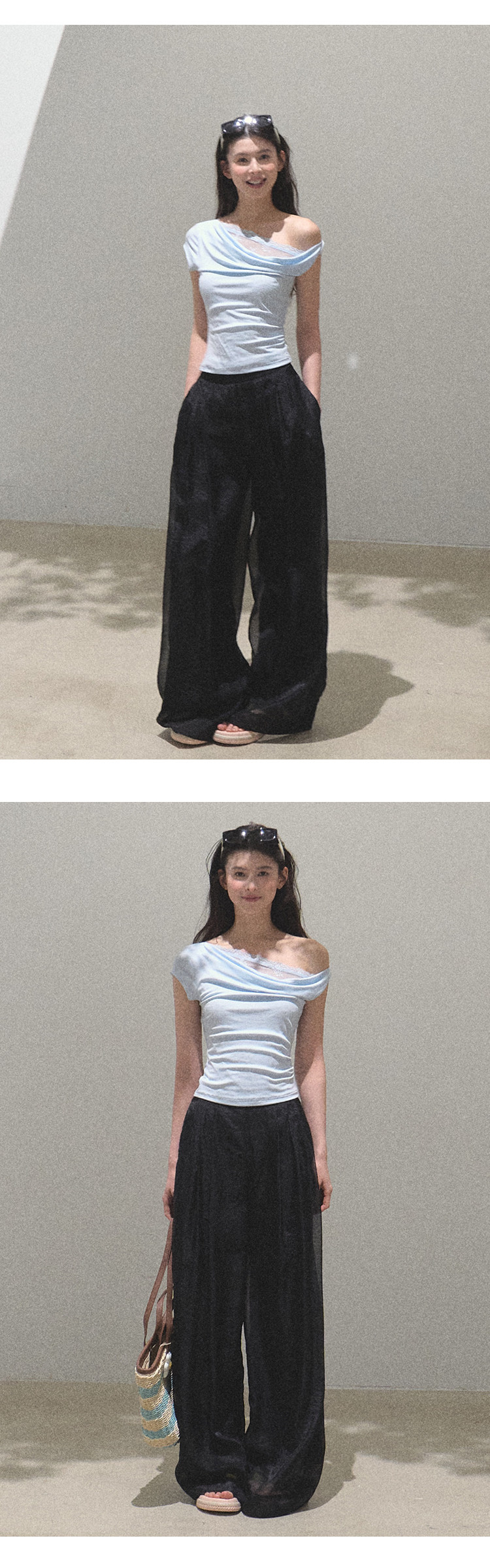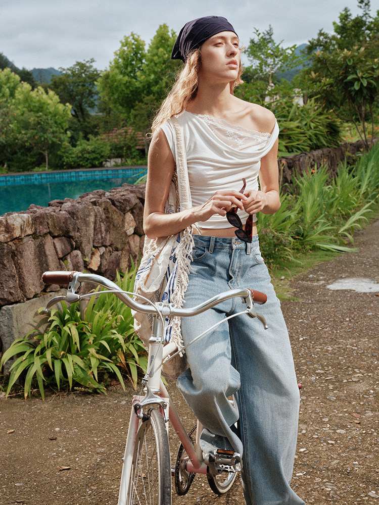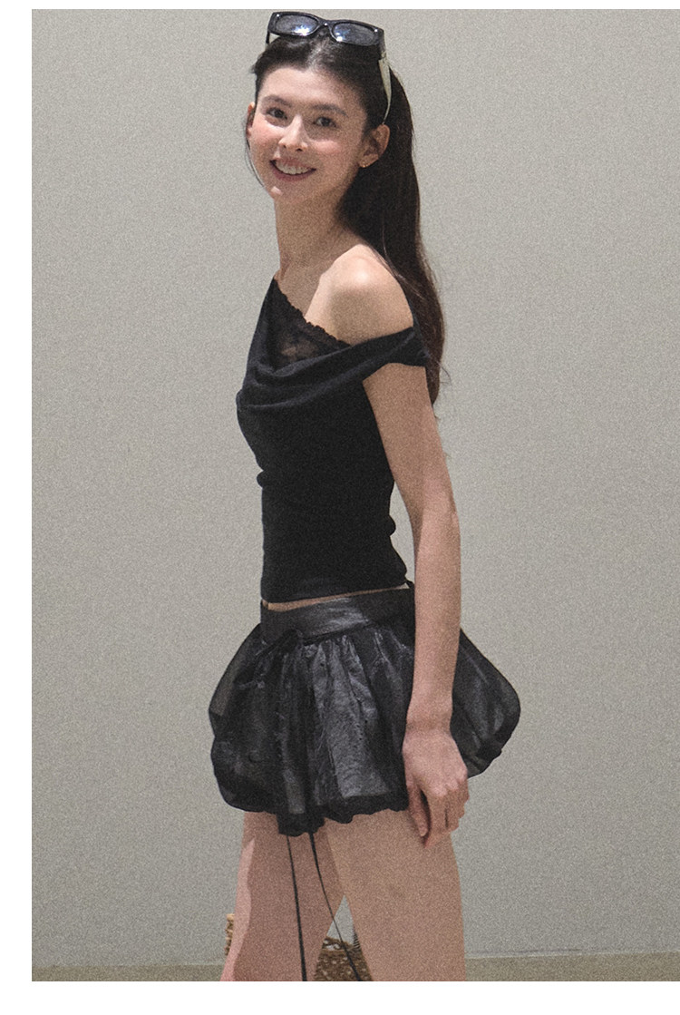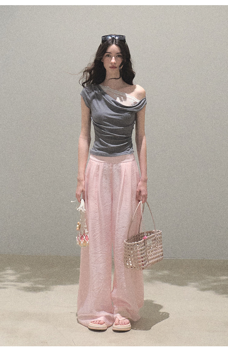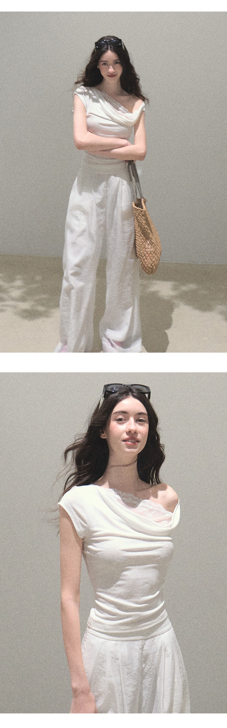 Oakmoo/ "Season of Love" Pure Desire Asymmetrical Shoulder Design Tencel Knit Top T-Shirt