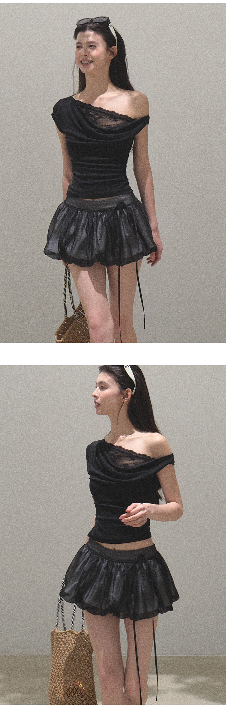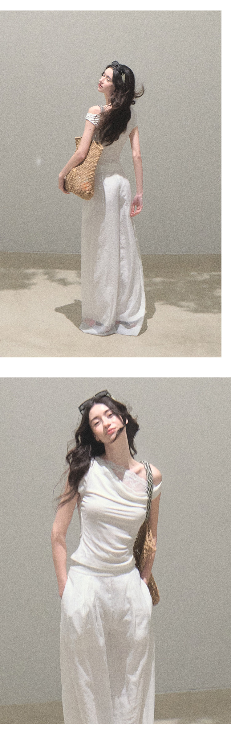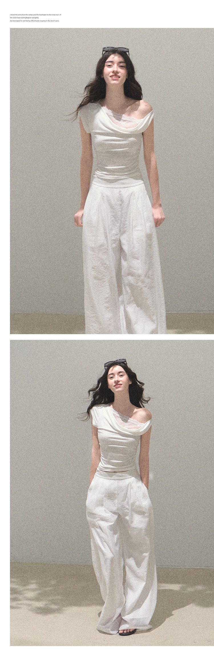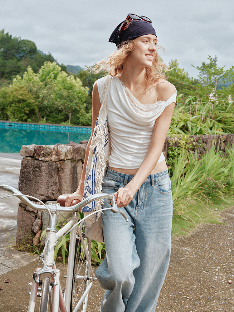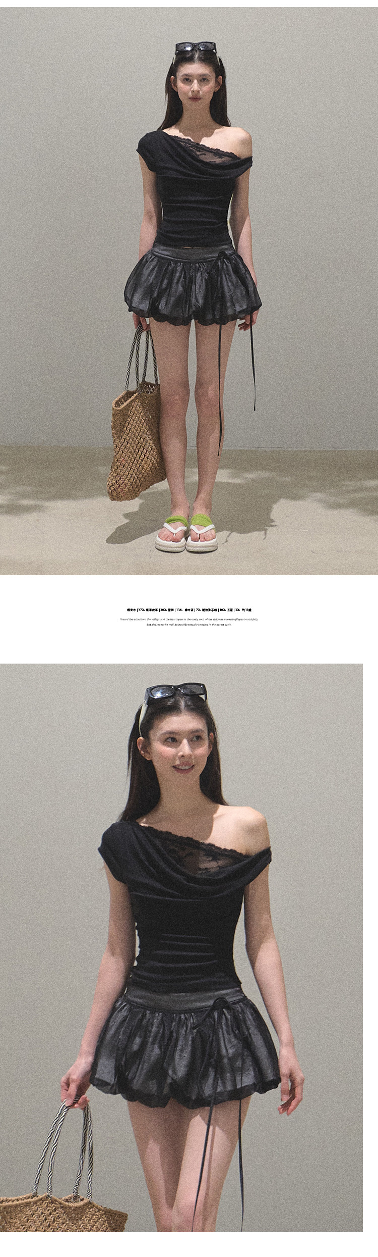 Oakmoo/ "Season of Love" Pure Desire Asymmetrical Shoulder Design Tencel Knit Top T-Shirt