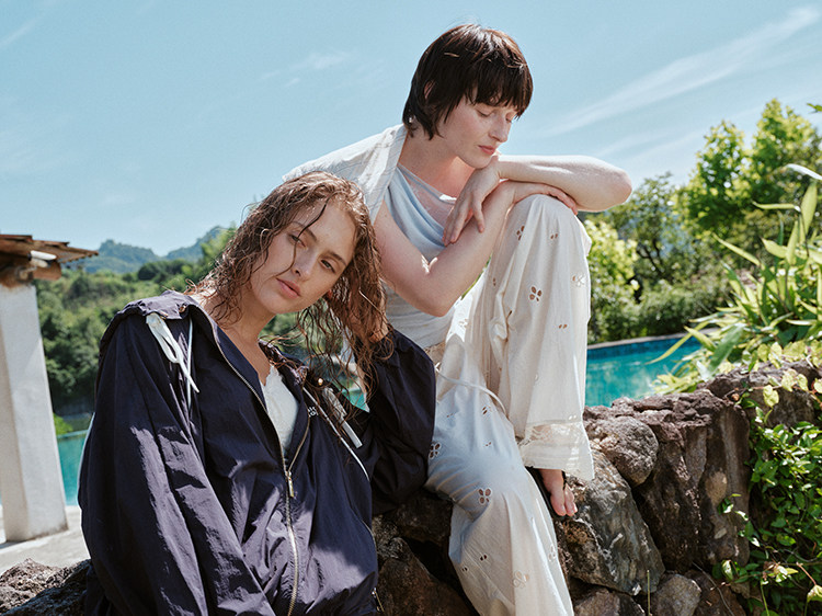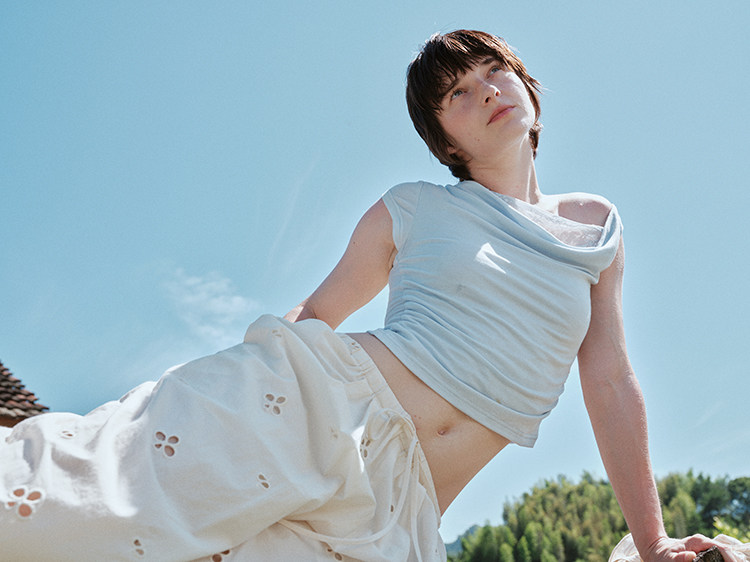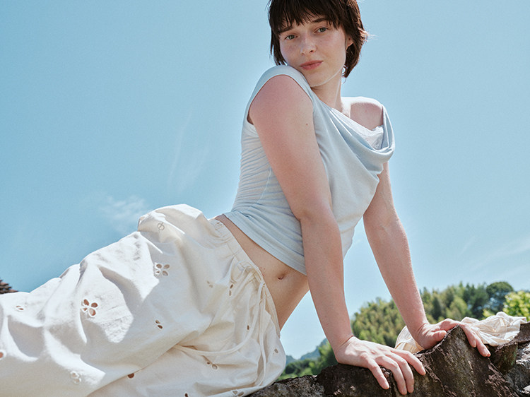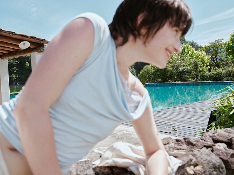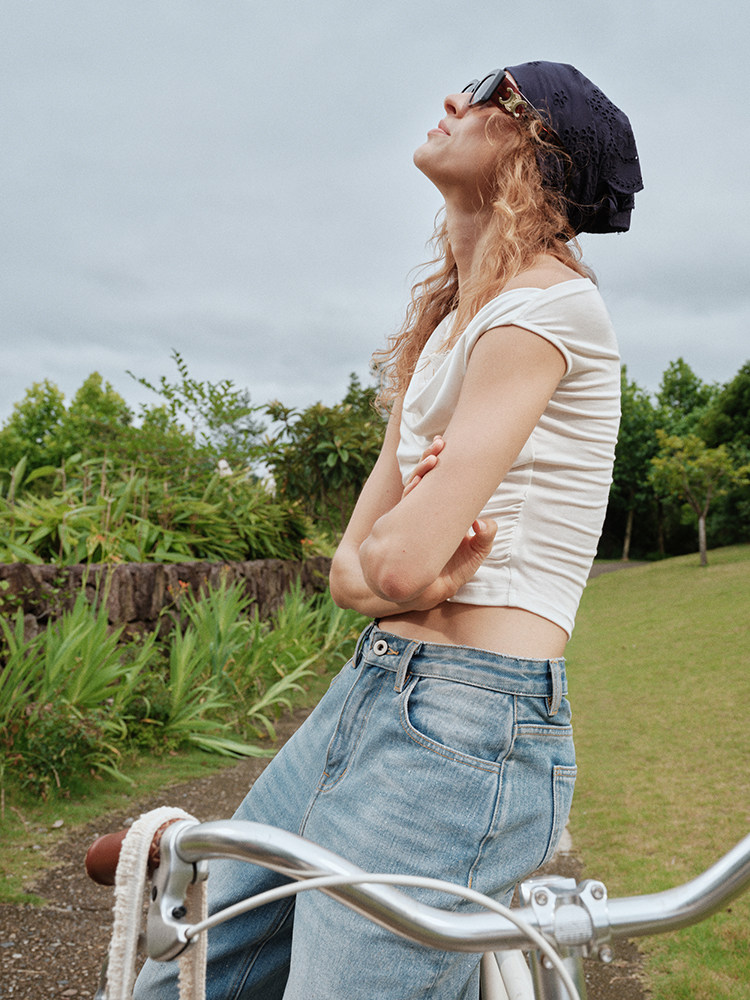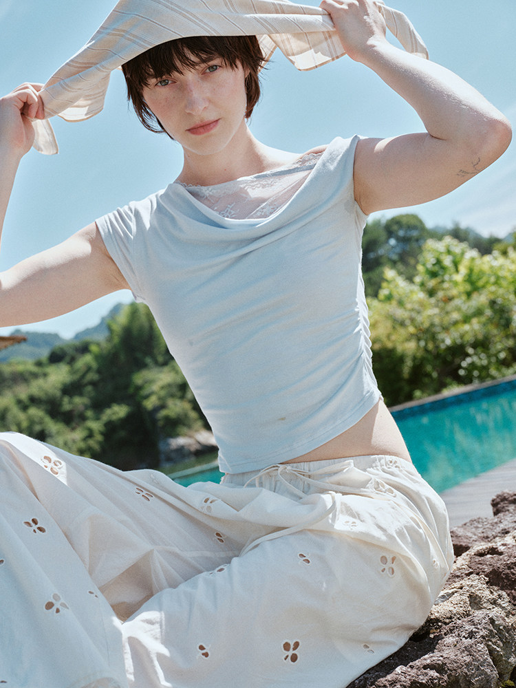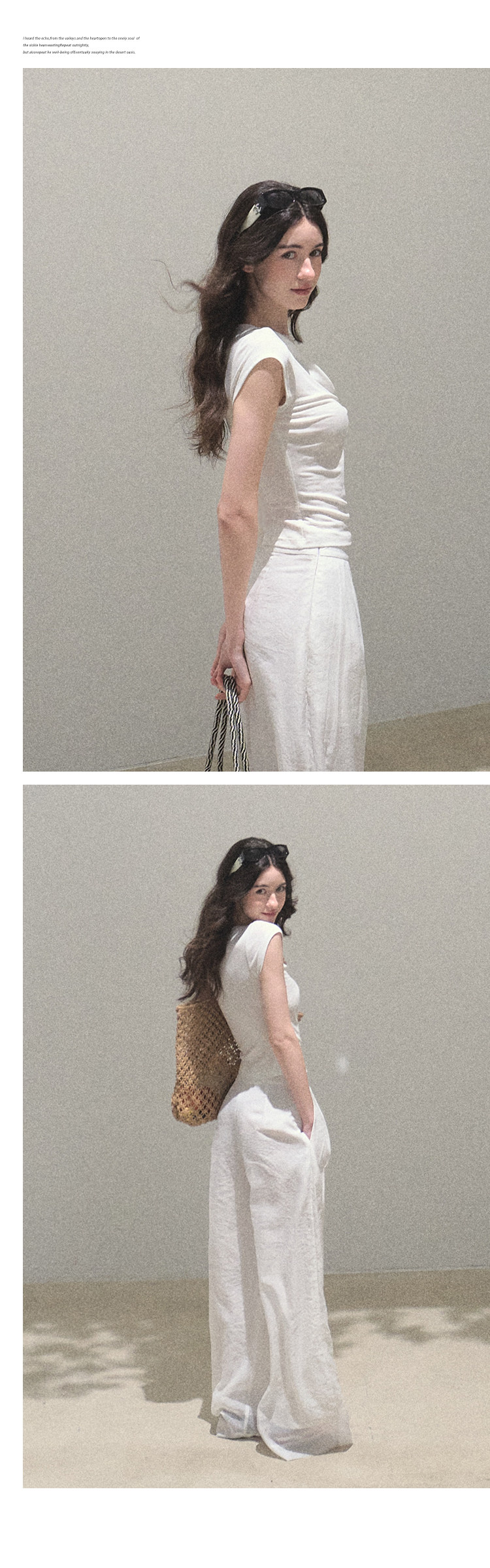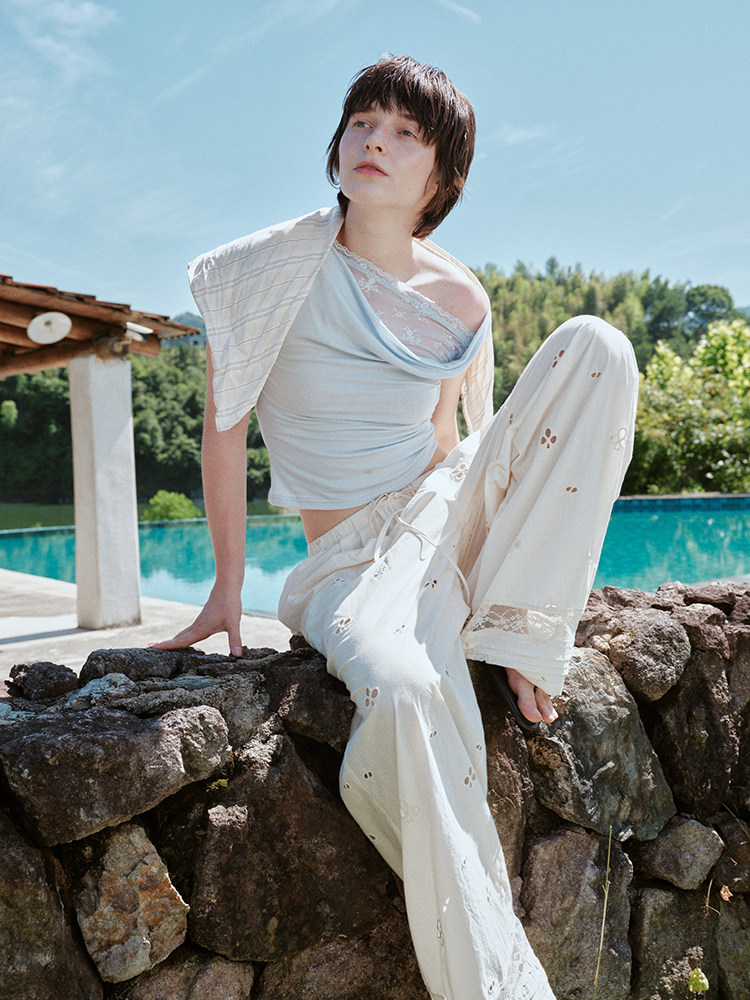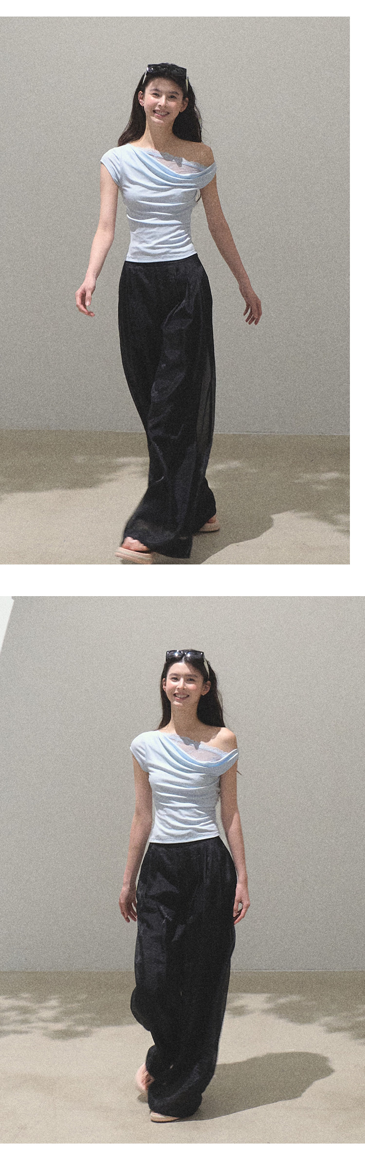 Oakmoo/ "Season of Love" Pure Desire Asymmetrical Shoulder Design Tencel Knit Top T-Shirt