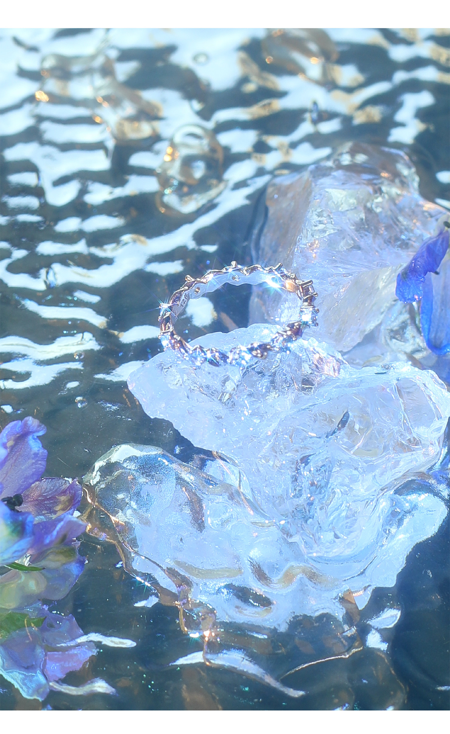 Mouhooland Afterland Zhao Lusi and Zhong Xintong's Same Original Design Wave Blue Diamond Ring