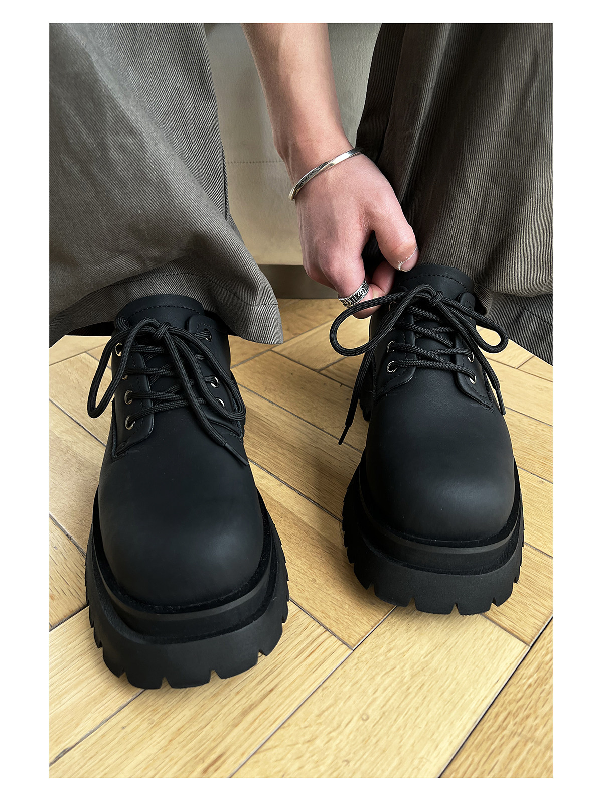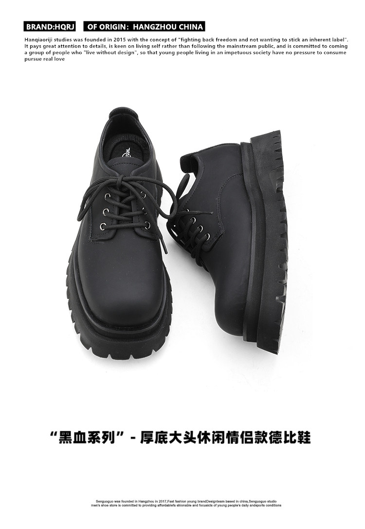 Hanqiao Diary [Black Blood Series] Original Thick-Soled Genuine Leather Couple's Chunky Derby Shoes for Men ins Trendy Small Leather Shoes for Women