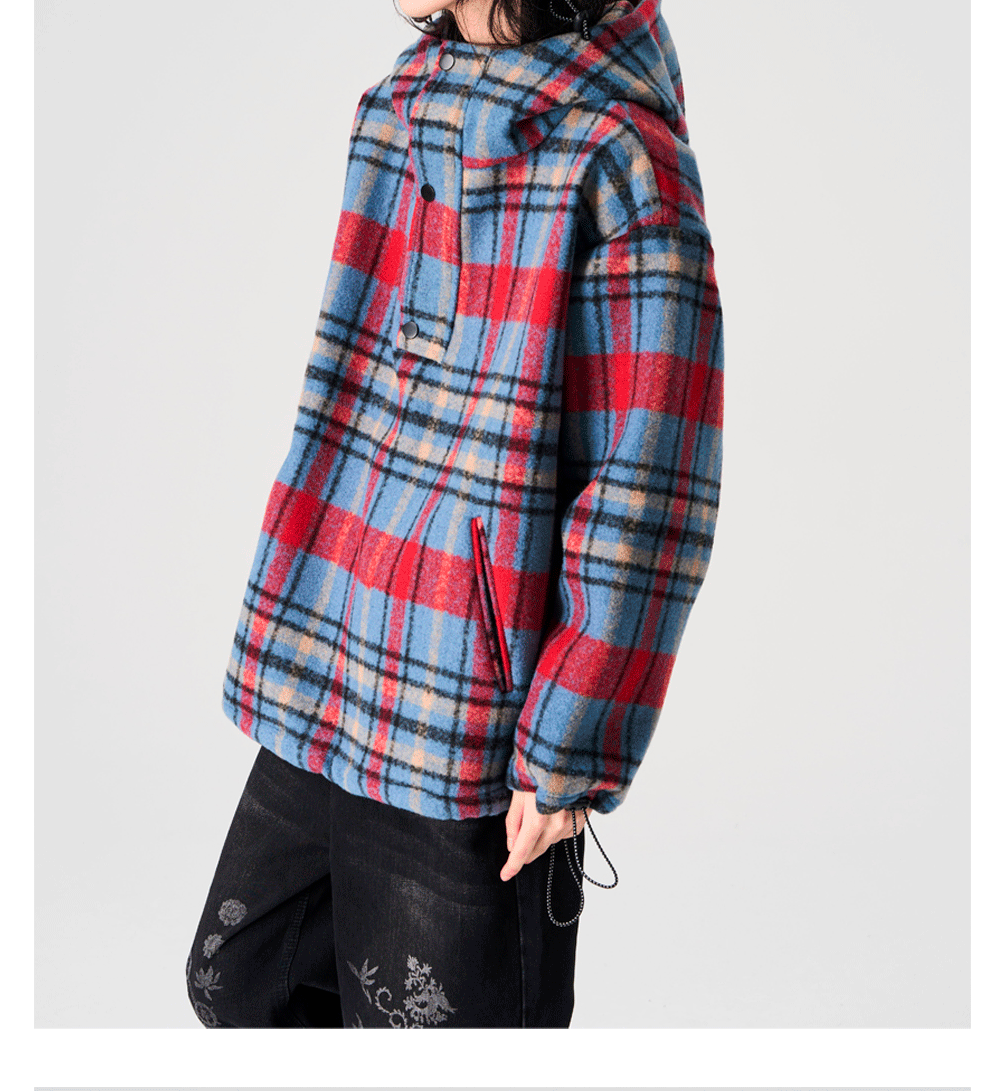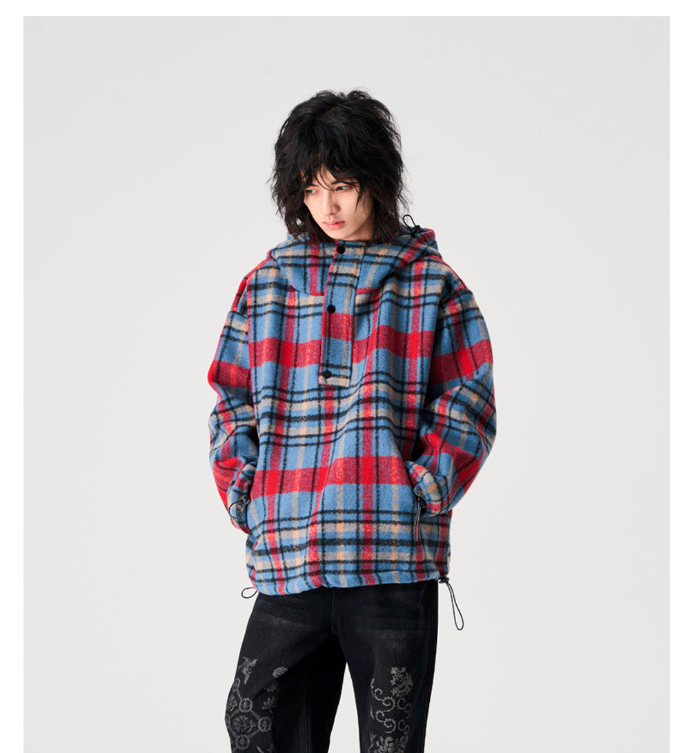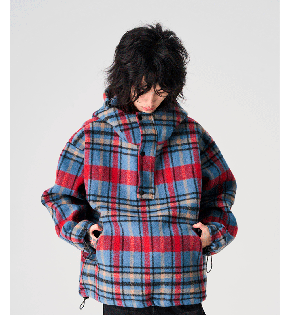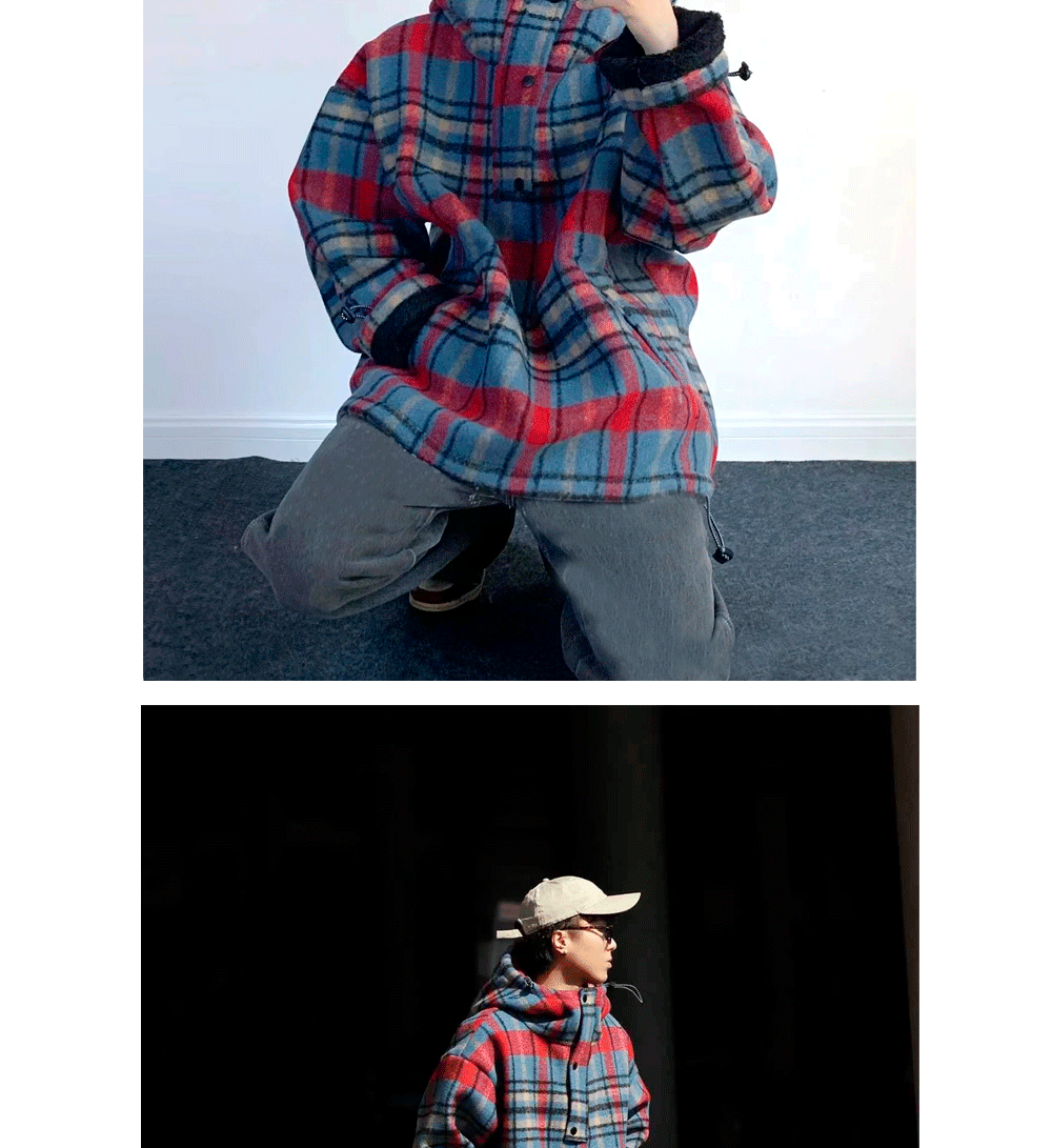 Rthm Retro Woolen Plaid Coat, Cotton Jacket, Thickened and Fleece-Lined Pullover Sweatshirt, Cotton Coat for Men and Women