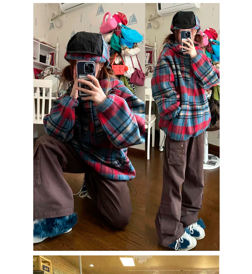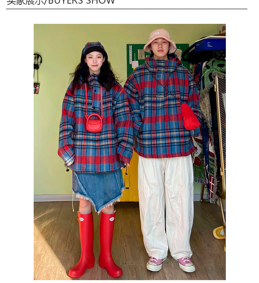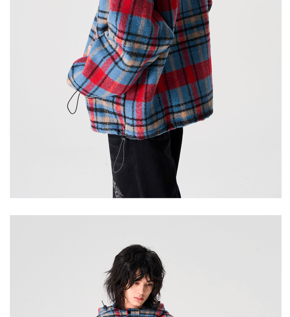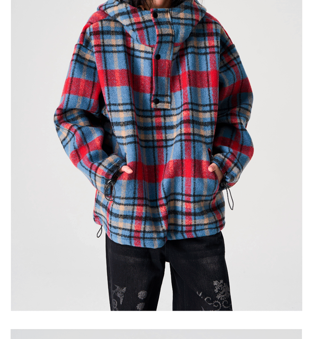 Rthm Retro Woolen Plaid Coat, Cotton Jacket, Thickened and Fleece-Lined Pullover Sweatshirt, Cotton Coat for Men and Women