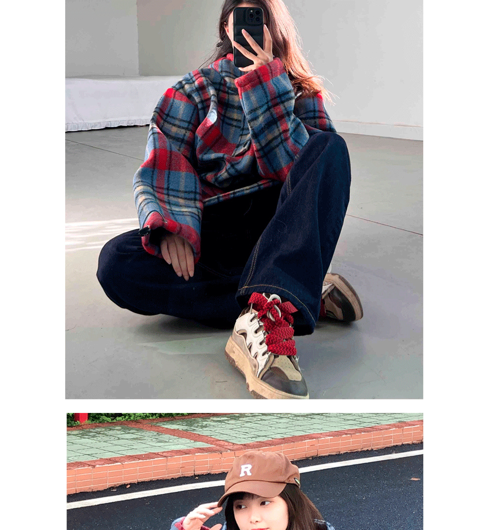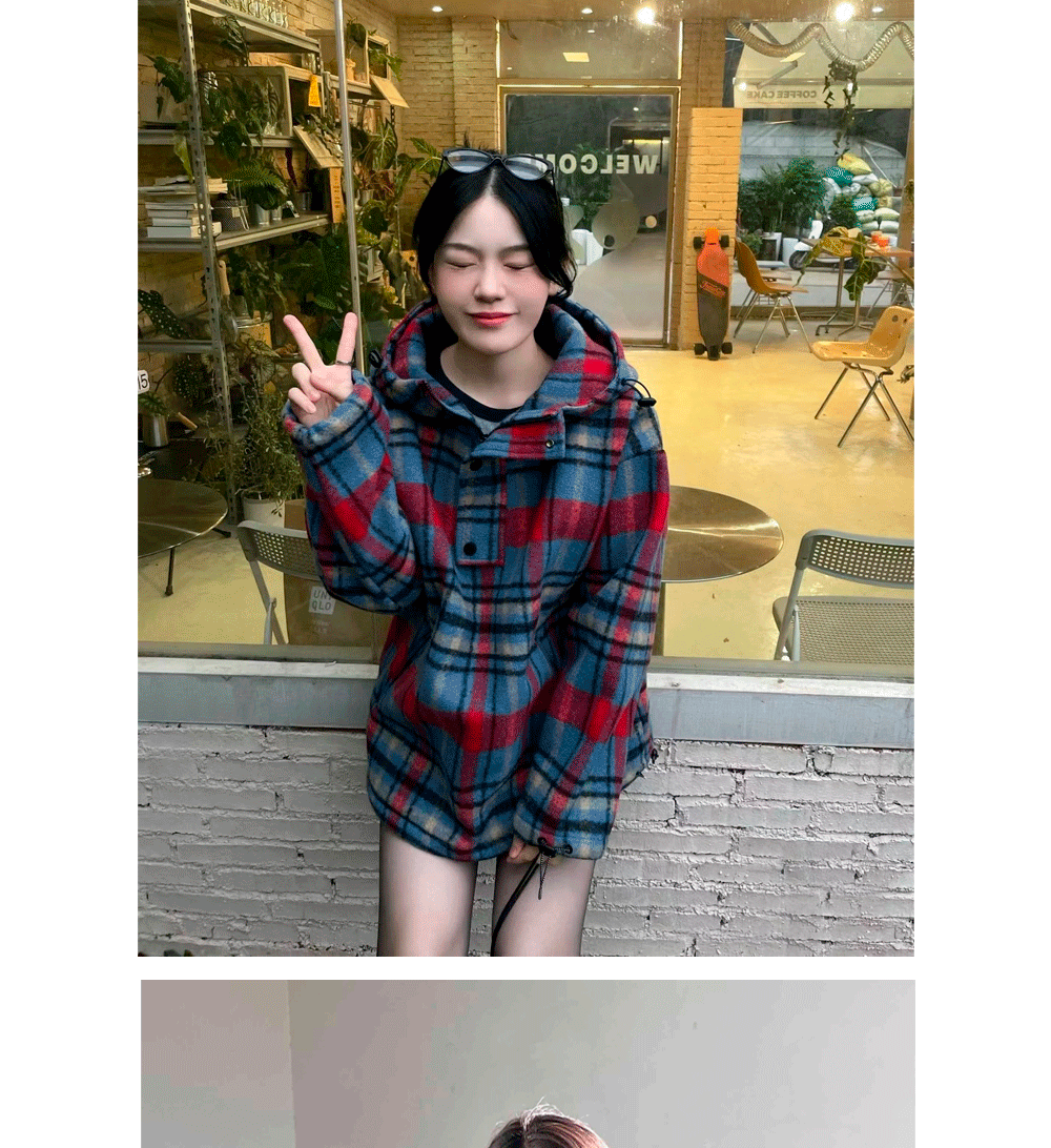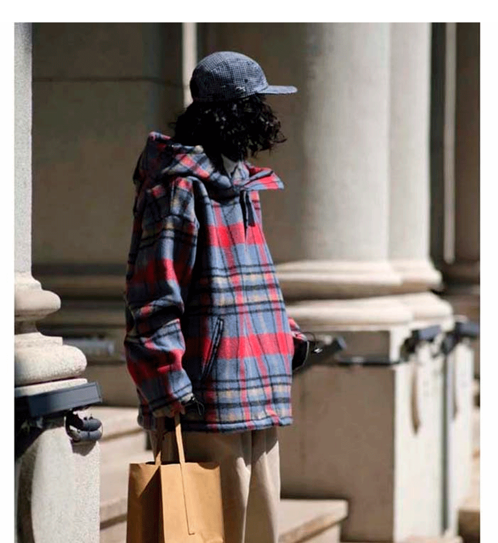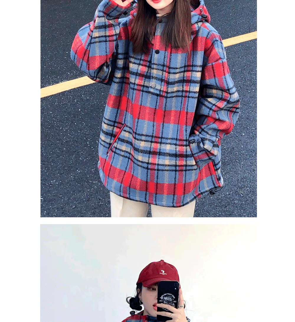 Rthm Retro Woolen Plaid Coat, Cotton Jacket, Thickened and Fleece-Lined Pullover Sweatshirt, Cotton Coat for Men and Women