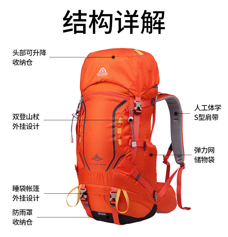 Aiwang Professional Mountaineering Bag for Men and Women, Large-Capacity Oxford Cloth Backpack, Outdoor Hiking 40-Liter Ultra-Light Travel Backpack