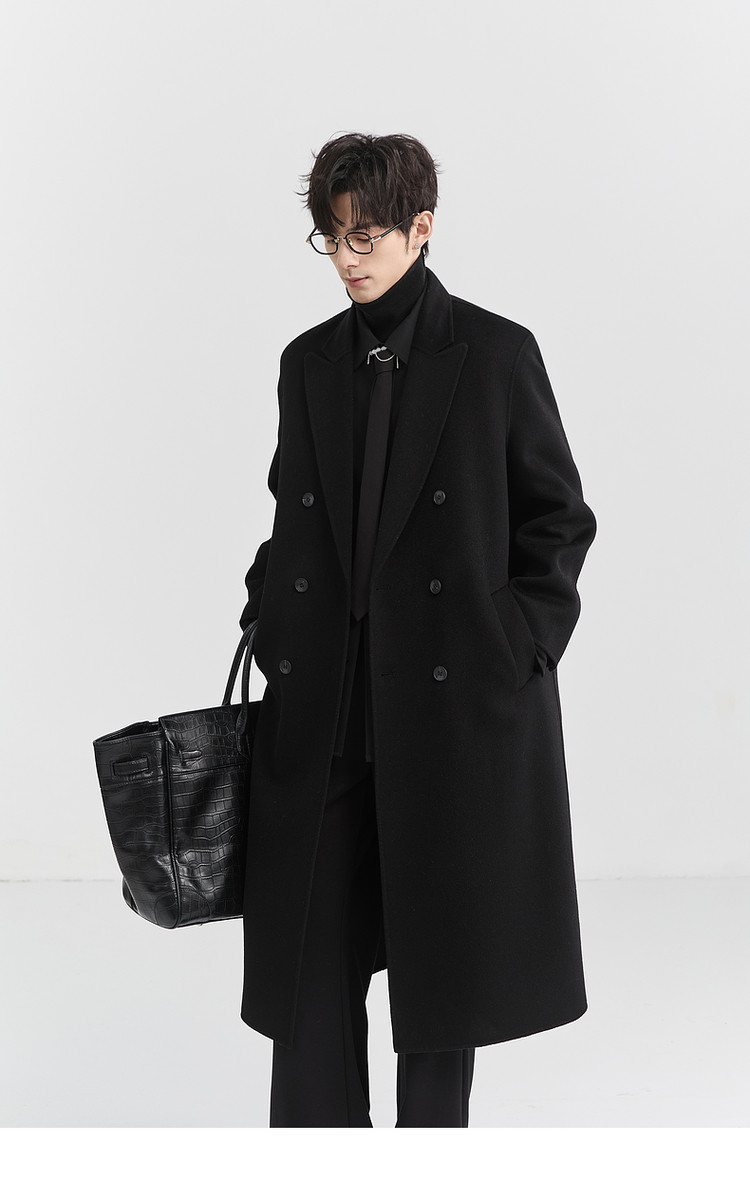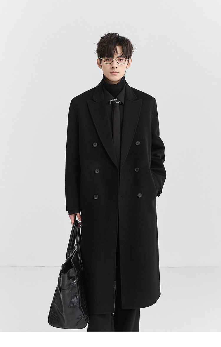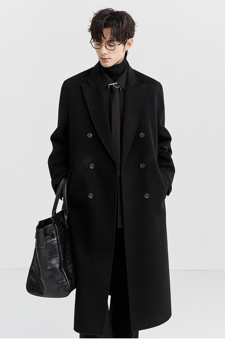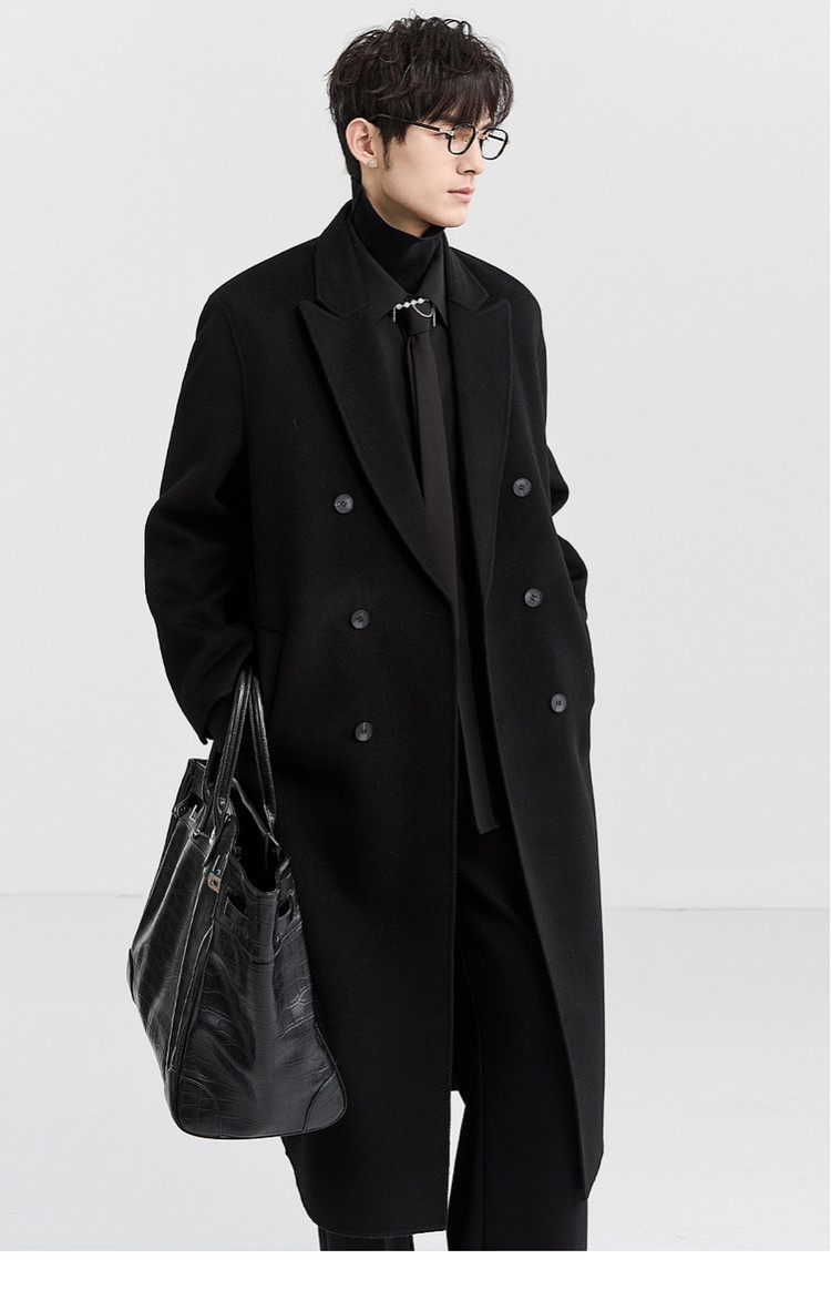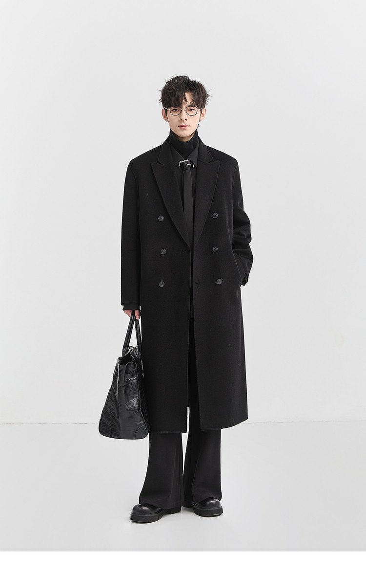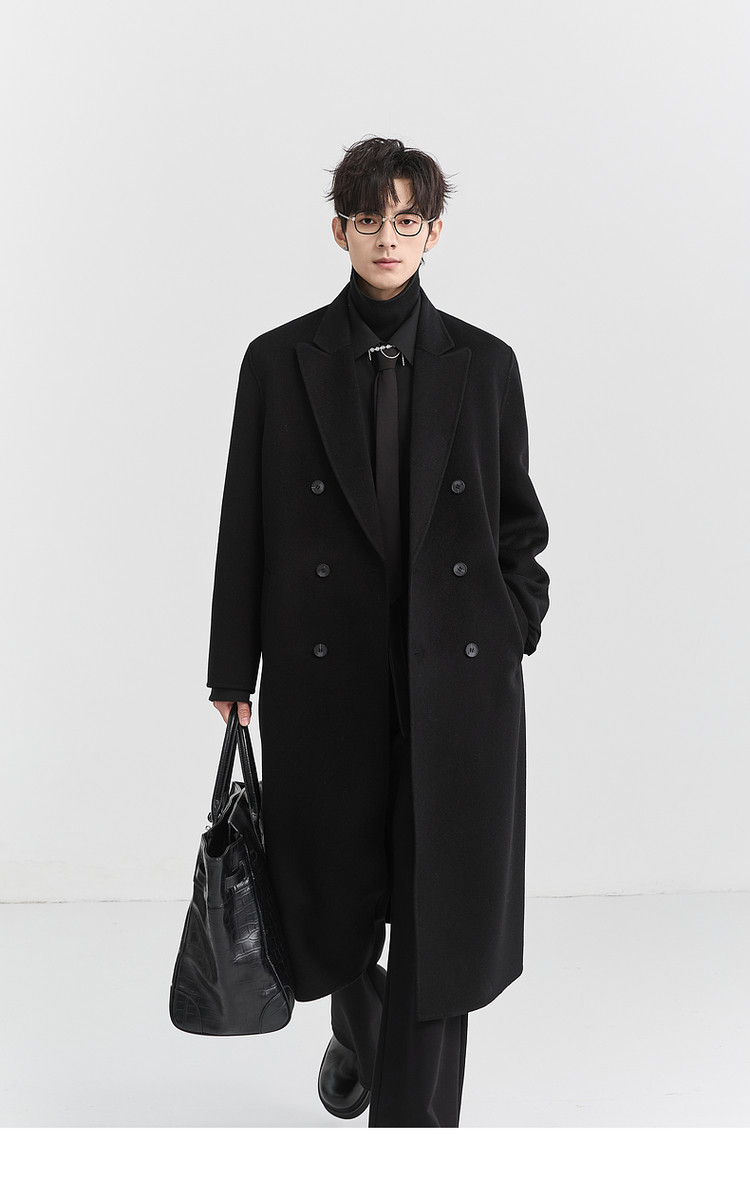 [All Wool Extra Long Style] Bjze Men's Winter High-End Fashion Over-The-Knee Double-Sided Wool Coat with Shoulder Pads
