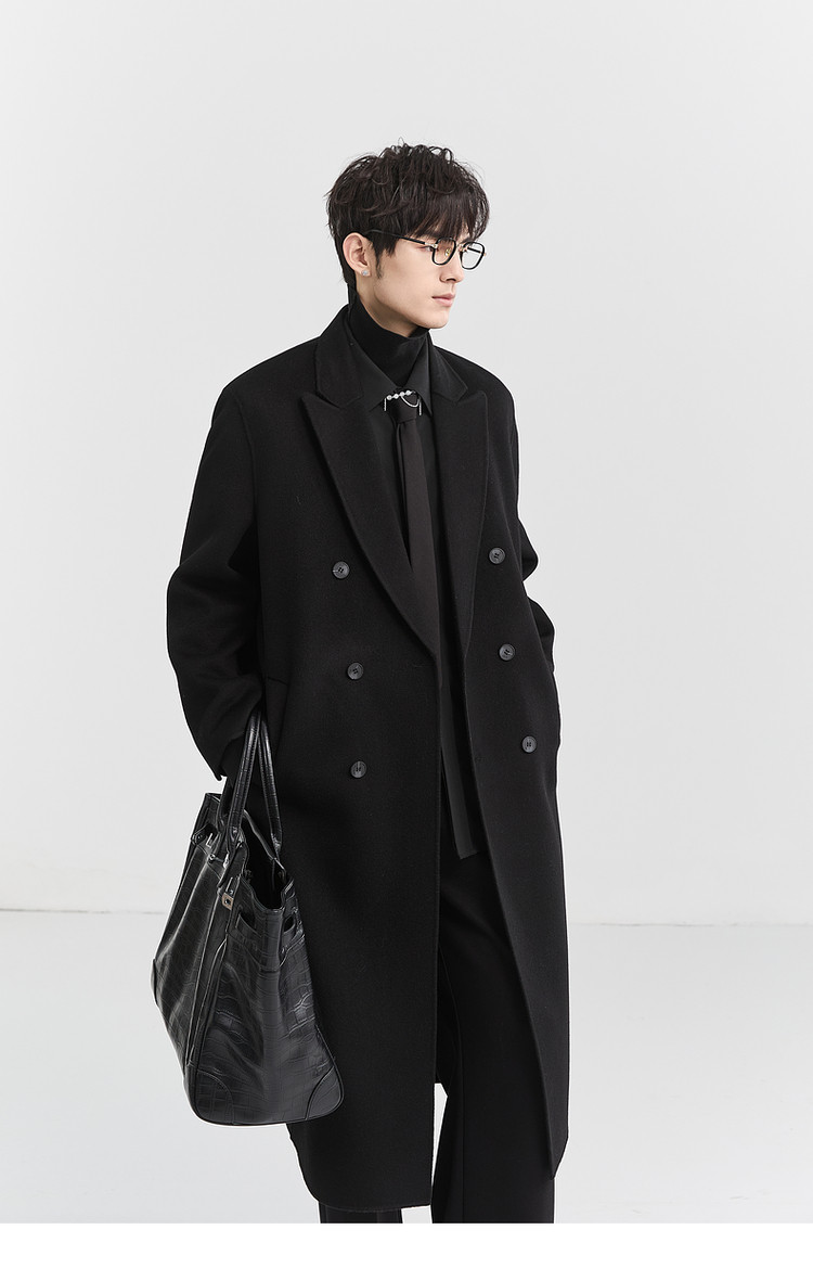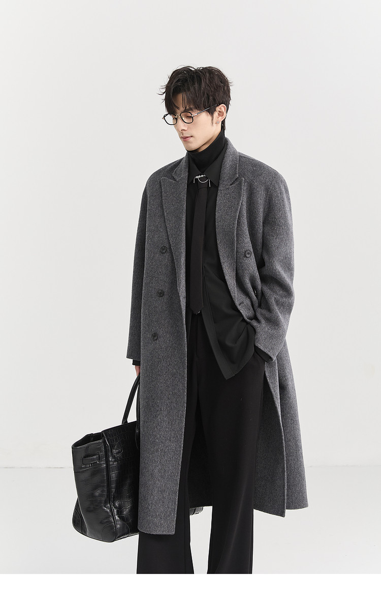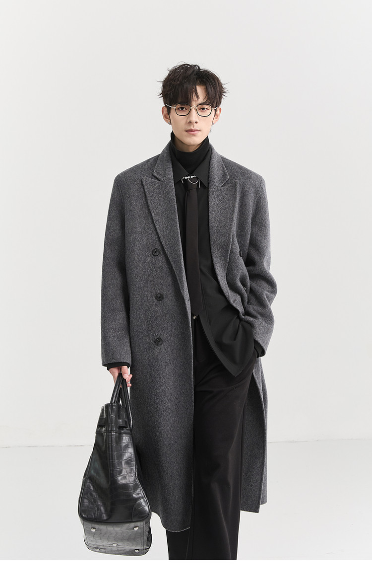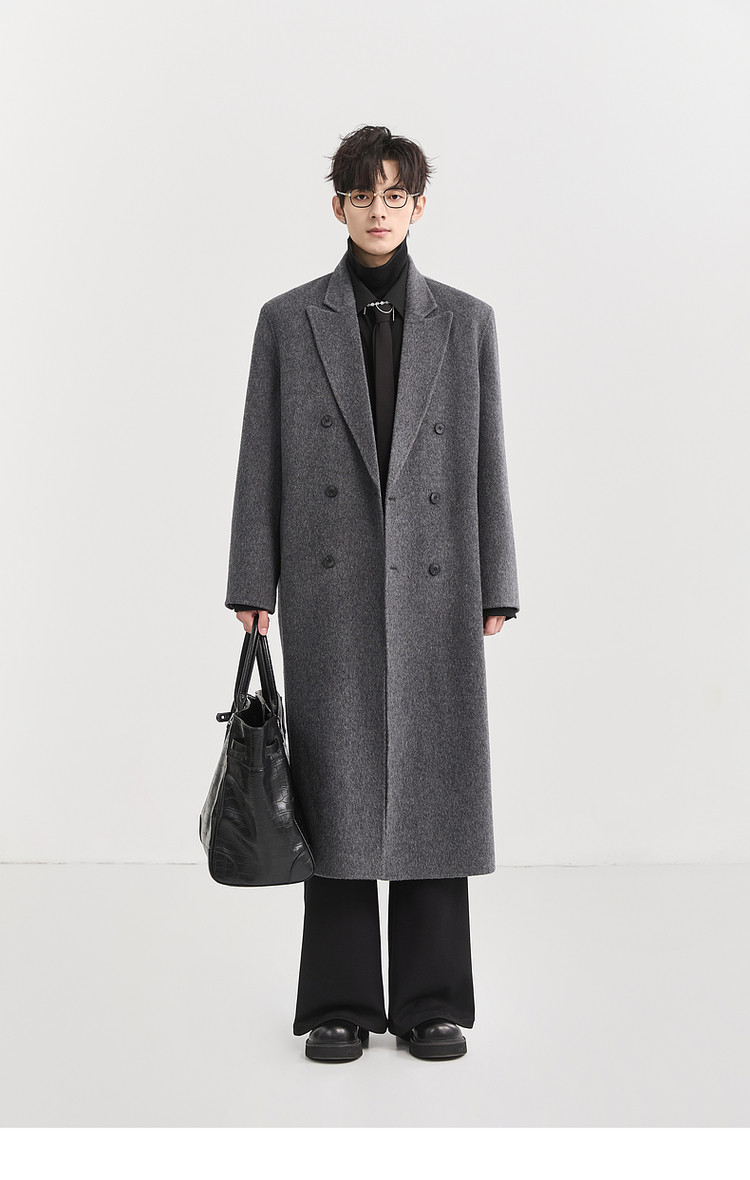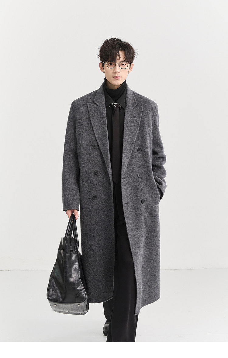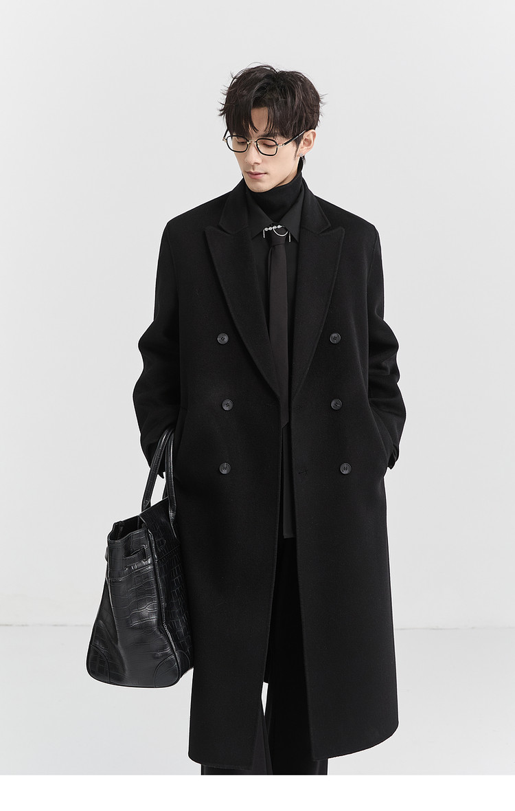 [All Wool Extra Long Style] Bjze Men's Winter High-End Fashion Over-The-Knee Double-Sided Wool Coat with Shoulder Pads