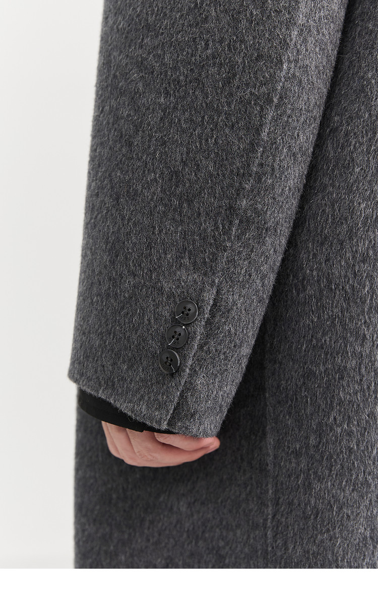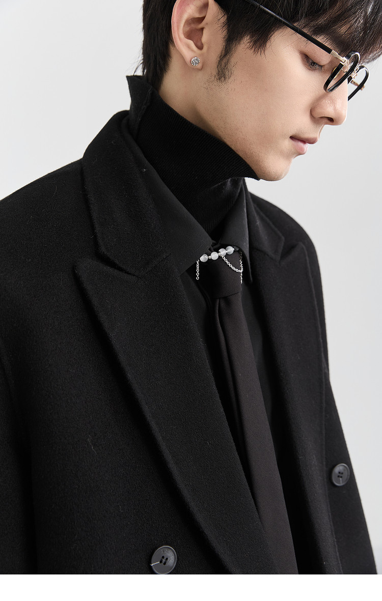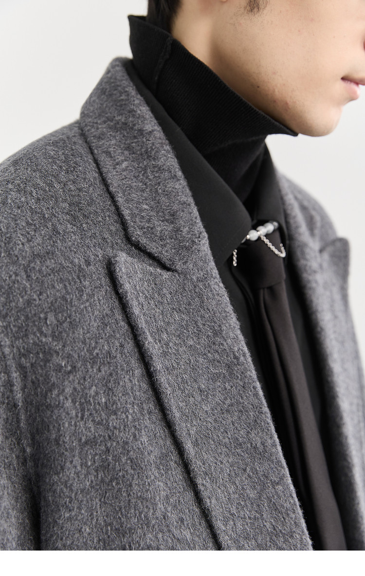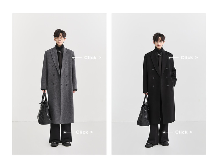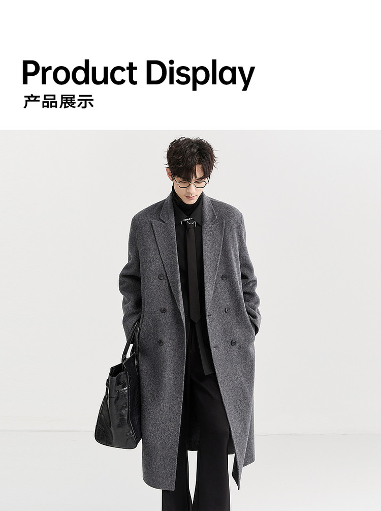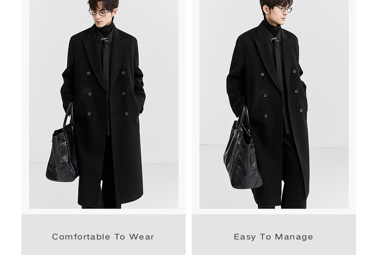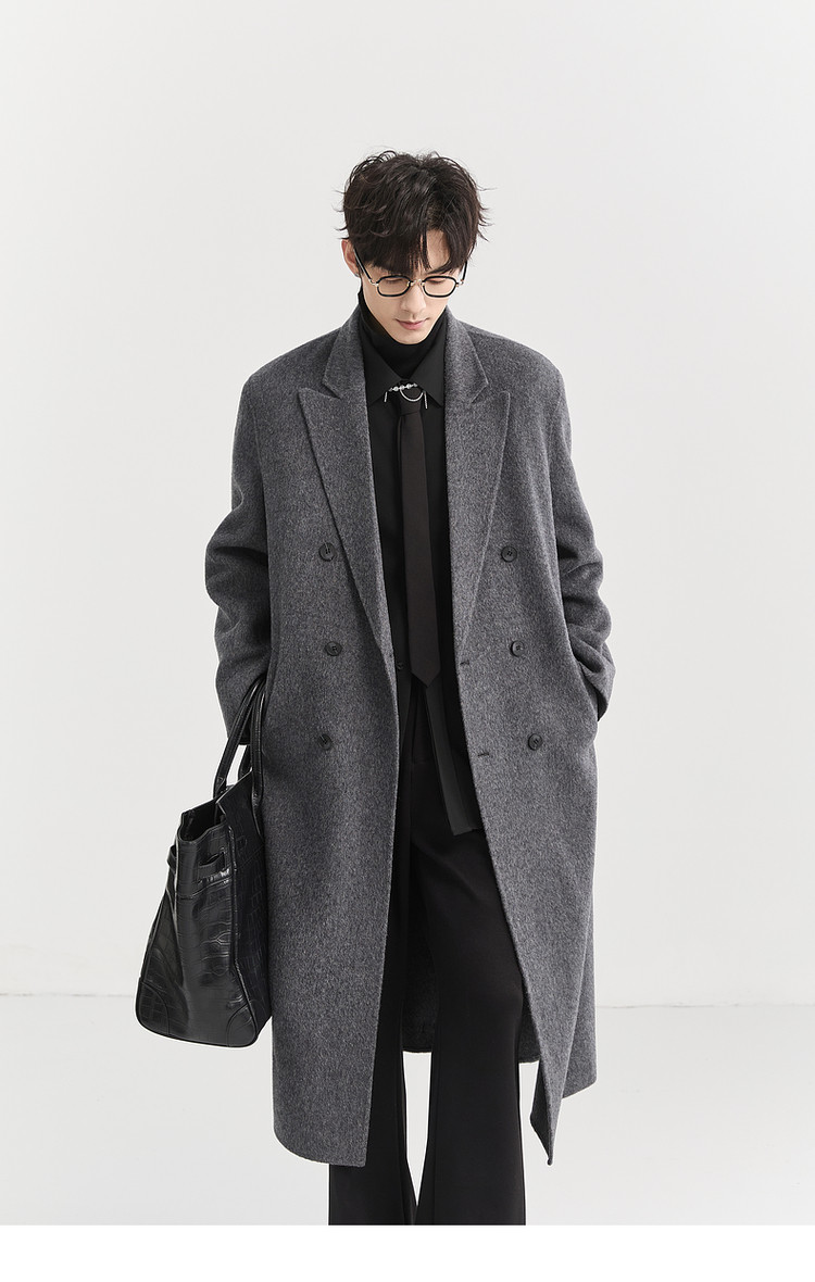 [All Wool Extra Long Style] Bjze Men's Winter High-End Fashion Over-The-Knee Double-Sided Wool Coat with Shoulder Pads
