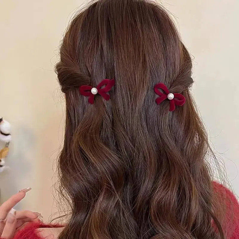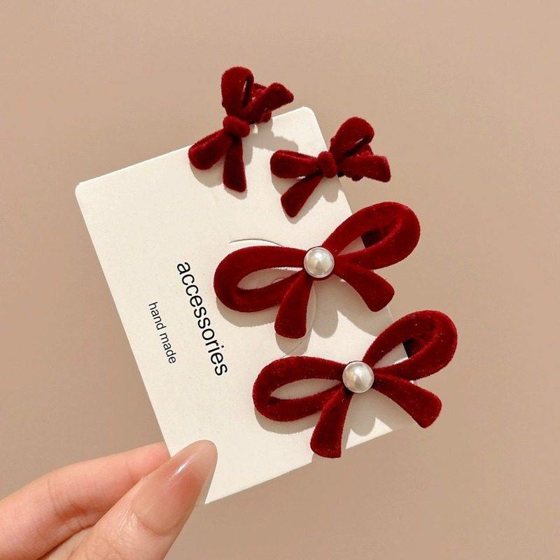 Red Hair Accessories Hairpin 2026 New High-End Hair Clip Accessory Bow Small Clip Side Bangs Hairpin Headwear