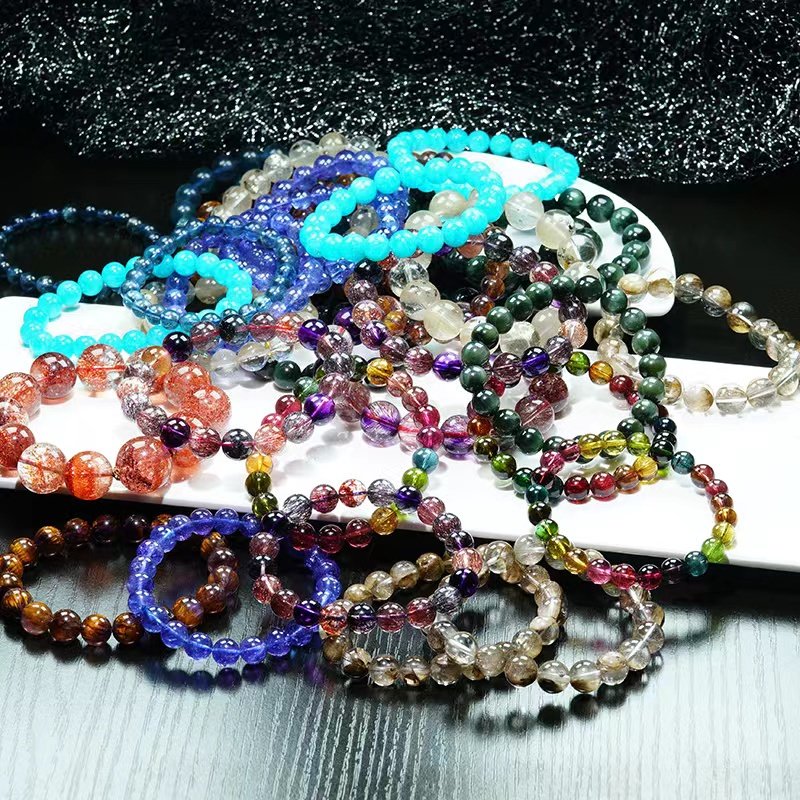 Shenghui Crystal Golden Strawberry Bracelet Black and Red Super Seven Sea Pattern Stone Jade Ghost Red Taishan Anderson Black Silver Needle Bracelet