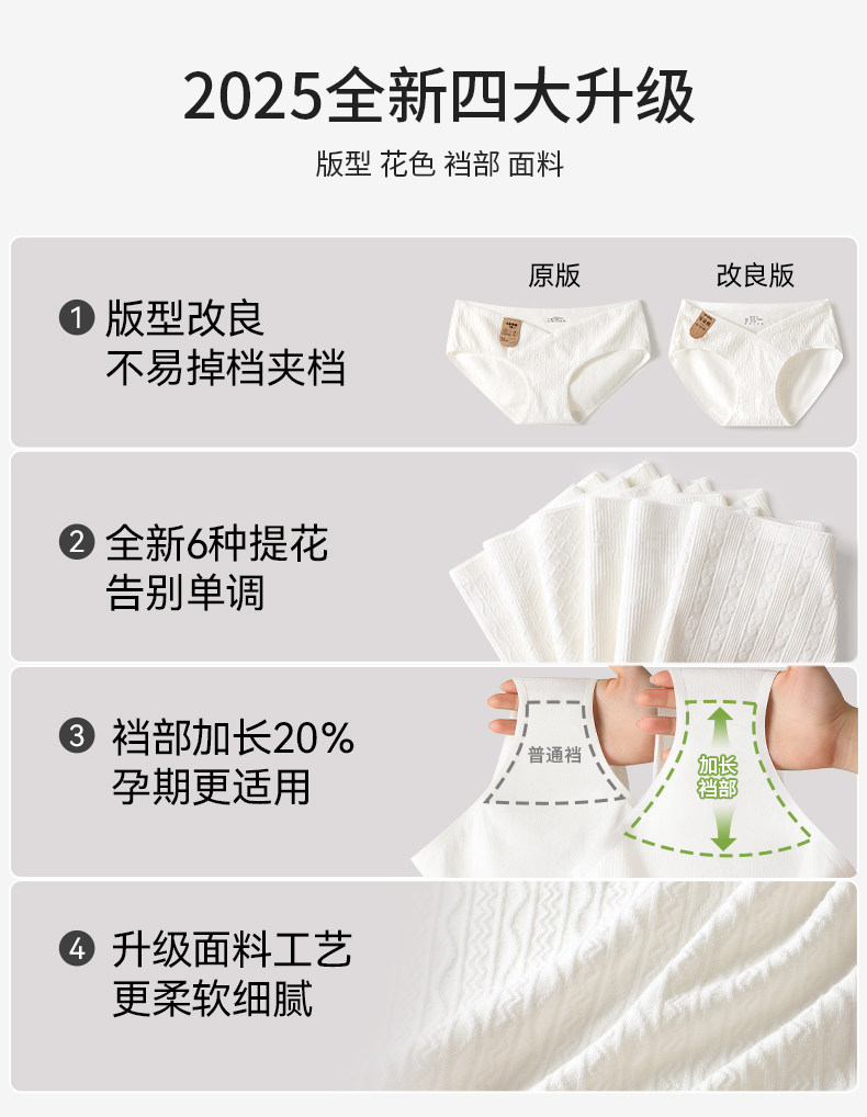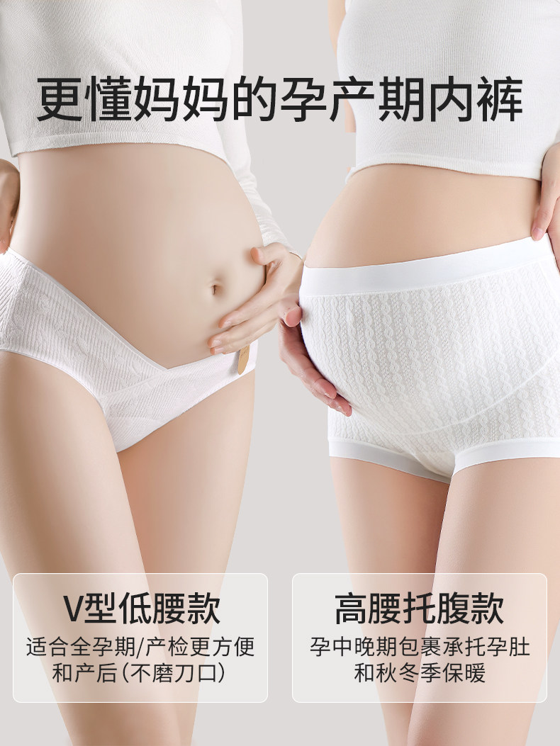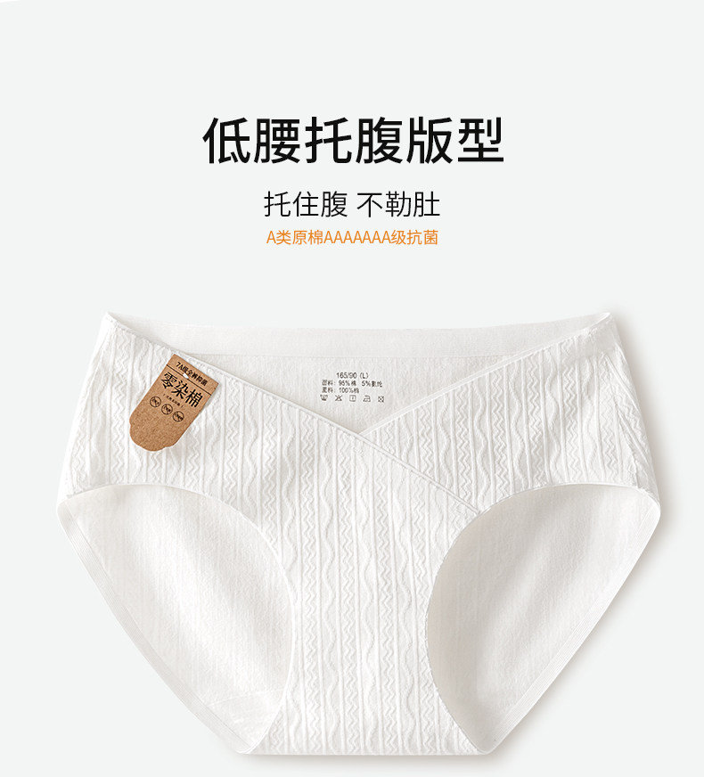 Catman Maternity Underwear, Pure Cotton, Class A, All-Cotton, Antibacterial, Extended Crotch, Specially Designed for Women during Pregnancy, Early, Mid, and Late Stages, Low-Waist