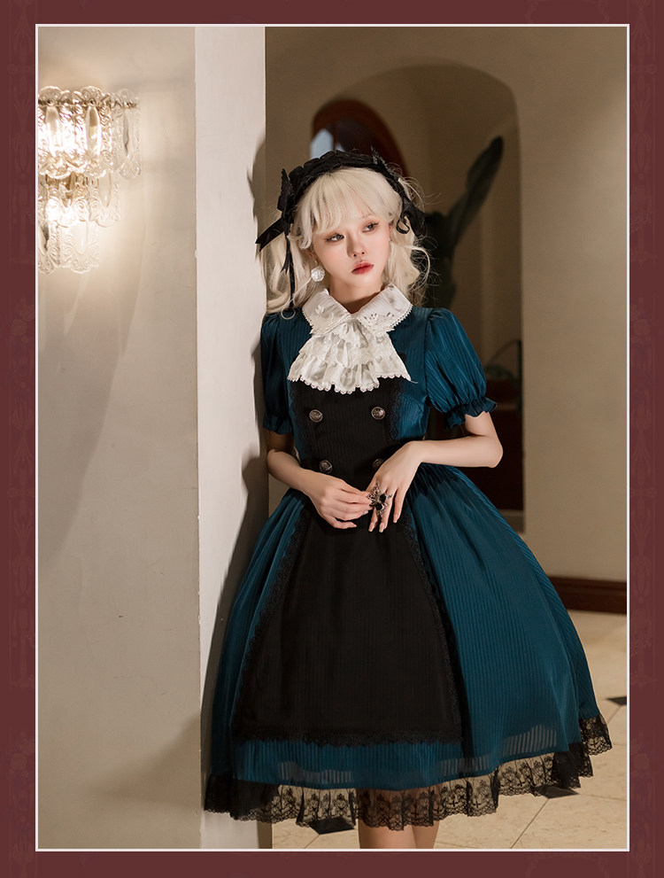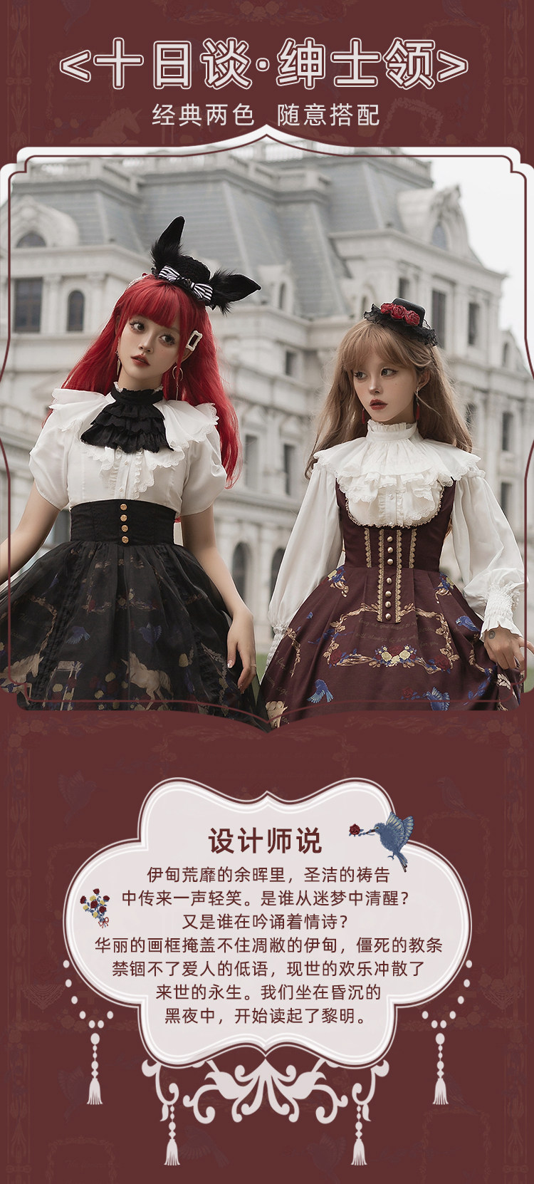 【Ten Days Talk】Withpuji Original Design Gentleman's Collar Shirt Bib Scarf Lolita Style Two-Tone Matching