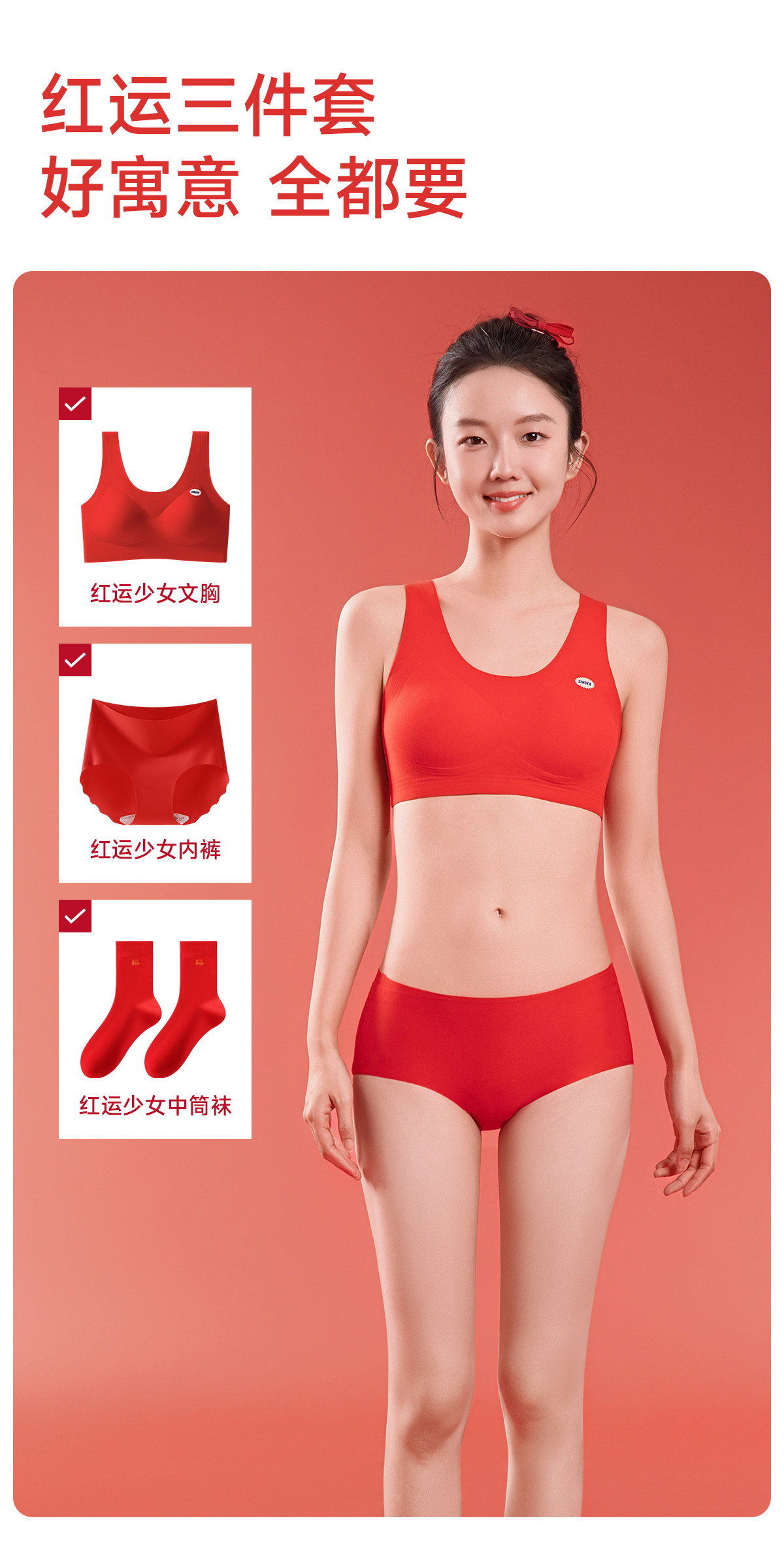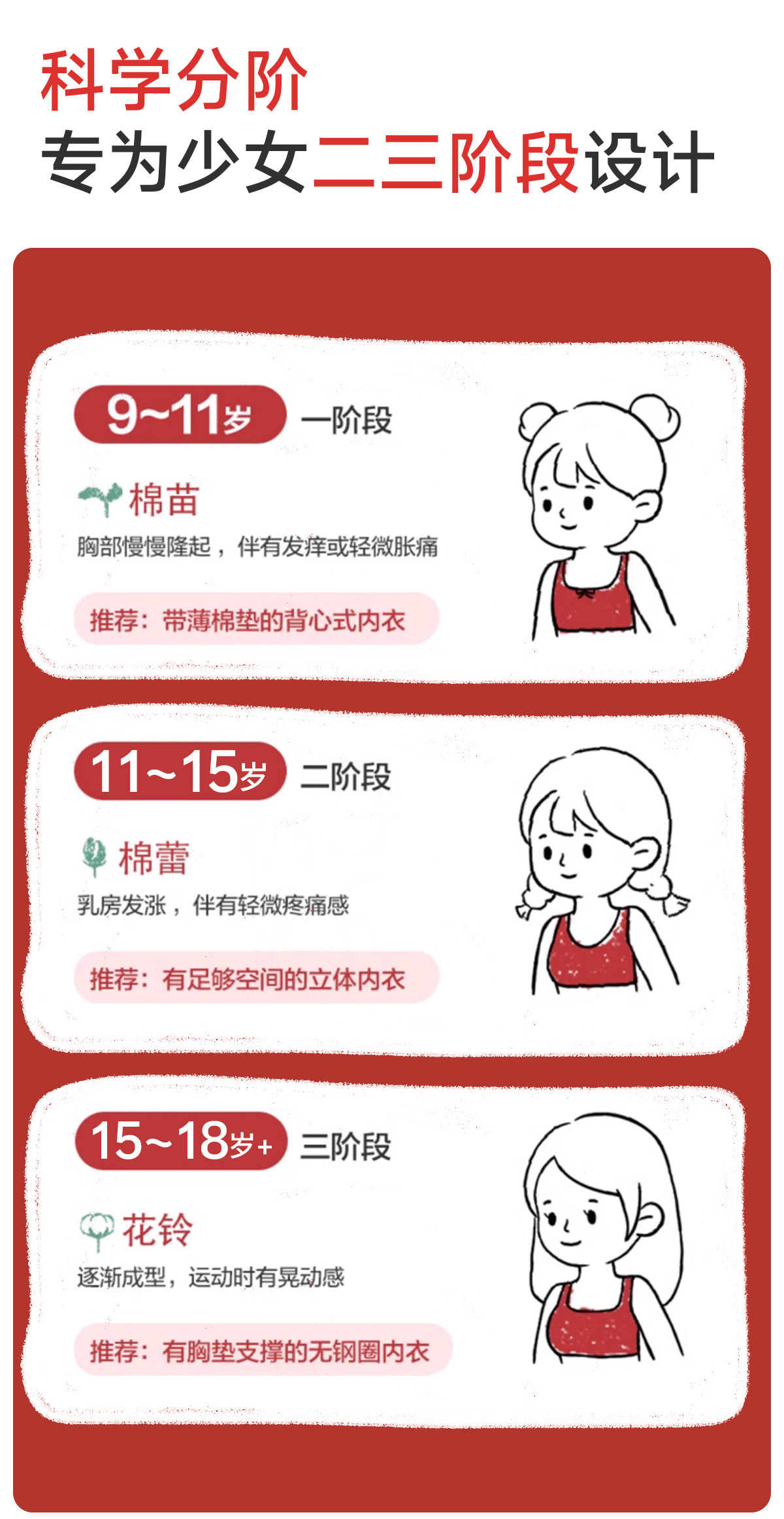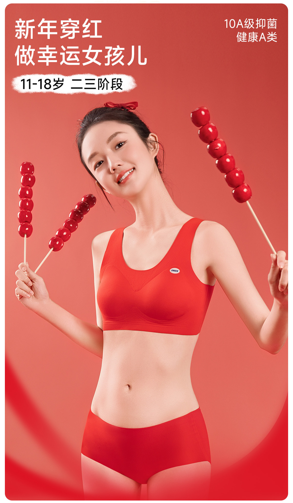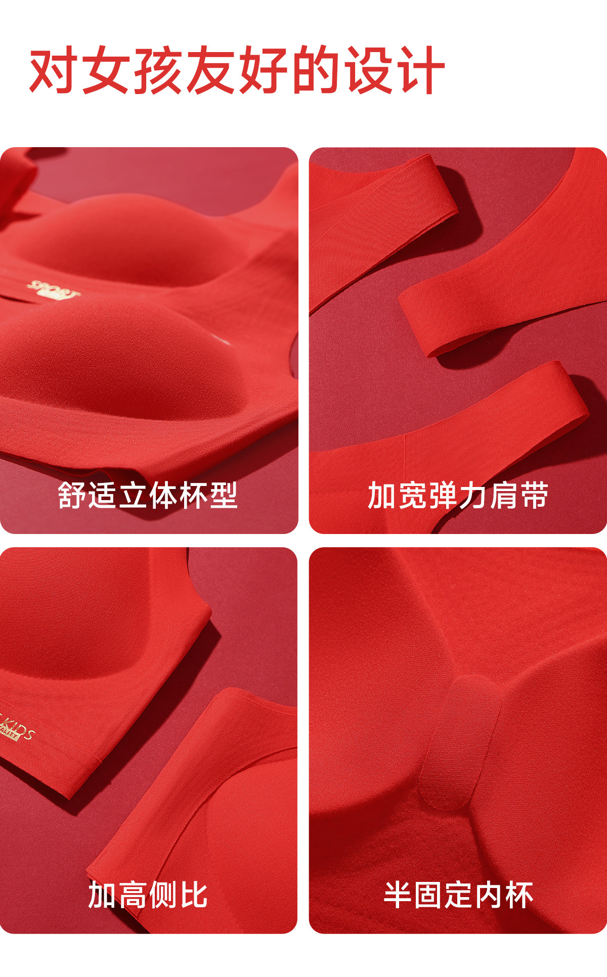 Tingmei's Zodiac Year Underwear Set for Female Students, Middle and High School Girls, Development Period Vest, Girl's Bra, Red Panties