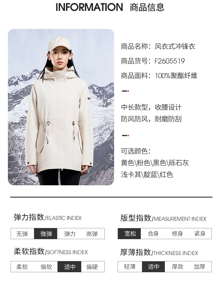 Scaler Outdoor Jacket for Women, New Windproof and Waterproof Mid-Length Hiking and Mountaineering Jacket, Windbreaker Coat