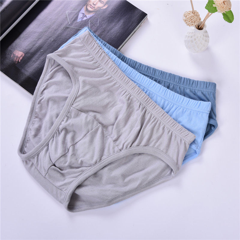 Men's Solid Color Underwear for Middle-Aged and Elderly Men, Cotton Loose-Fitting Antibacterial High-Waisted Briefs for Seniors 0922