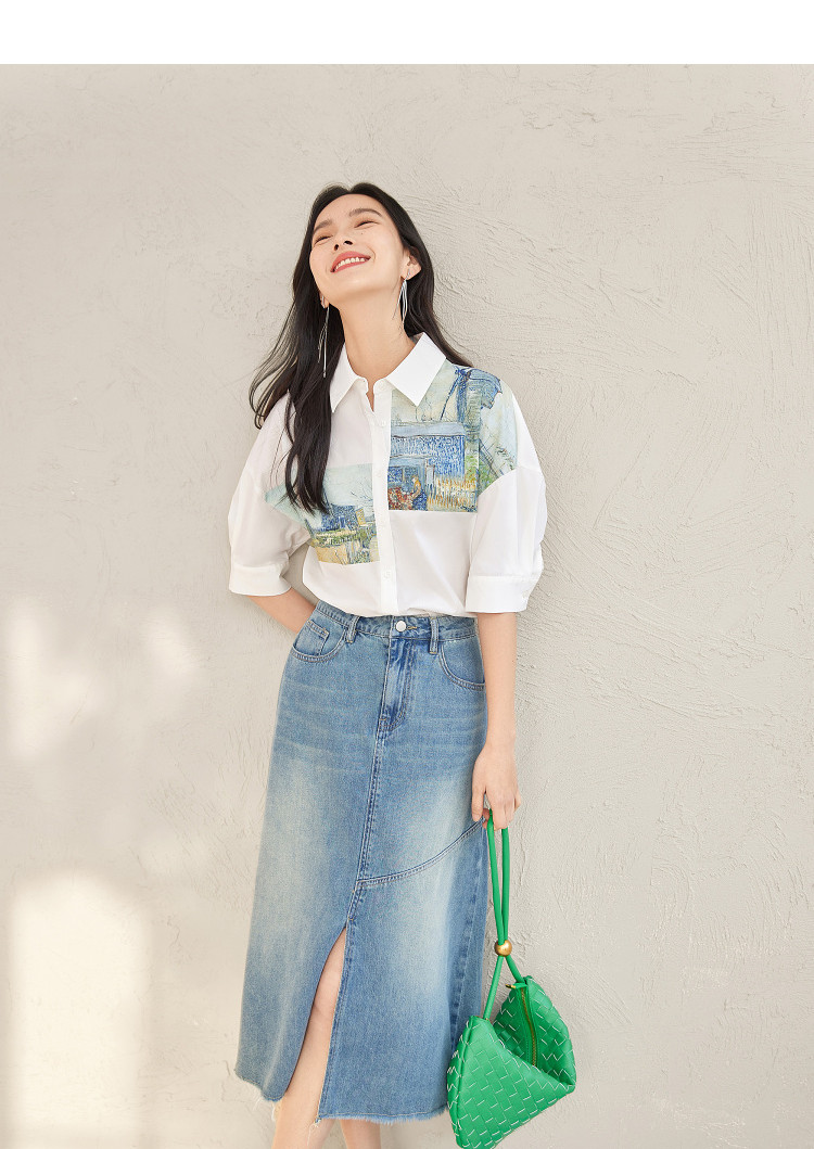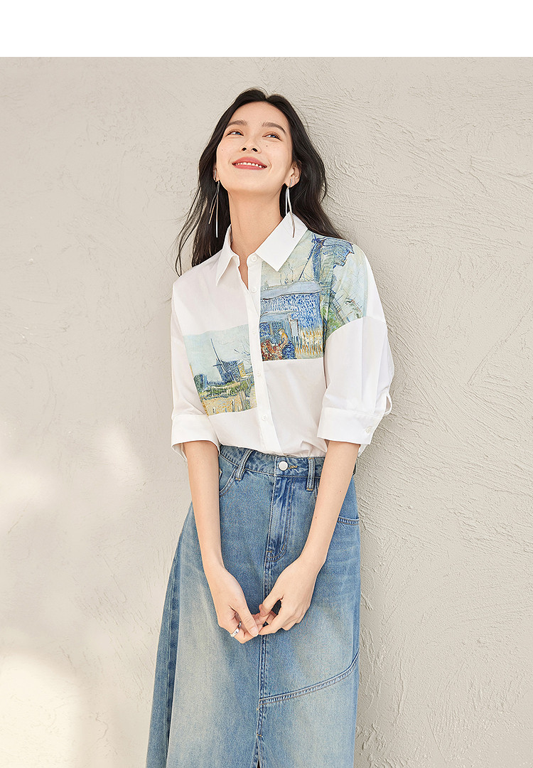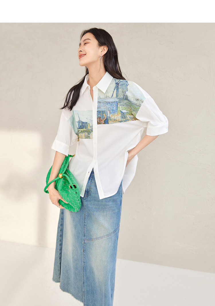 Vincent Van Gogh Collaboration Dialogue Print Shirt for Women 2026 Summer New Design Short-Sleeve Top