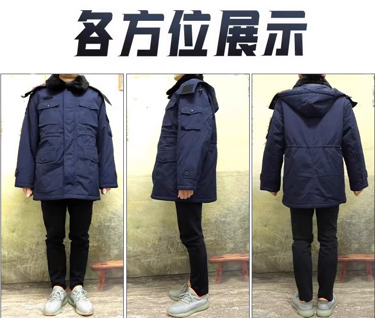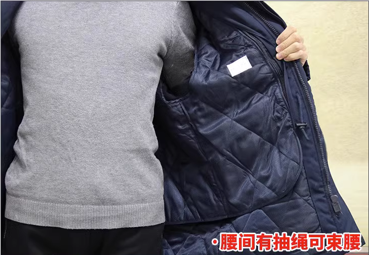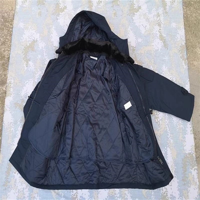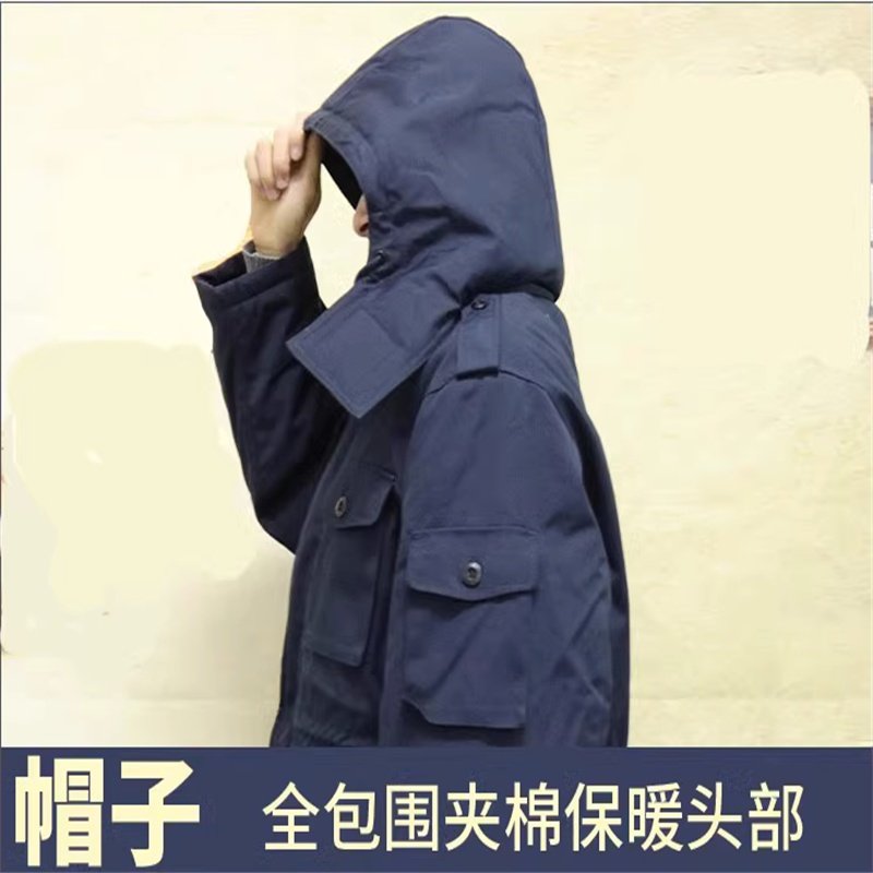Navy Blue Men's Winter Training Coat with Inner Cotton Lining, Cold-Proof Cotton Coat, Thickened for Warmth, Detachable Fur Collar, Anti-Static