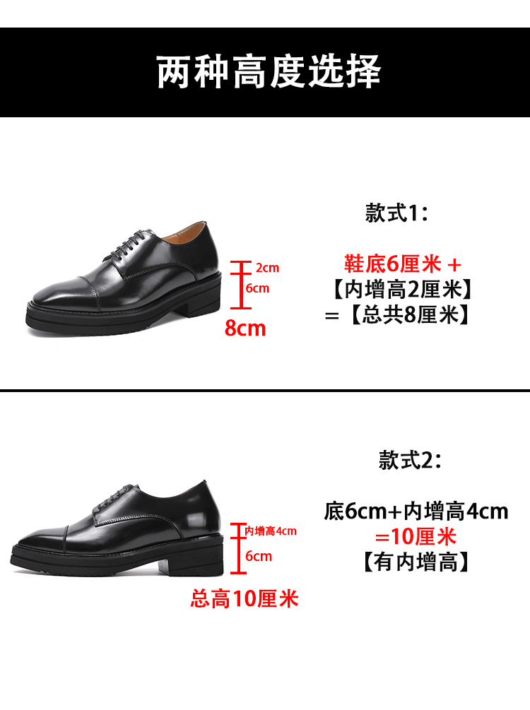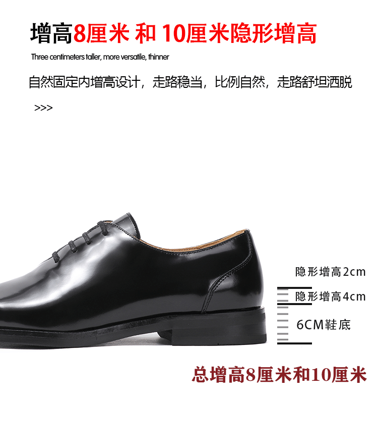 911R Three-Strap Leather Shoes for Men with Internal Height Increase 10cm Business Formal Casual Groom Wedding Shoes Thick Sole 8cm