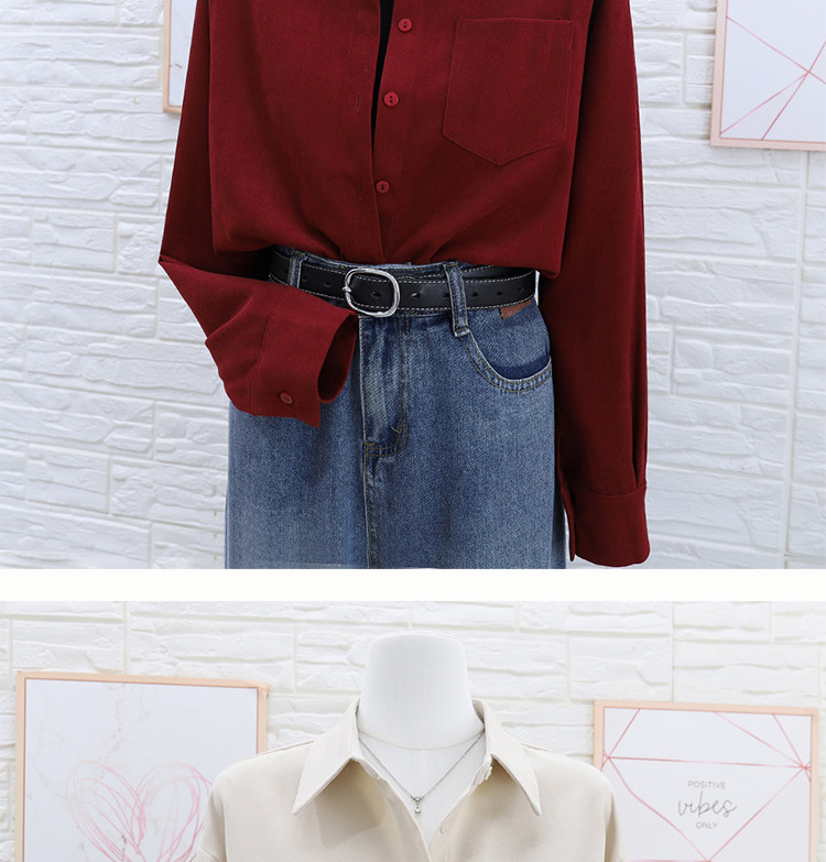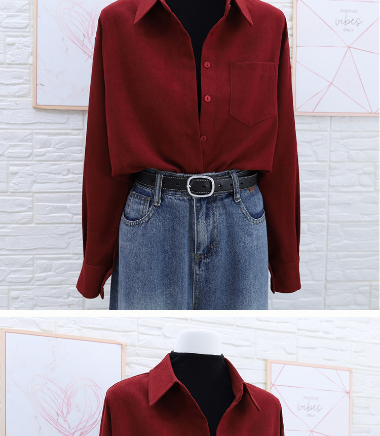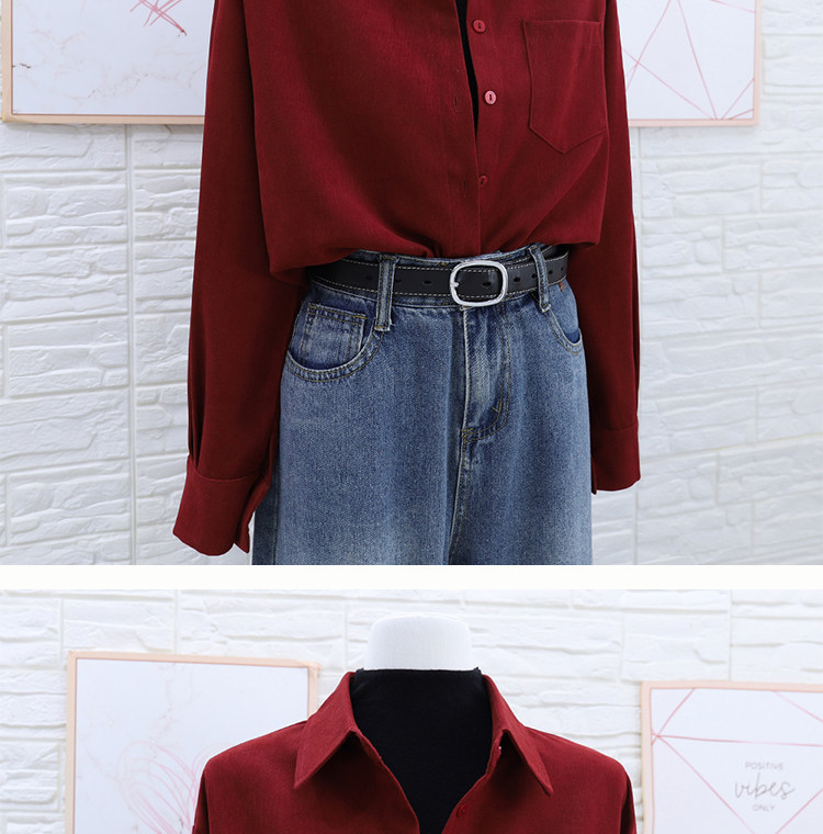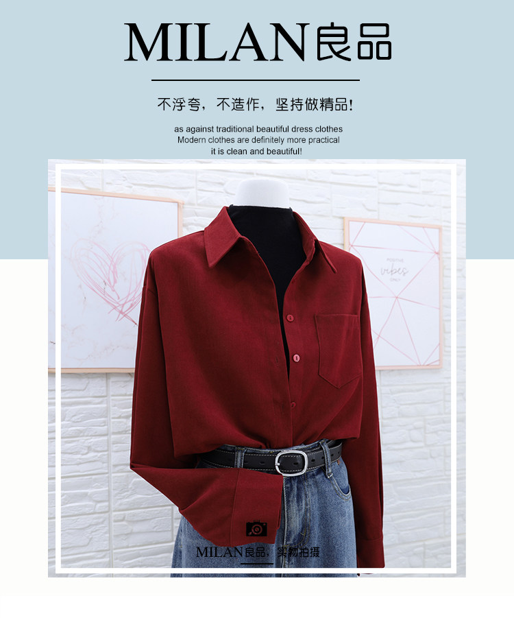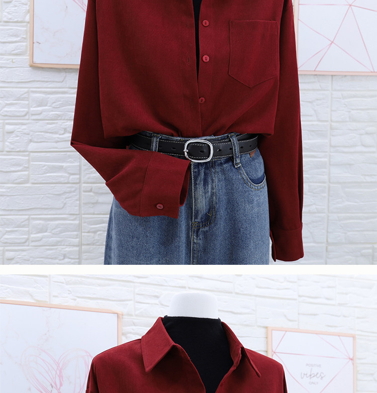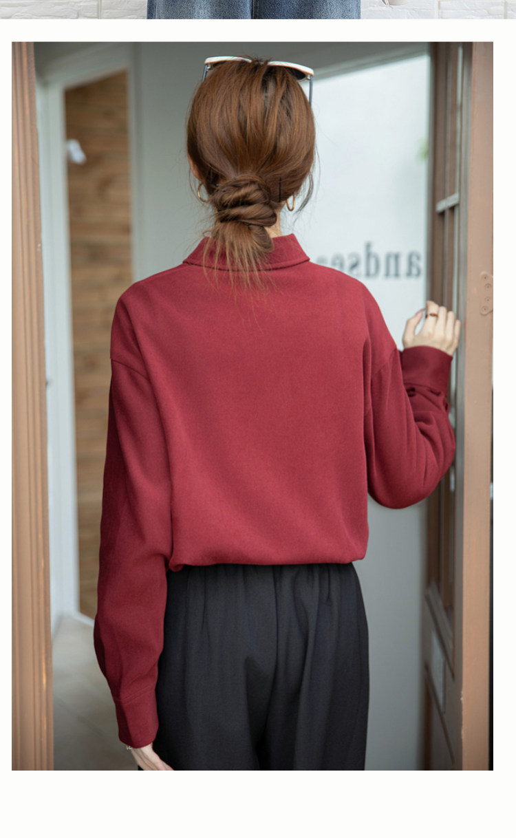 Anchor Red Brushed Shirt for Women, Spring Style, Suitable for Layering, Inner Wear Top, 2026 New Model, Burgundy Shirt for Women