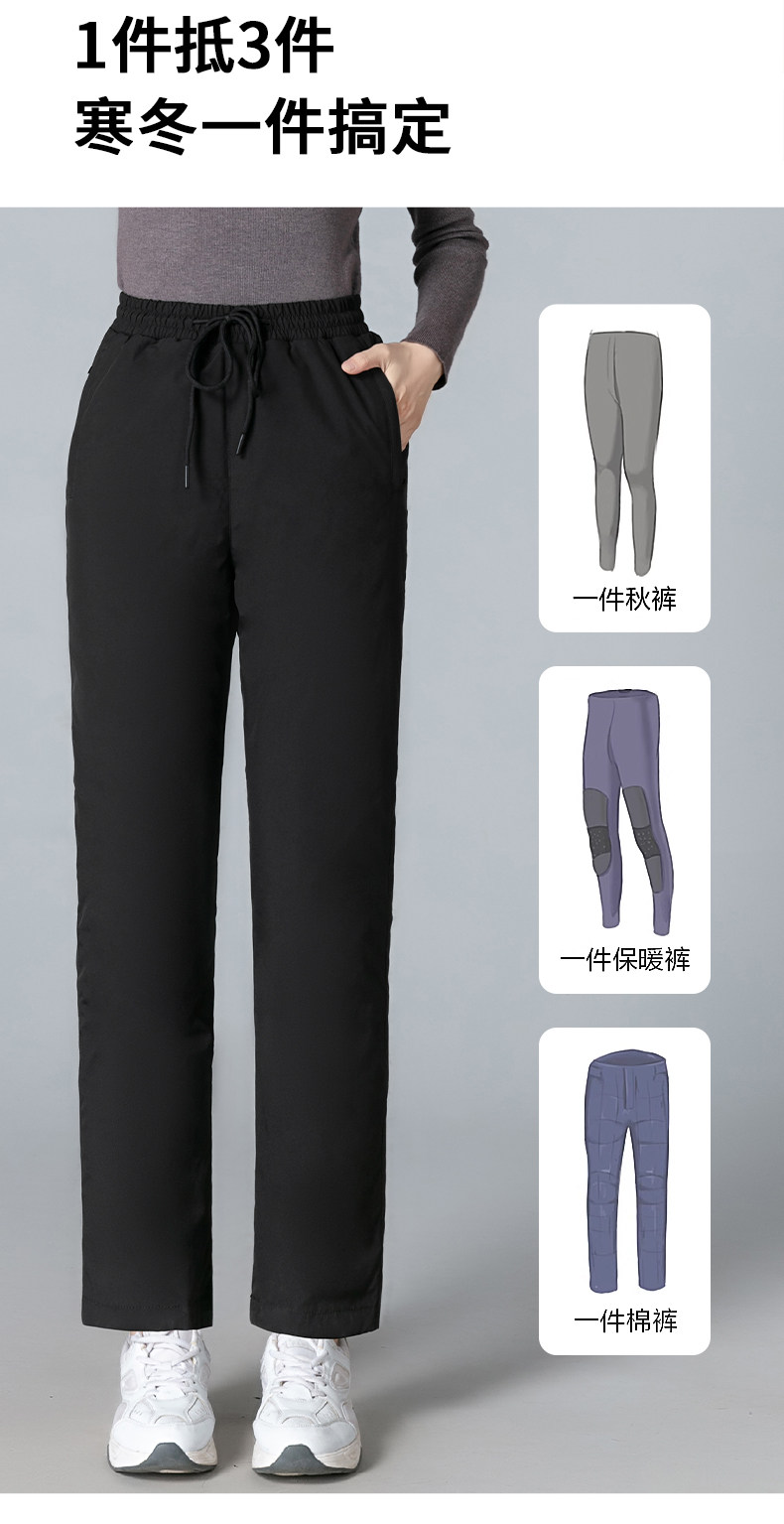Yalu down Pants for Women, High-Waisted, Thickened, Straight-Leg, Loose-Fitting, Warm, Plus-Size Winter Cotton Pants for Middle-Aged and Elderly Women