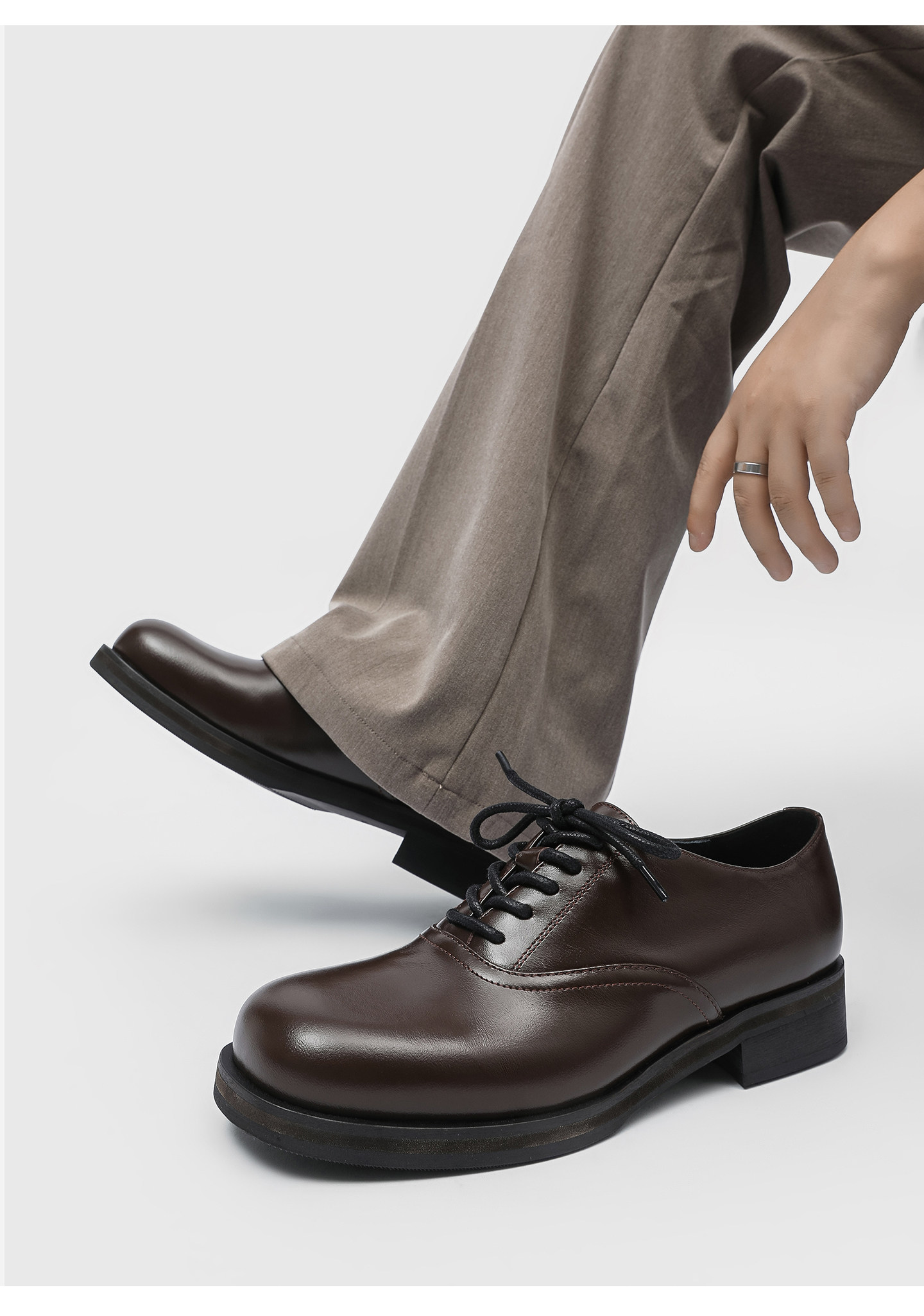 Puchen2025 New Brown Square-Toe Leather Shoes, Old Money Style, Men's and Women's Casual Leather Shoes, Retro Commuter Derby Shoes