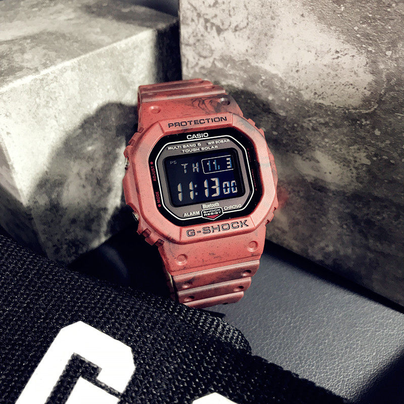 Casio Casio Watch for Men G-Shock Solar-Powered Bluetooth Radio-Controlled Waterproof Blood Screen Square Gw-B5600Ar