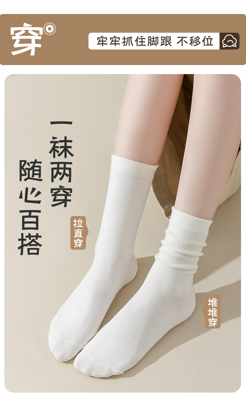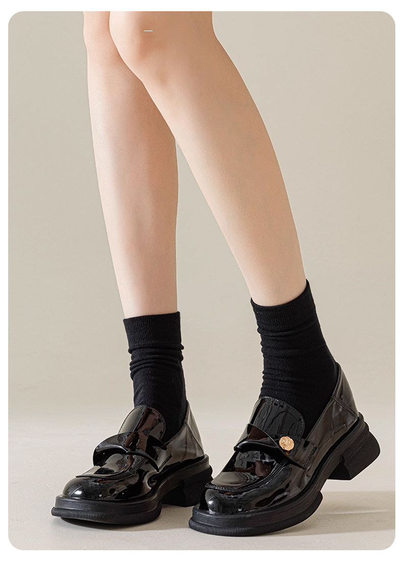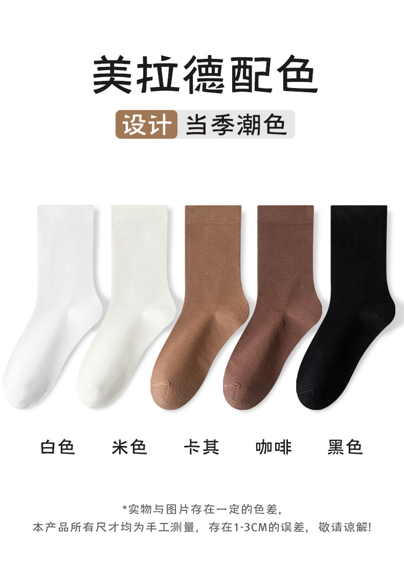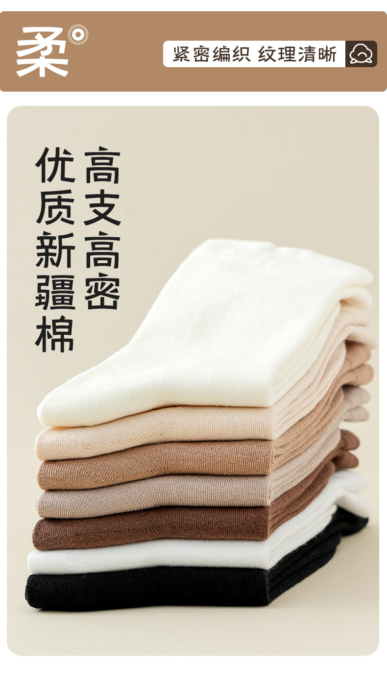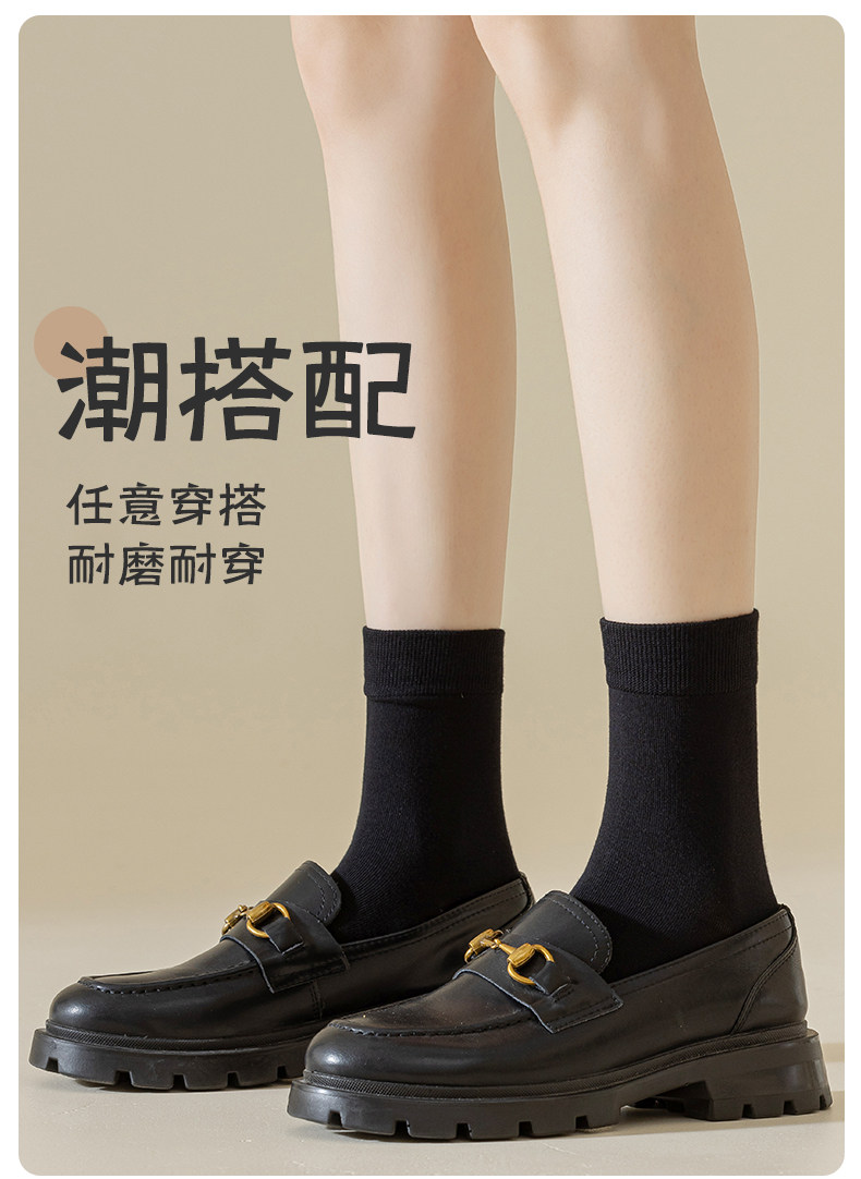 Black Mid-Calf Socks for Women, Pure Cotton, Winter Maternity Socks, Antibacterial, Seamless, Slouchy Long Socks, Paired with Loafers