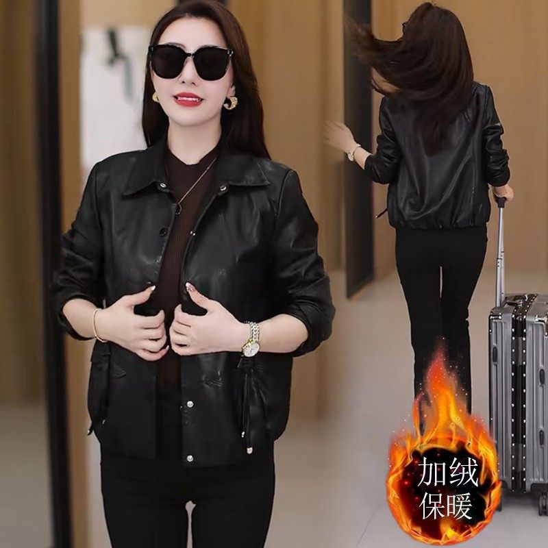 Fleece-Lined and Thickened Leather Jacket for Women, New Winter Fashion, Versatile, Slimming Pu Leather Jacket, Leather Cotton Coat, Warm Top