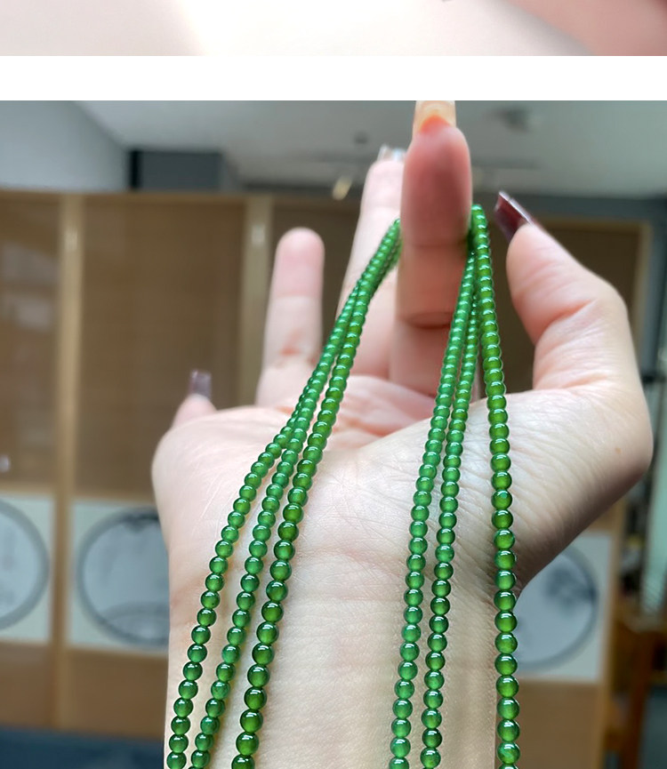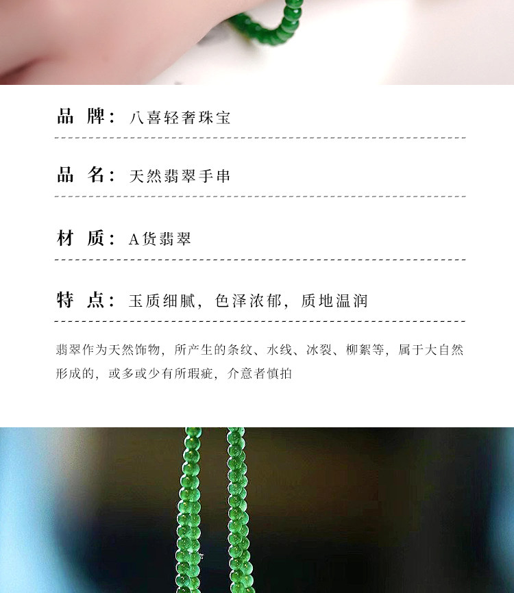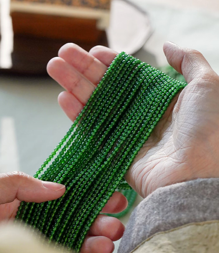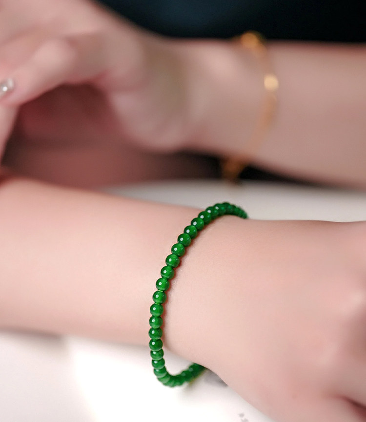 Natural A-Grade High Ice Jade Bracelet, Spicy Sun Green, Full Green, High-End Jade, Small Bead Chain, Women's Collectible Gift