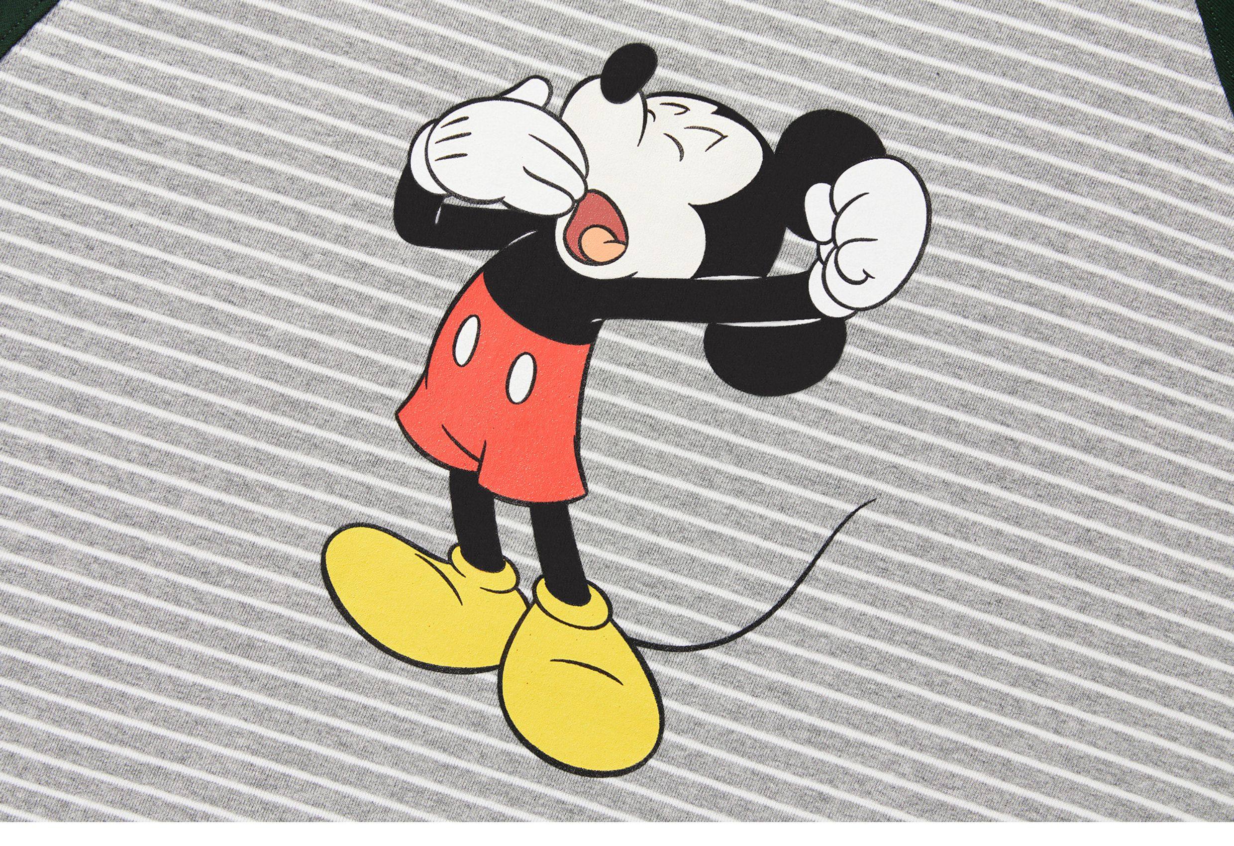 Mondaysleepingclub&Disney Collaboration Series "Sleepy Mickey" Striped Raglan Long-Sleeve T-Shirt