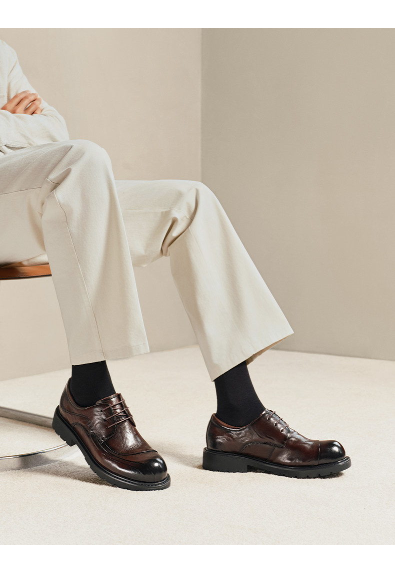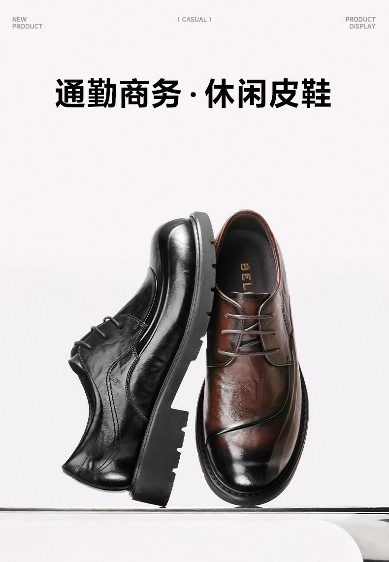 Zhang Linghe's Same Style Belle Men's Casual Business Leather Shoes Men's 26 New Cowhide Thick-Soled Derby Commuter Shoes A2274
