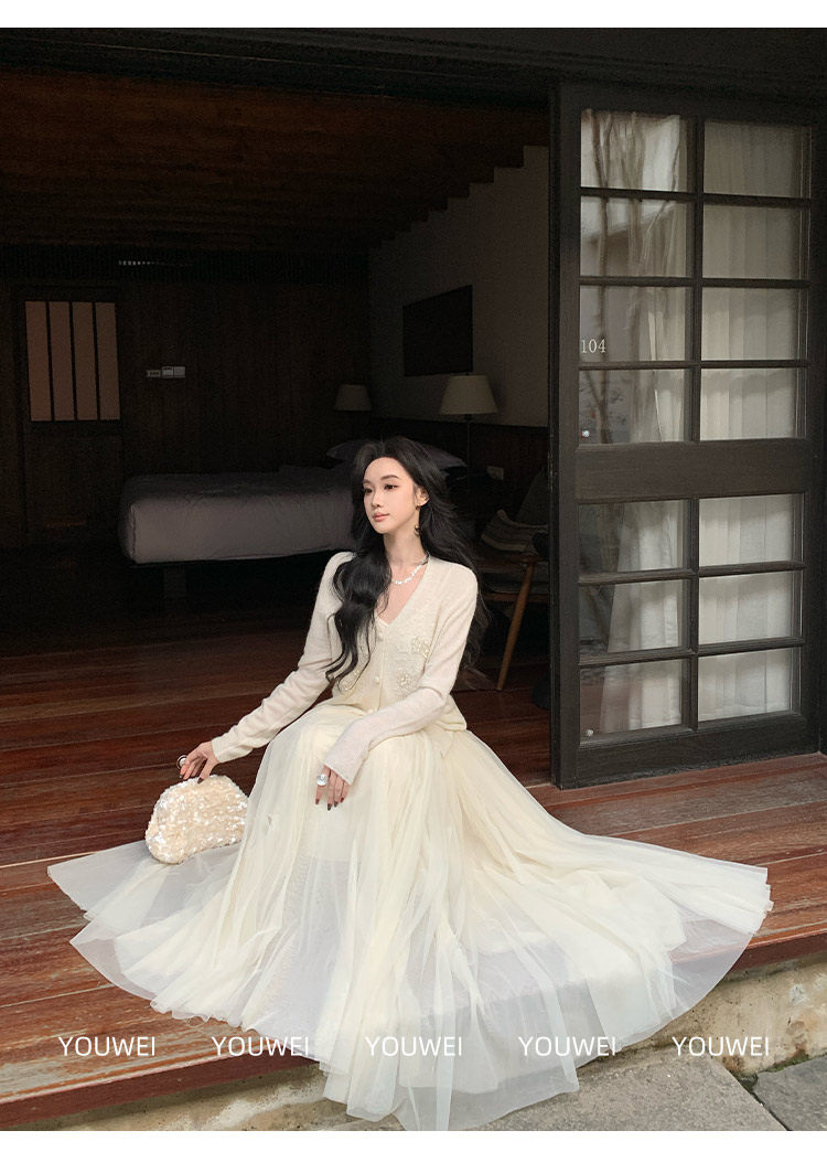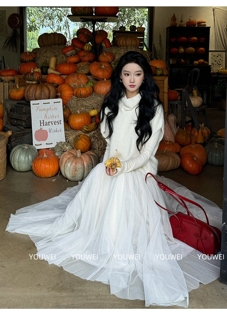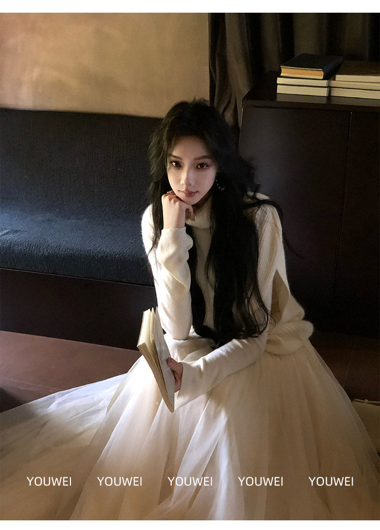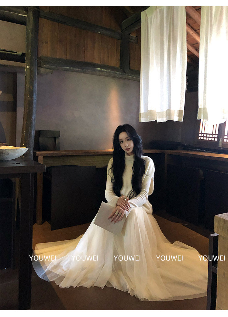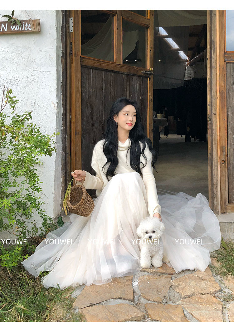 Youwei【Moonlight Melody】Tulle Skirt 2025 New Style Women's Autumn and Winter Long Mesh Skirt