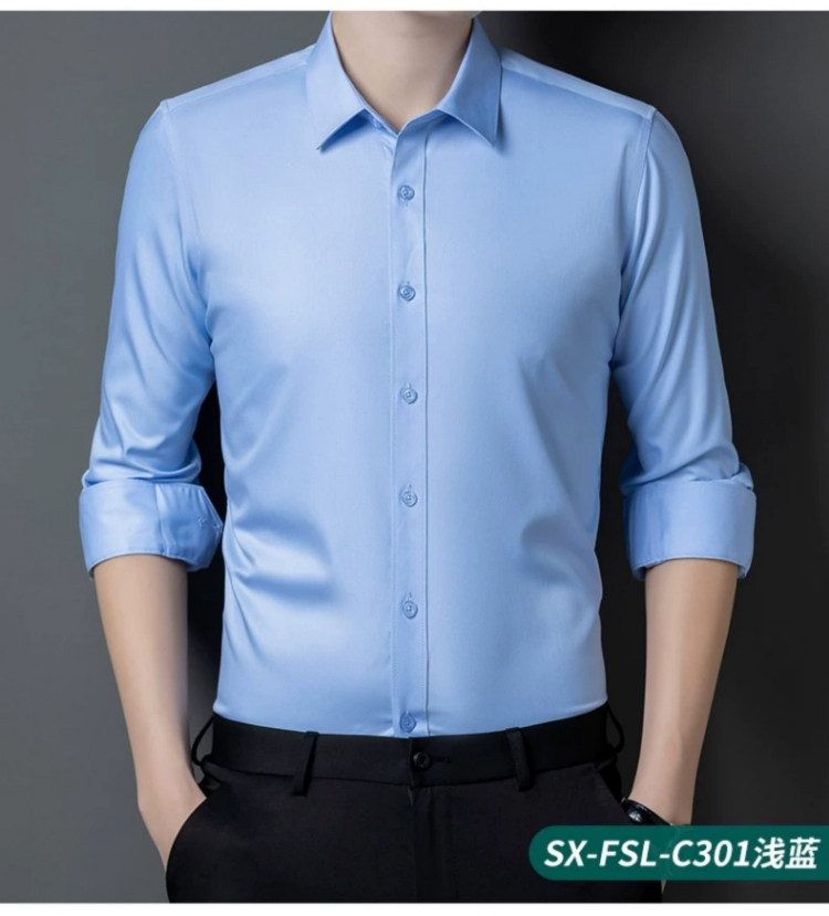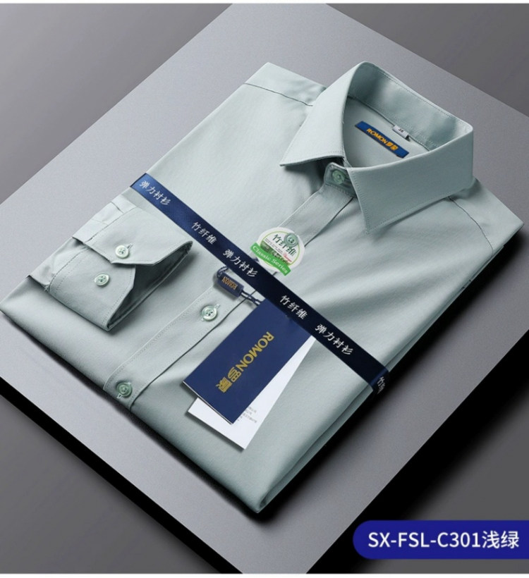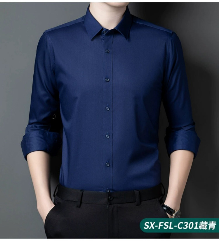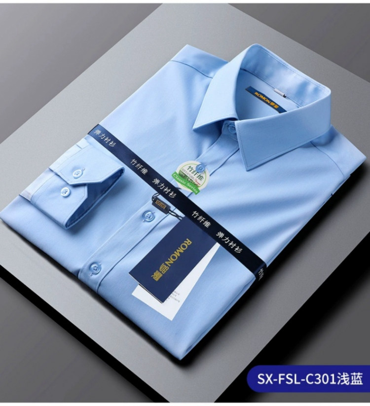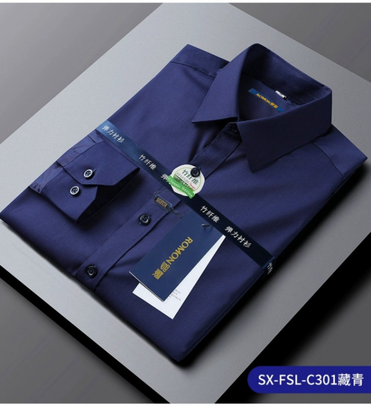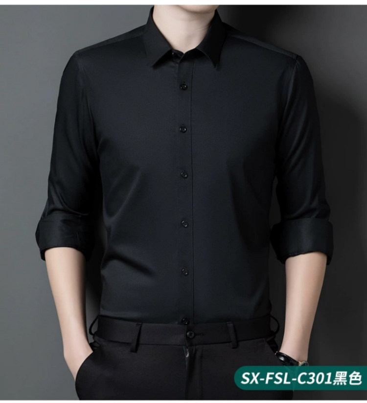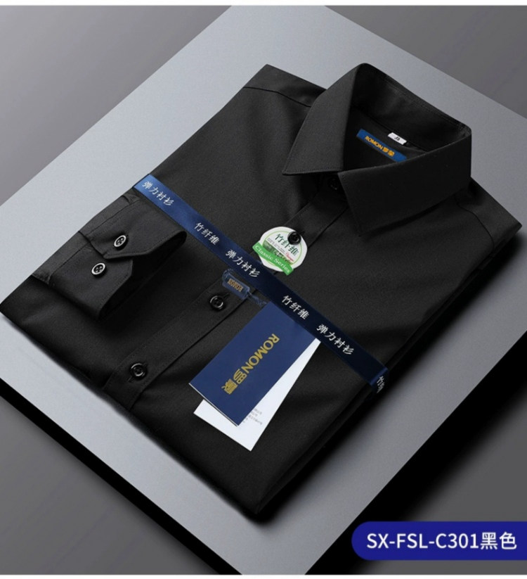 Romon Black Long-Sleeved Shirt for Men 2025 Autumn and Winter High-End Bamboo Fiber Non-Iron Workwear Suit Fleece-Lined Shirt