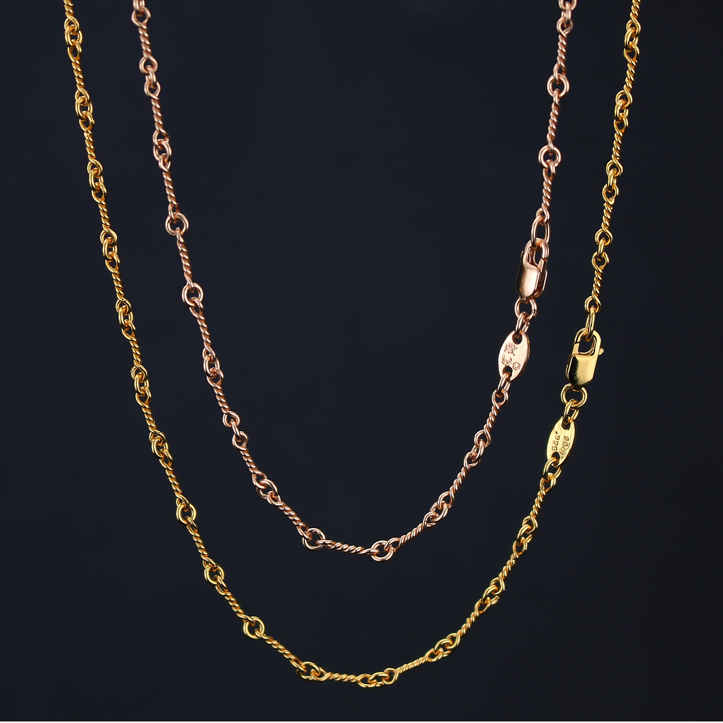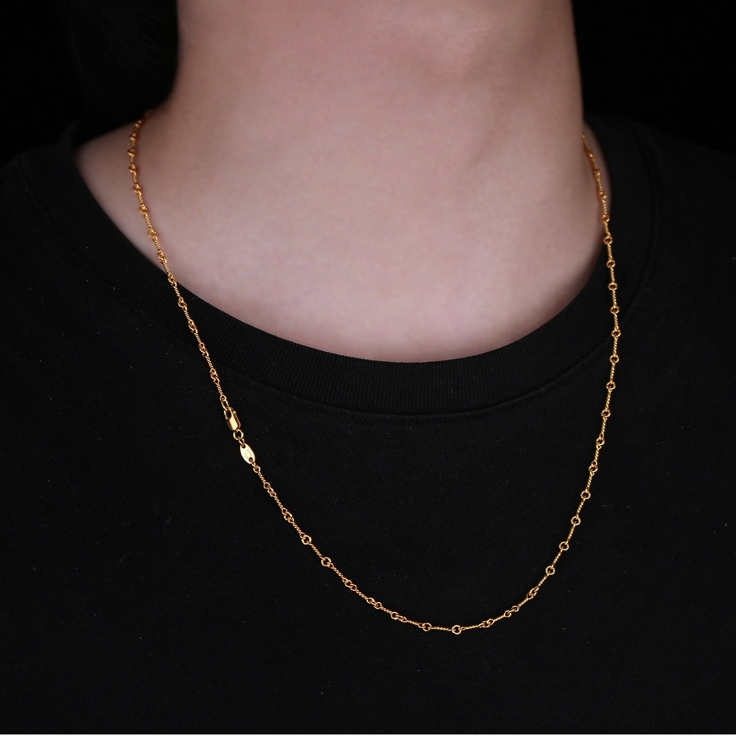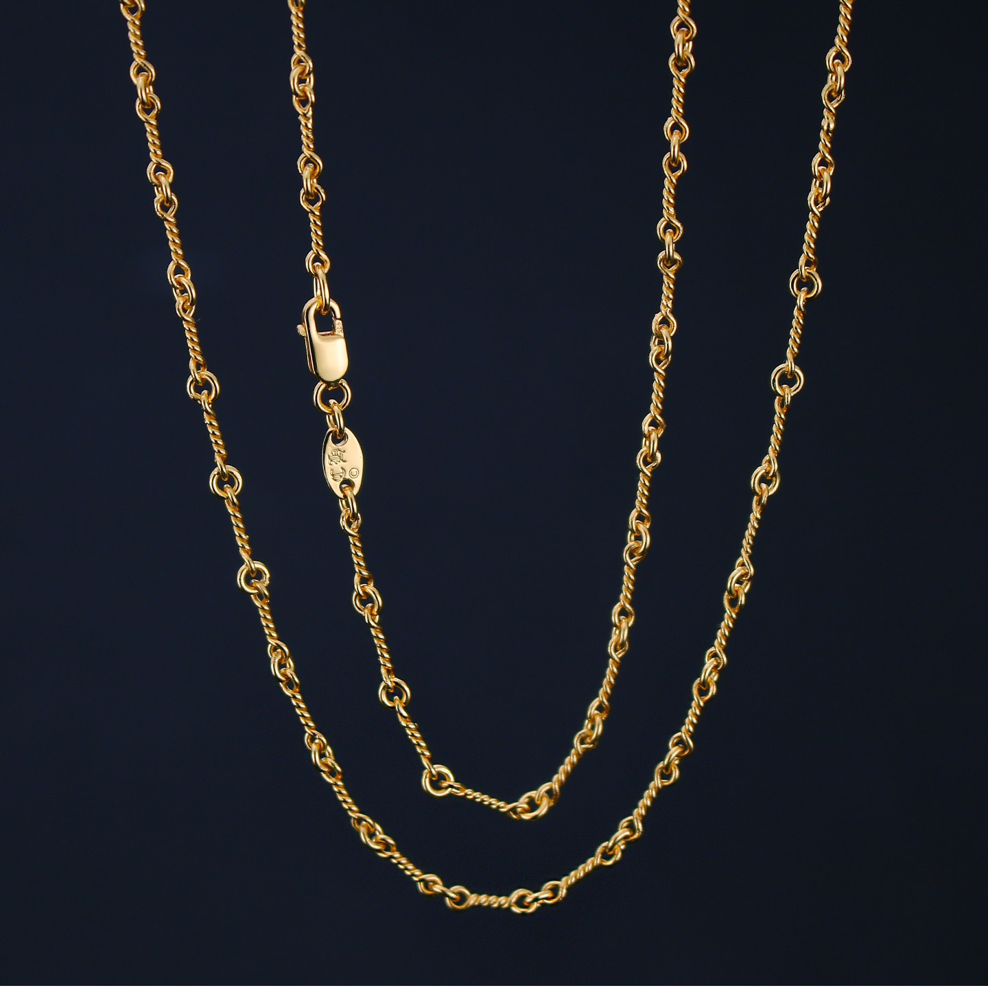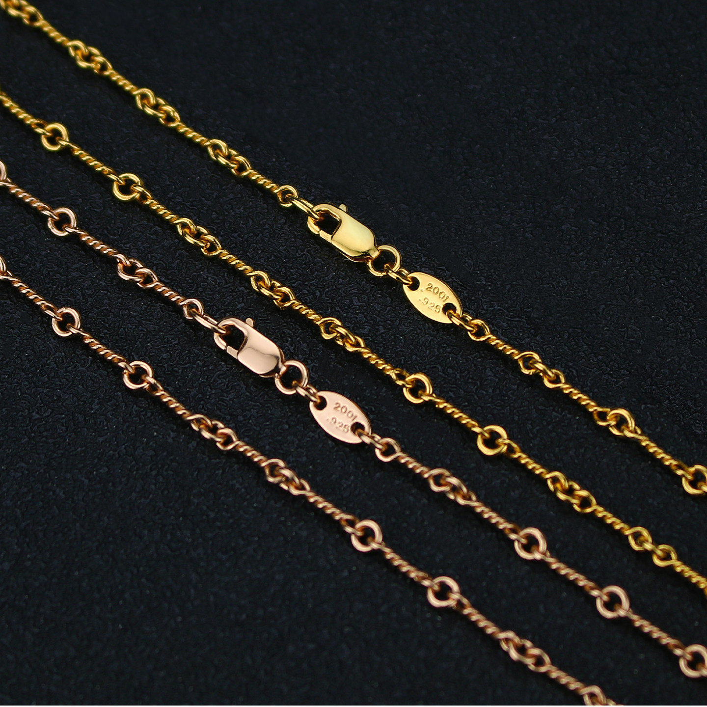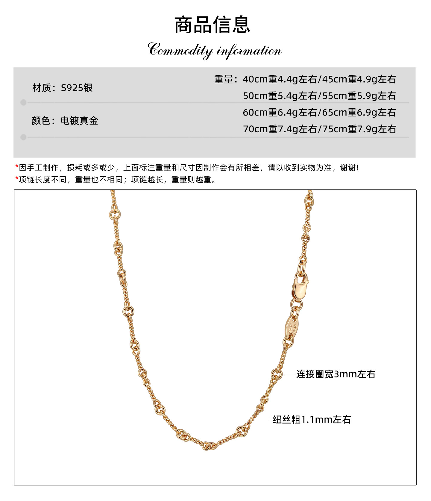 925 Sterling Silver Plated with 22K Gold American Style Necklace Twist Chain Bamboo Link Chain Plain Chain Unisex Fine Clavicle Chain Long Style Without Pendant