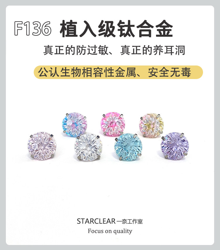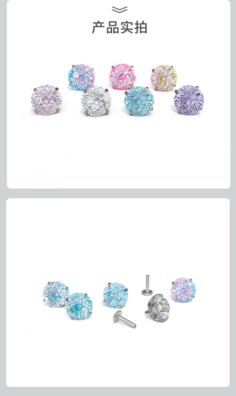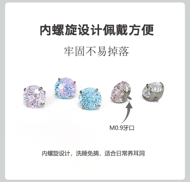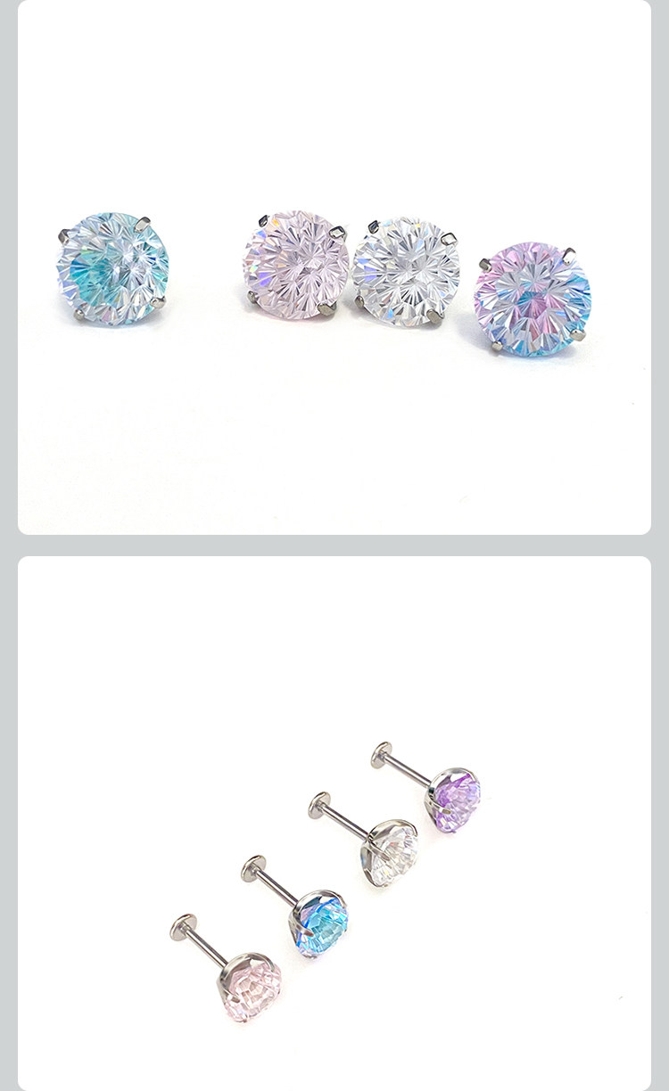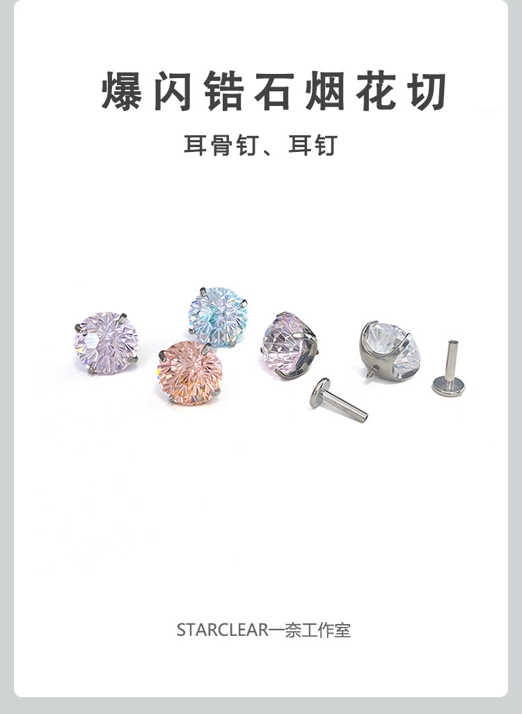 F136 Medical Titanium Alloy Sparkling Zircon Fireworks Cut Earrings with Internal Spiral, Hypoallergenic, Ear Piercing Care, Cochlear Ear Bone Studs