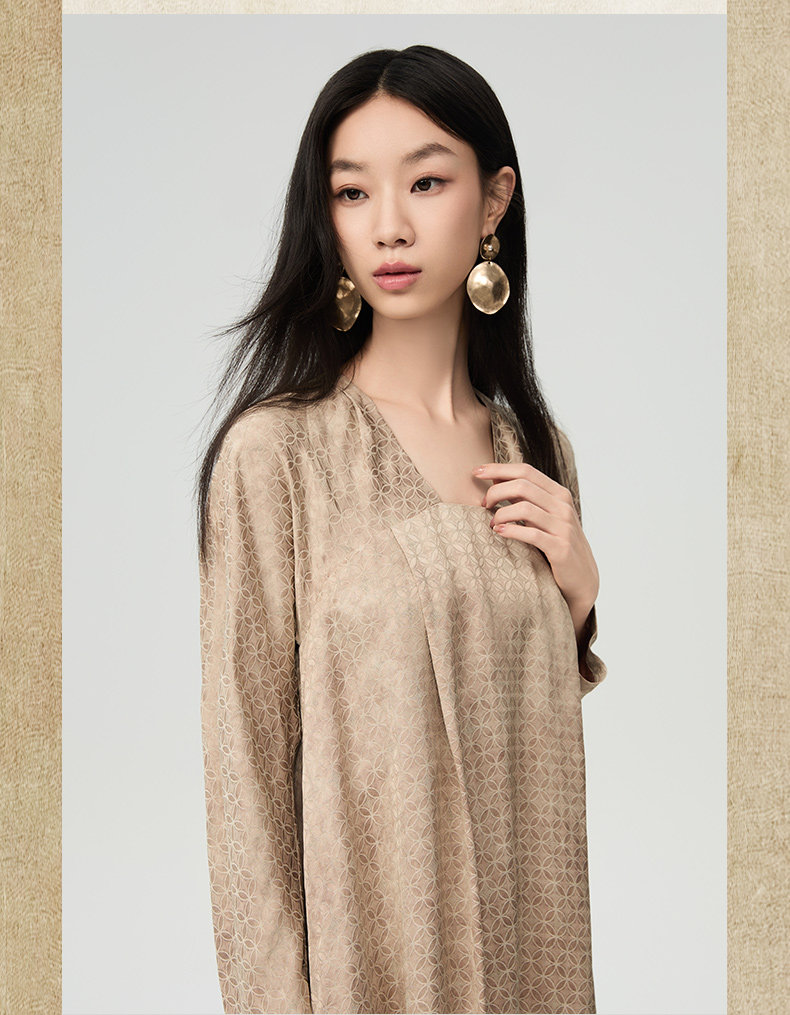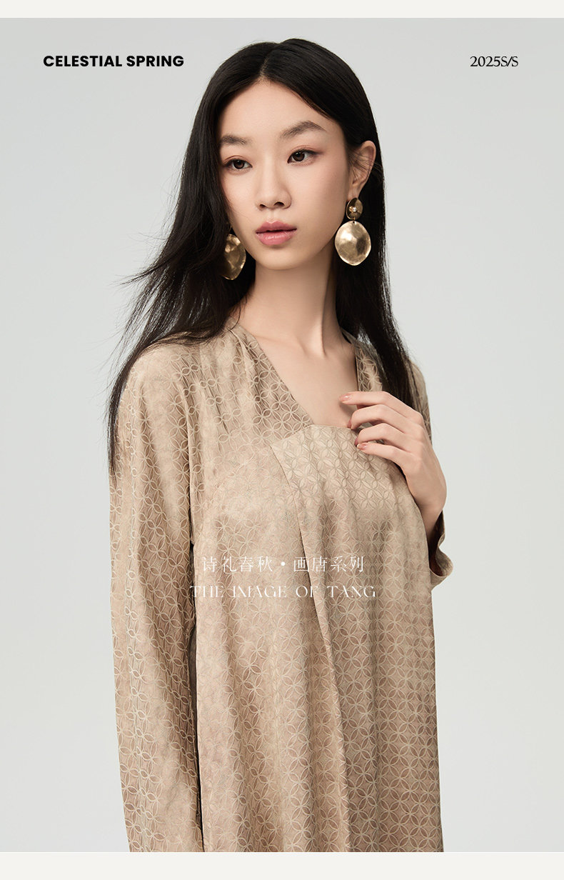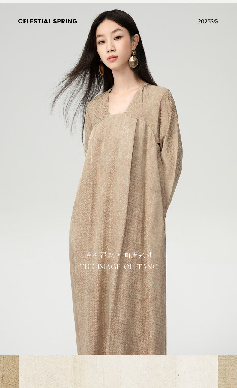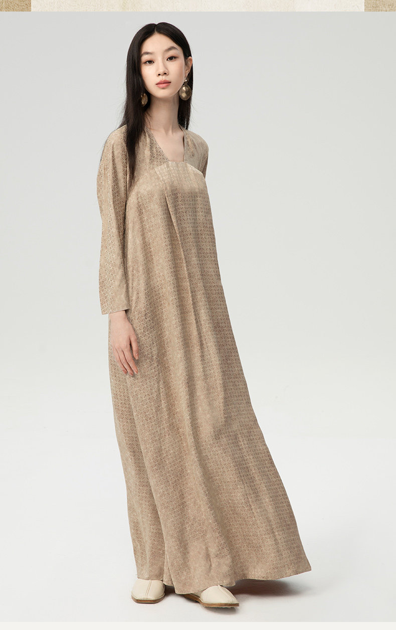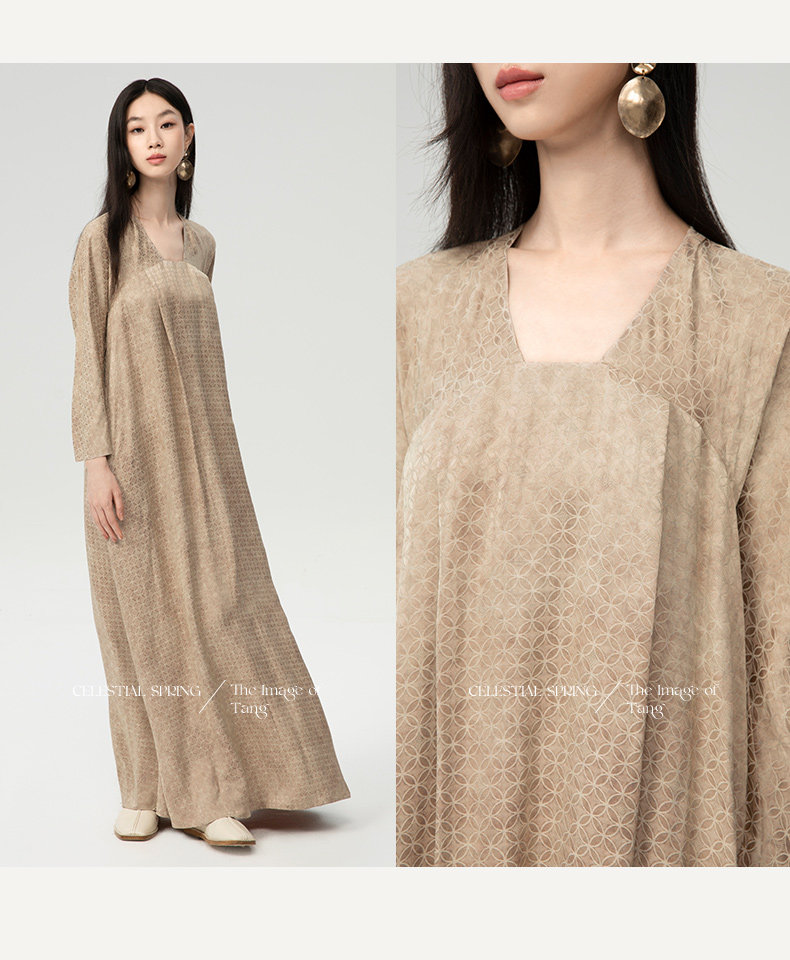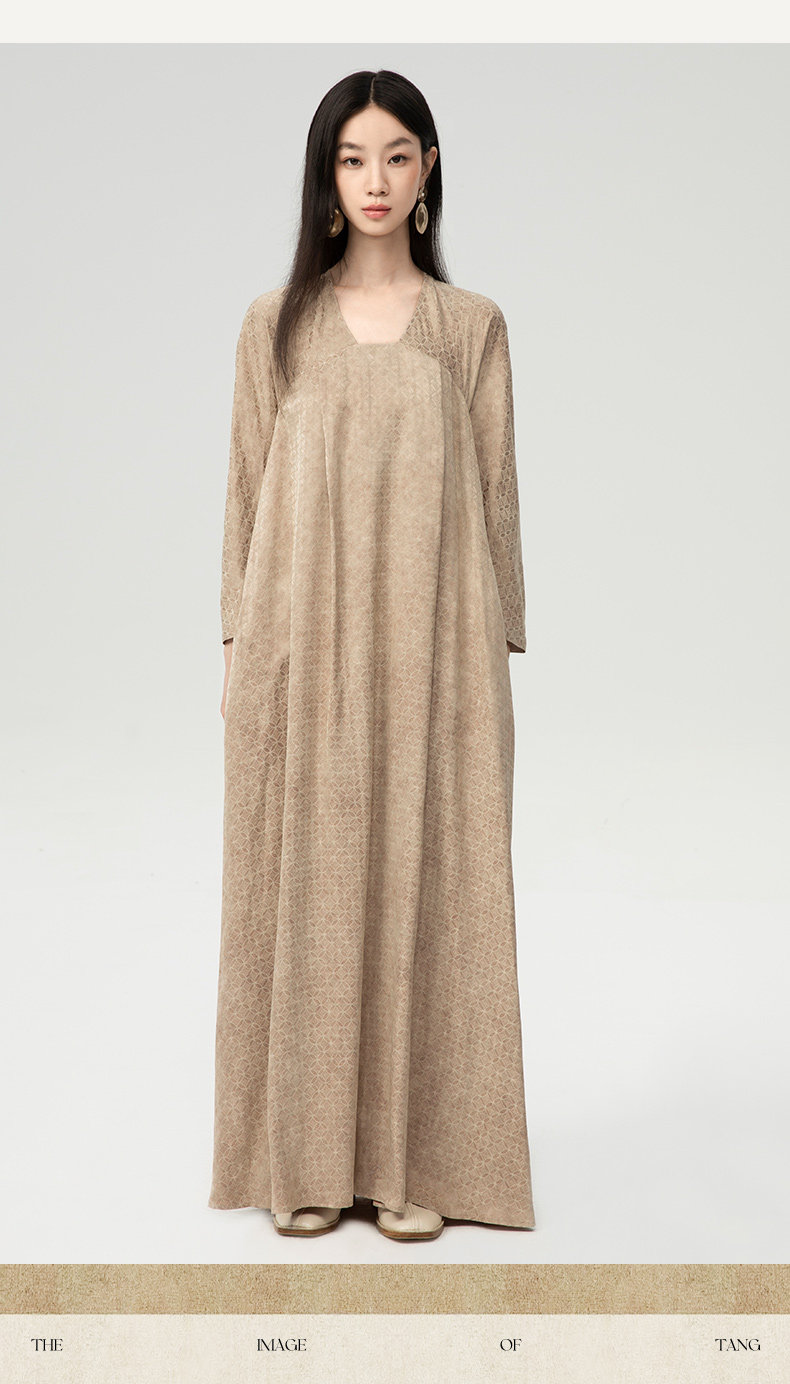 Original New Chinese-Style Women's Clothing from Shili Chunqiu, Tang Dynasty Fortune-Bringing Copper Coin Pattern Rayon Jacquard Confucian Skirt-Style National Style One-Piece Dress