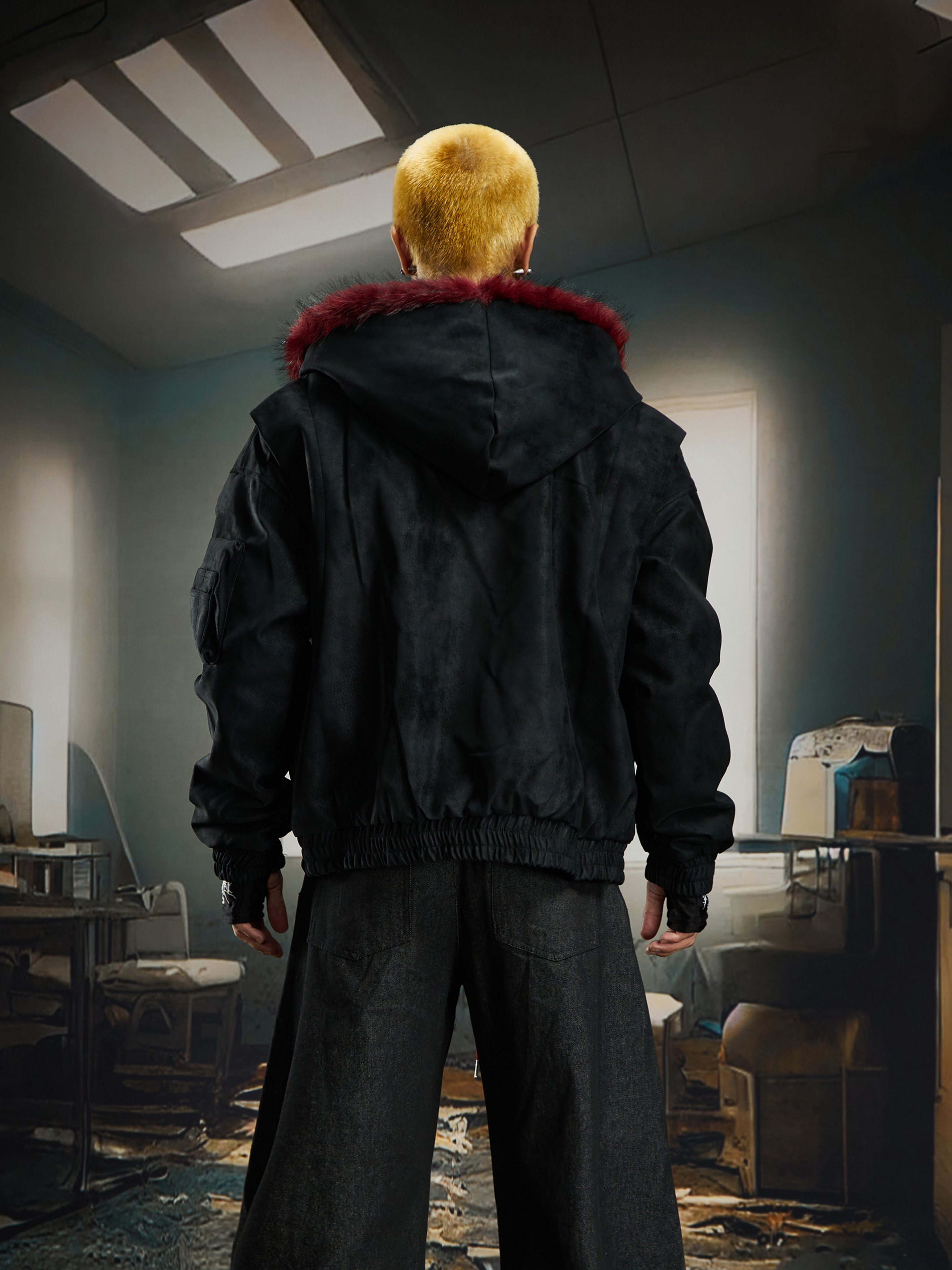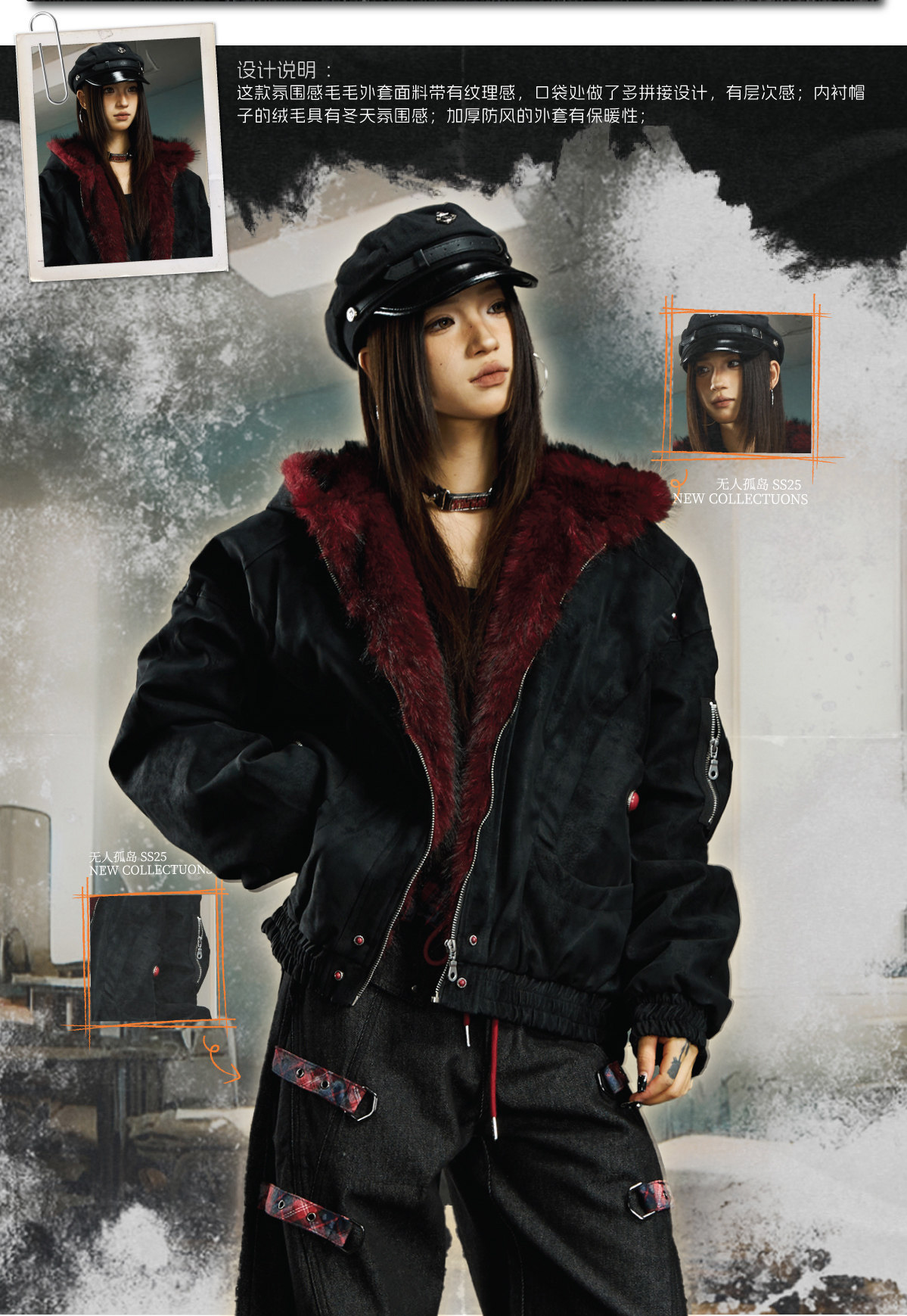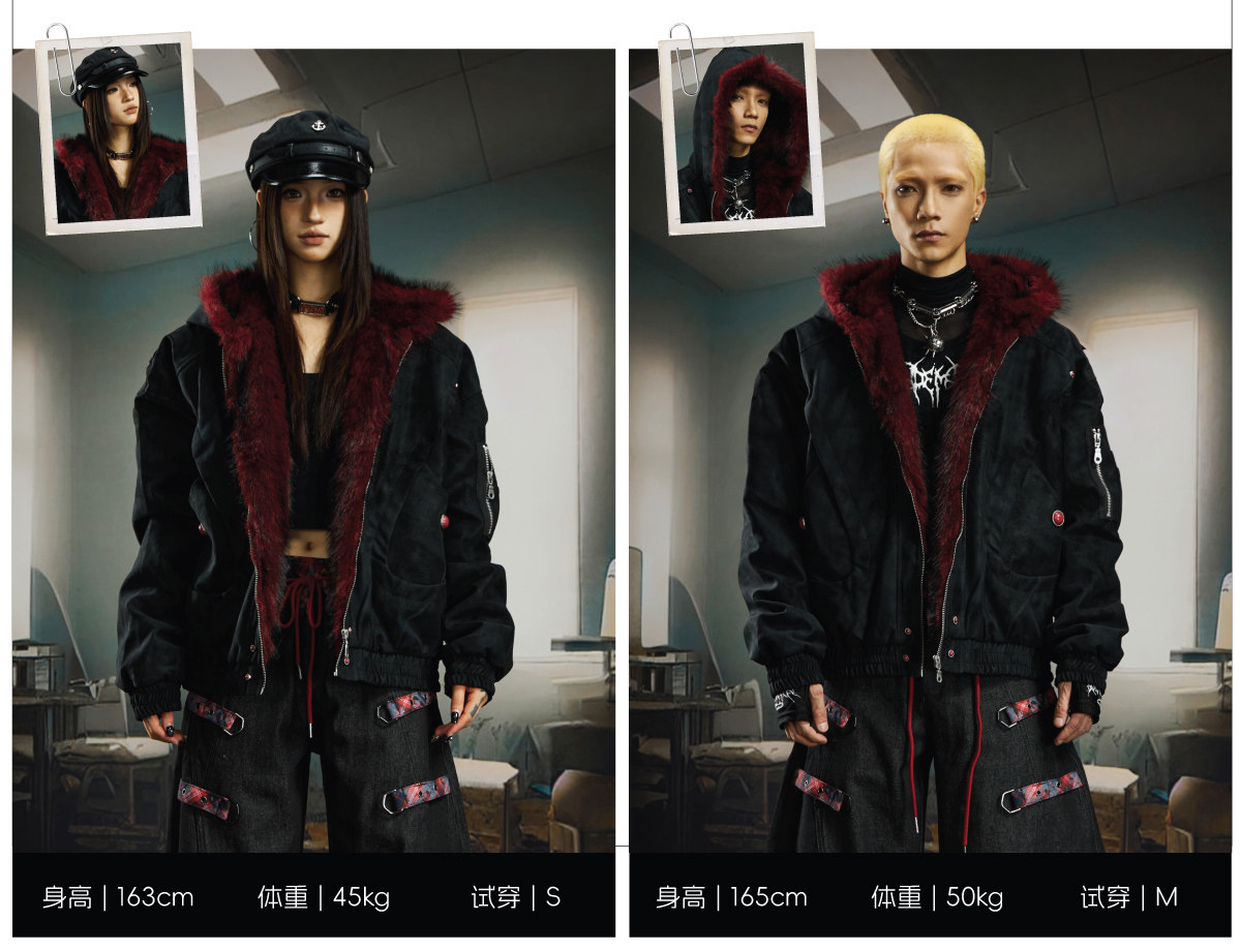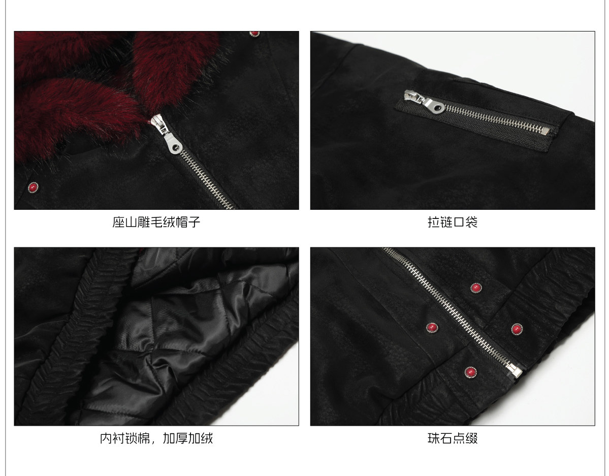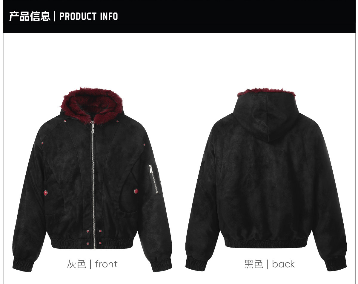 No Man's Land Original Red Mountain Eagle Texture Pu Dark Short Loose Furry Thickened Cotton Jacket